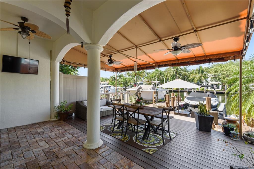 This finely appointed waterfront home is of the highest quality construction & finishes. 3 BR, 3 BA Townhome w/more than 3,000 sf of living space, 2nd floor landing is large enough for an office. Step into this spacious home from your tropical entrance where you will find a large kitchen featuring Viking appliances, open dining/living room with high ceilings. French doors lead to private covered patio, perfect for entertaining, water views, and sunsets. Other features include, impact windows & doors, elevator, travertine marble inside & outside flooring surfaces including driveway, floating dock, rooftop terrace w/ outdoor patio kitchen under covered pavilion w/ endless water views. Walk to Las Olas Boulevard, close to the beach, restaurants & more. Now is your chance to call it home!