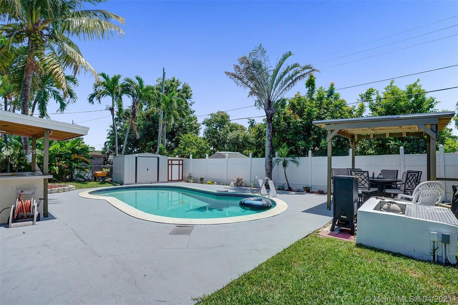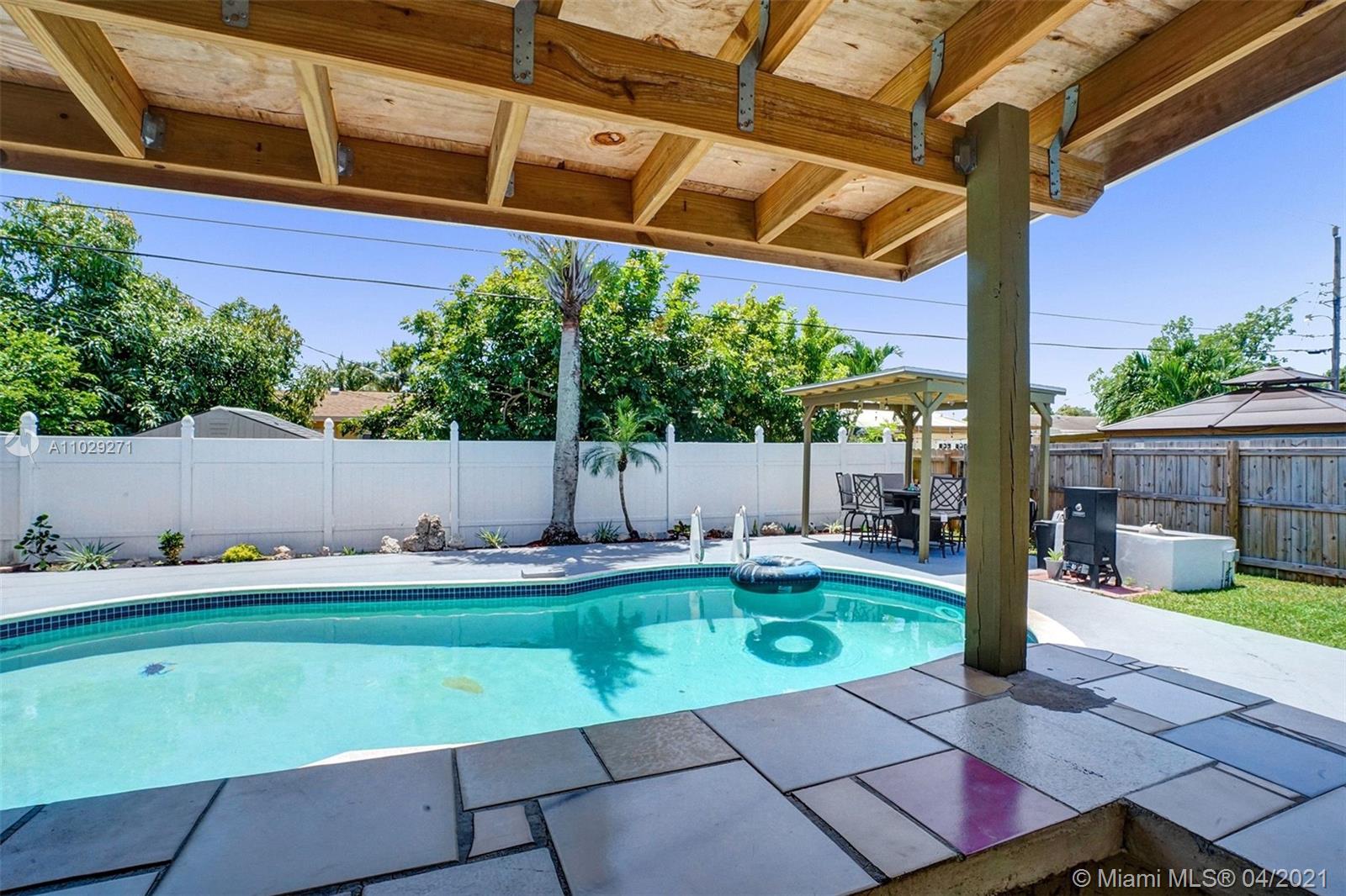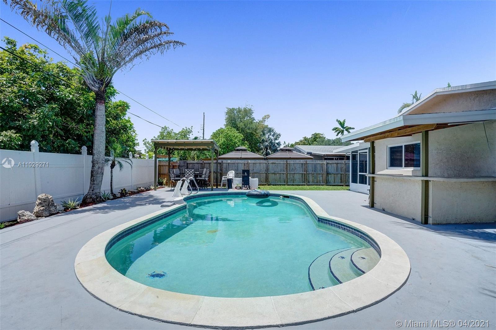 Centrally located 3 bedroom 2 bathroom single family home in the Driftwood neighborhood of Hollywood. Updated kitchen with Granite counter tops and stainless steel appliances. Renovated master bathroom. Backyard made for entertaining with a Pool, Bar, Gazebo, and newly screened in tiled patio with mounted flat screen TV that is included with the sale. New Shed. Impact Windows. New A/C. Roof 2013. Septic tank recently drained. Cast iron pipes were replaced with CPVC piping. 7 Minutes from the Hard Rock Hotel and casino. Close to Driftwood Park, Middle and Elementary school.