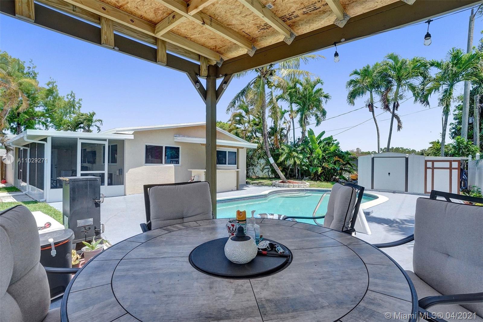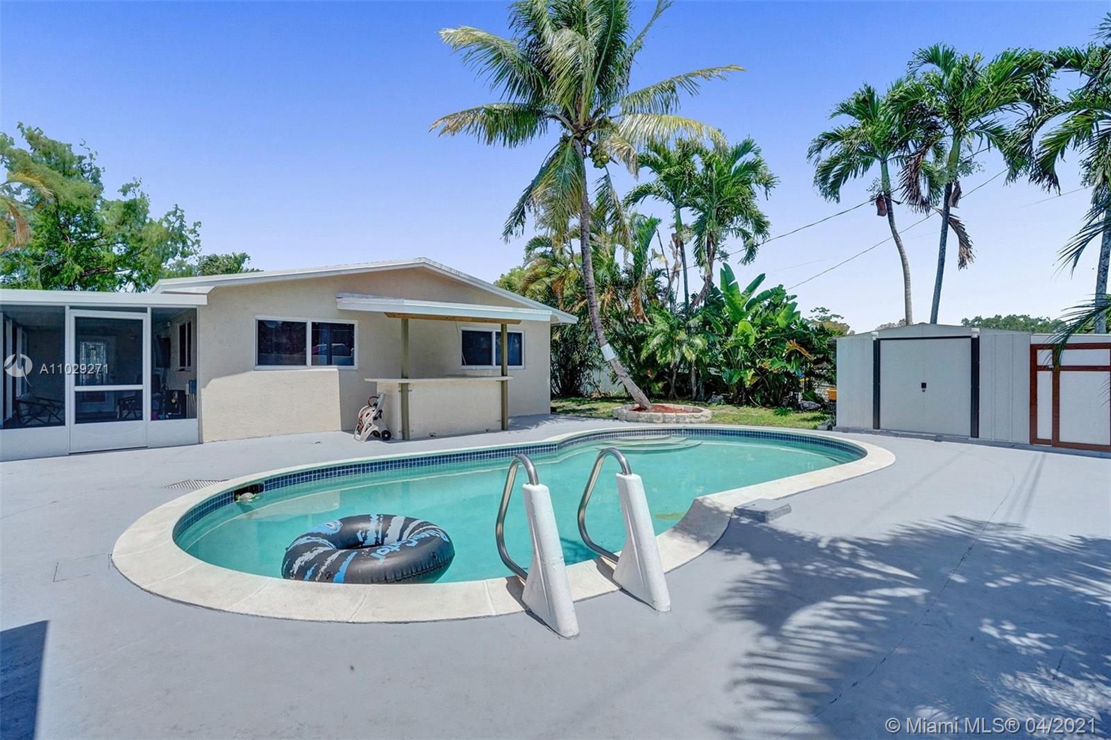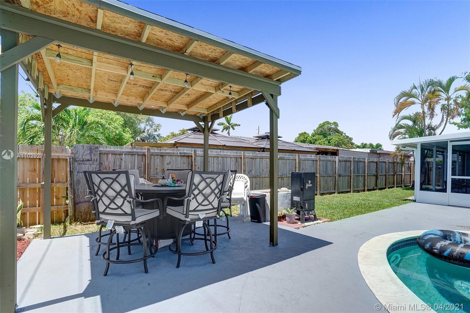 Centrally located 3 bedroom 2 bathroom single family home in the Driftwood neighborhood of Hollywood. Updated kitchen with Granite counter tops and stainless steel appliances. Renovated master bathroom. Backyard made for entertaining with a Pool, Bar, Gazebo, and newly screened in tiled patio with mounted flat screen TV that is included with the sale. New Shed. Impact Windows. New A/C. Roof 2013. Septic tank recently drained. Cast iron pipes were replaced with CPVC piping. 7 Minutes from the Hard Rock Hotel and casino. Close to Driftwood Park, Middle and Elementary school.