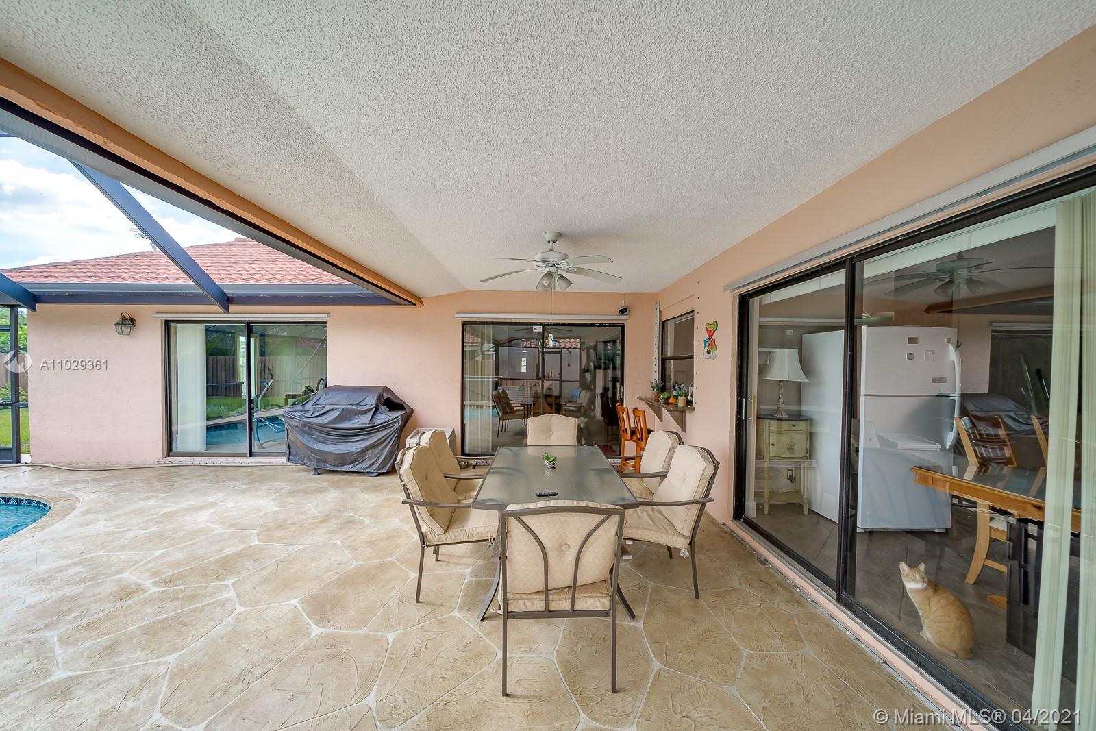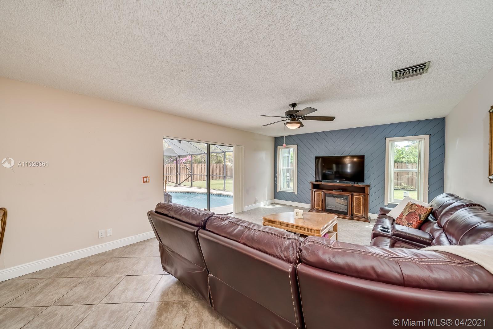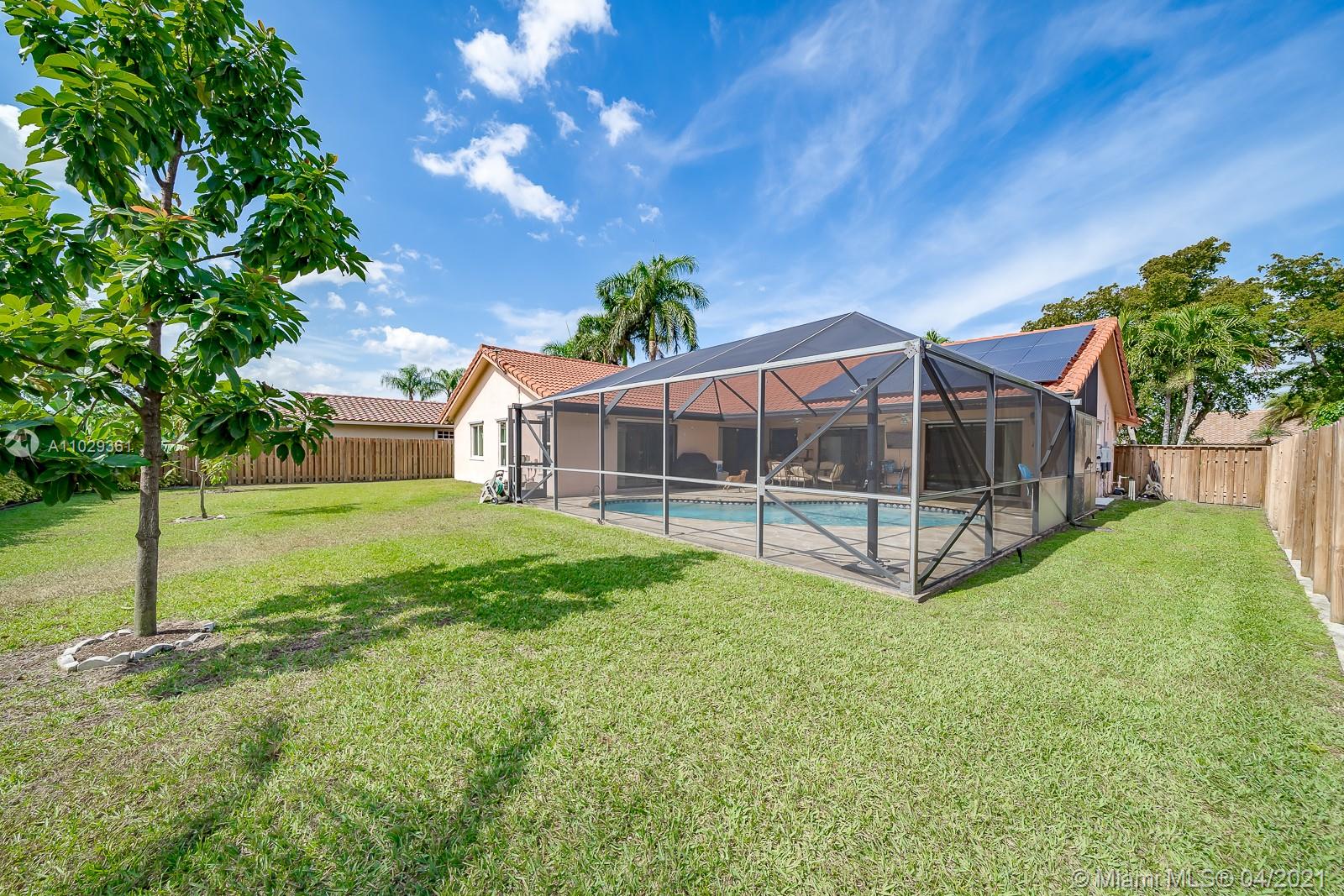 Beautiful 4 bedroom 2 bathroom home. Open floor plan, Solar Panels, impact windows in most areas, spacious and nicely finished kitchen with a view to relaxing back yard, fruit trees. View and access to the pool and garden from all the social areas, master has sliding doors to the pool area, great location, good schools. Formal dining is perfect for a home office. Solar heated outdoor shower. Beautiful view of sunset. Sellers are looking for a July 15 closing. AC is 2 years old.
