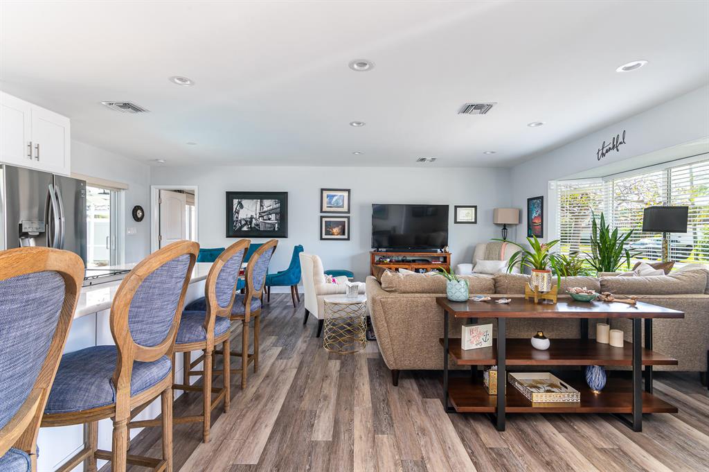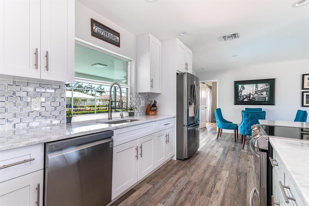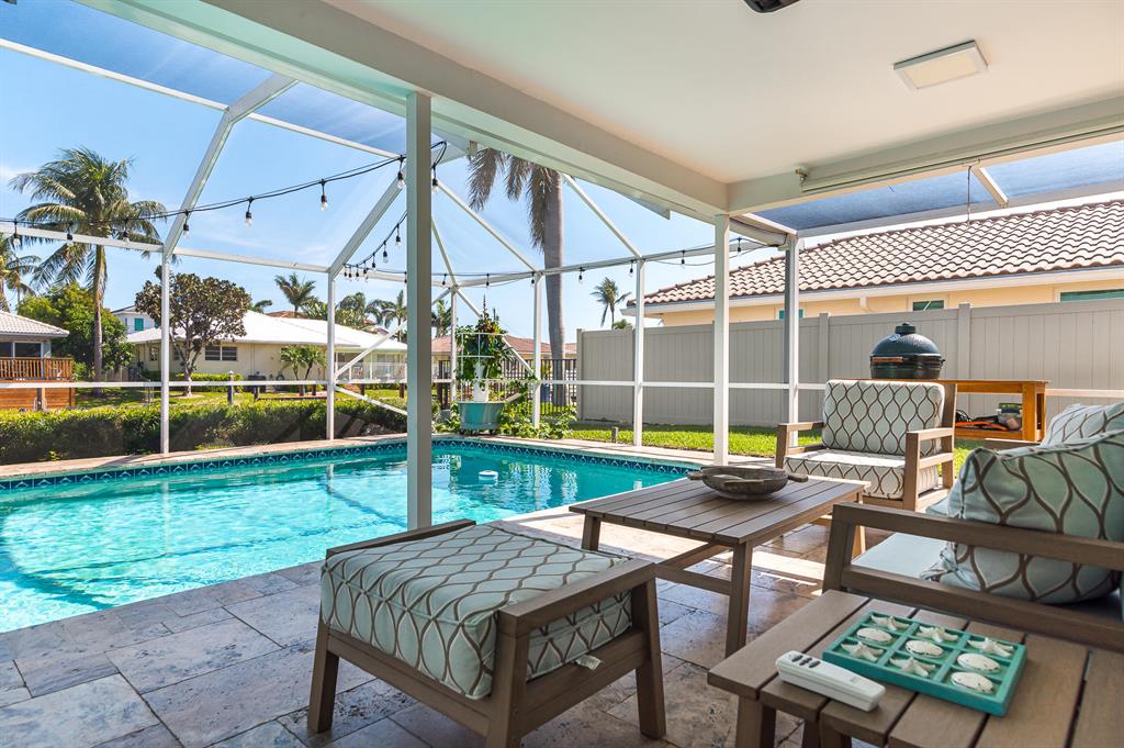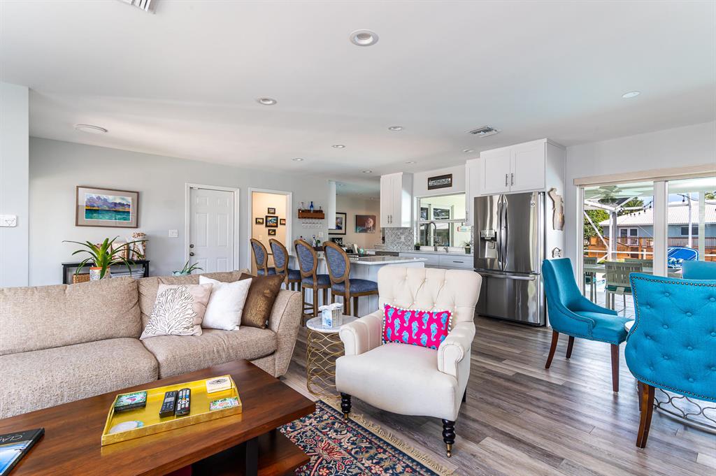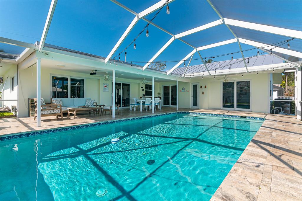 Welcome home to this beautifully renovated and reimagined contemporary deepwater home in the desirable waterfront community of Bel Marra! Open floor plan that features 4 bedrooms, 3 full baths and sits on 85' of waterfront on a wide canal. Large island kitchen that flows into the spacious living & flex room area. Split bedroom design with large master suite, guest suite with access to its own private bath, 2 additional bedrooms and cabana bath. Pocket sliding glass doors allow the home to be completely open to the resort style back yard with covered patio, heated pool & dock with 85' of waterfront. Totally updated throughout with impact windows and doors, metal roof, baths, kitchen, flooring, decorative stone circular driveway, concrete cap & batter pilings. Make An Offer!