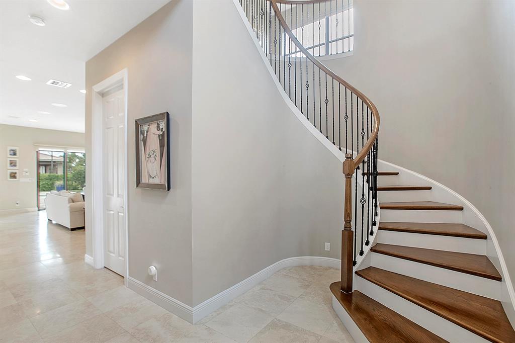 Expanded Bolano model with pool on a large corner lot with lake views and 5 Bedrooms/4.5 Bathrooms + bonus room and 3 car garage. Beautiful dream kitchen with white quartz countertops/off-white cabinetry, oversized island, double oven, built-in Kitchen aid refrigerator and Bosch dishwasher. Marble floors downstairs and wood on the staircase and throughout the second floor. Carpet in the bedrooms and bonus room. Customized built-in bar and built-ins in the living room, bonus room, guest bedroom and master suite. Outfitted walk-in closets in the master bedroom and guest bedrooms. Surround sound inside and out, upgraded exterior lighting.