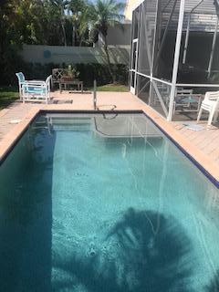 Beautiful updated home. New kitchen with newer stainless steel appliances, quartz counter tops, marble tile back splash. Marble guest bath, granite in master bath. New roof in 2015. Resurfaced the pool and added a new electric pool heater in 2019. The pool surface is pebble tec. The pool comes with a beautiful sun shelf. Perfect for sunbathing and relaxing. HOA fees include basic cable, lawn, manned security gate, and pressure spraying.