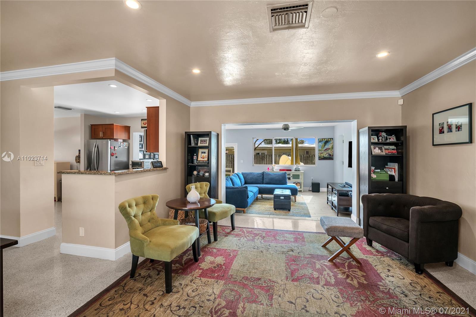 LIFETIME HOME IN A BEAUTIFUL SETTING! Completely reimagined and renovated 2/2 home in one of Hollywood’s most sought after and centrally located neighborhoods. This beauty features REMODELED BATHS, formal dining room, open porch, patio, ROOM FOR POOL and one car garage. You will love this home with ample natural light, beautiful RESTORED WHITE TERRAZZO FLOORS and open concept that is perfect for entertaining family and friends. REMODELED KITCHEN with GRANITE COUNTERS, glass backsplash and STAINLESS STEEL APPLIANCES. Some of the home’s most unique features include closet organizational systems in all bedrooms, some IMPACT WINDOWS and DOORS, crown moulding and artistic pavers in the front and backyard. Where no details have been overlooked, can you imagine the possibilities?