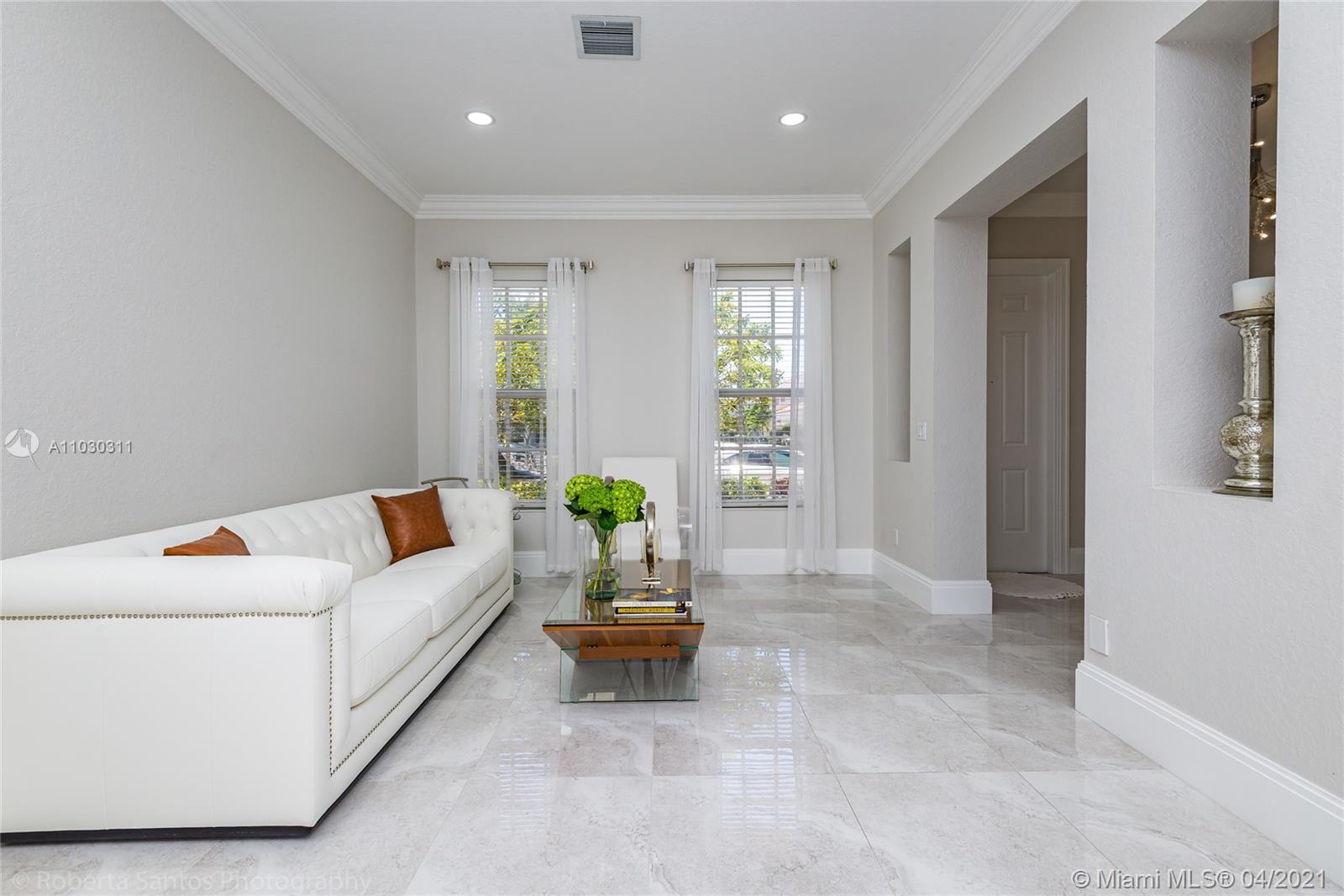 Impeccable Townhome completely finished with porcelain floors, fully remodeled bathrooms with amazing finishes and great design taste. Modern baths vanities, lighted wall mirrors, free standing master bathtub. Built in master closet, beautiful crown moldings, completely finished laundry room with cabinets and utility sink. Central vacuum system. Wood kitchen cabinets with granite c-top and stainless steel appliances and finished patio with pavers. Much more to see!!! You don't want to miss this!!! *** SEE BROKER REMARKS ***