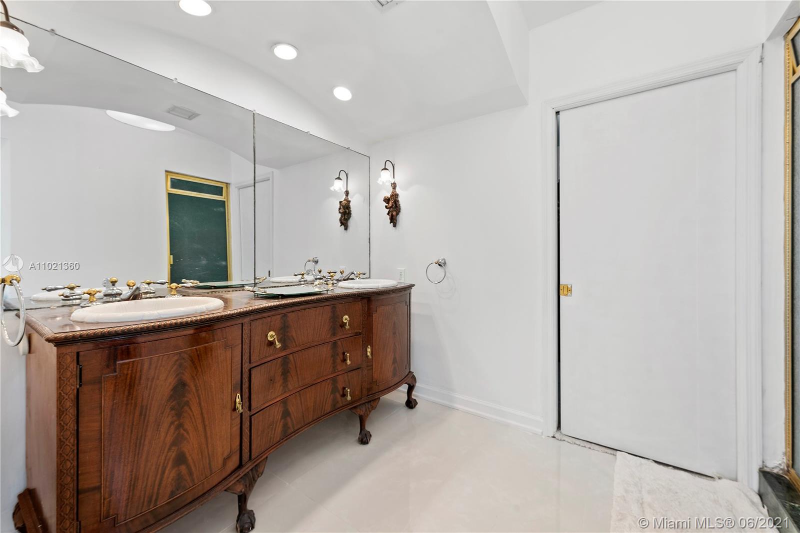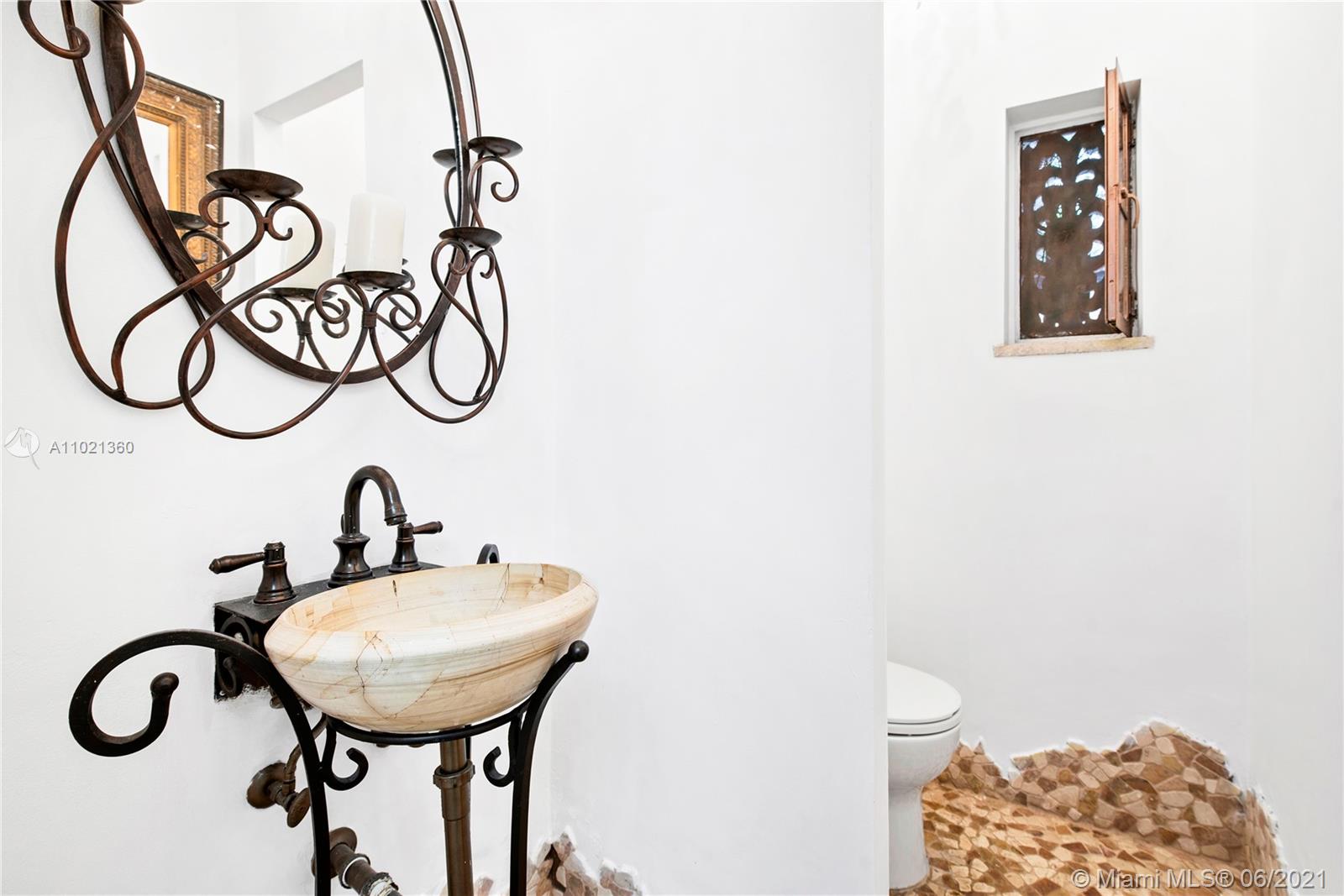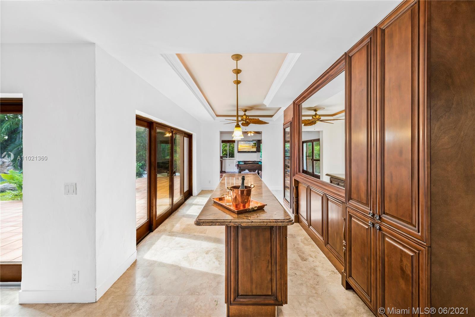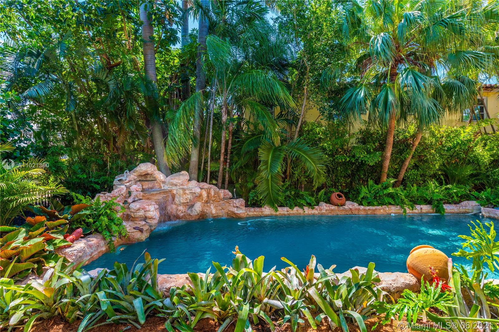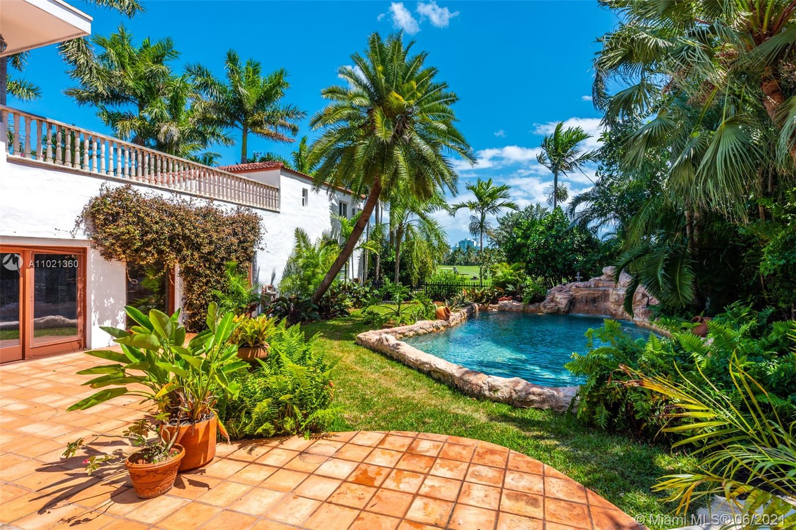 New Price! Miami Beach Golf Course Mini Estate, rarely available double lot (14250 SF) situated on world renowned La Gorce Golf Course greens w/ direct access by golf cart (members only). Spectacular back yard w/ tropical landscaping, towering palms & dazzling waterfall into pool. Floor-to-ceiling sliding doors lead you into an open layout w/ classic architectural design by Robert E. Collins. Ascend the staircase w/ amazing Mediterranean tile work, to a 3B w/ ensuite baths & a gorgeous terrace overlooking pool & country club. Other notable features: 1 BR downstairs, 2 car garage, w/ 2 BR apt, cabana bath adjacent to pool, huge gas kitchen w/ island & separate dining, Florida room w/ bar on adjusted sq. footage, elevator, w/ 6592 total sq ft. Covered carport & lots of parking.