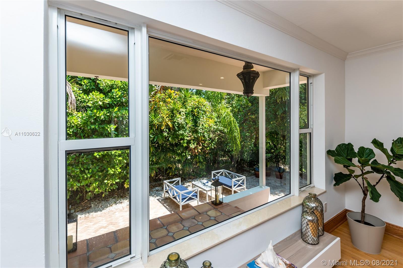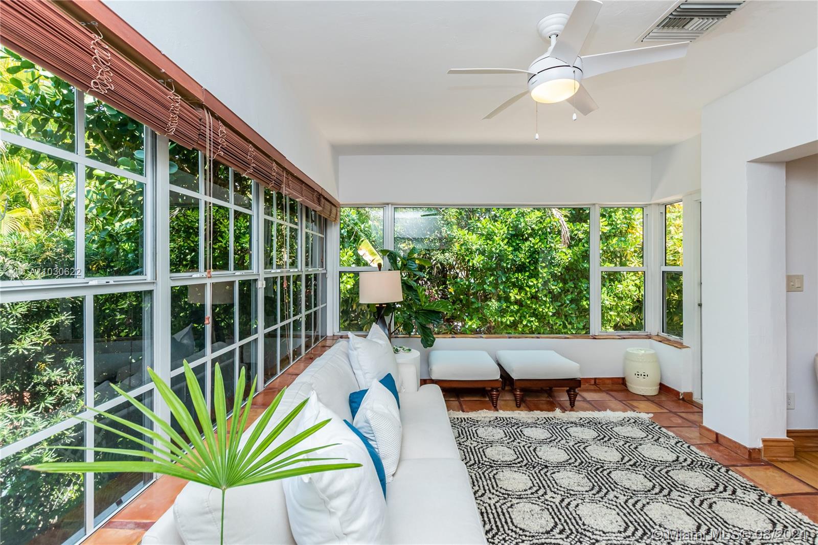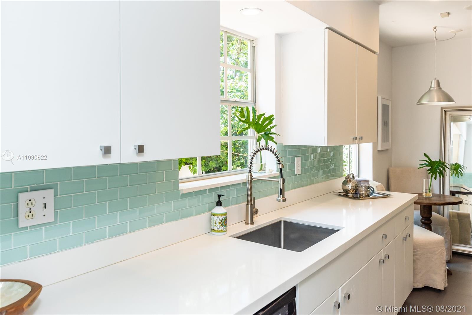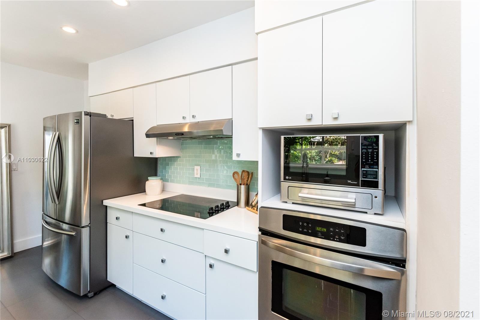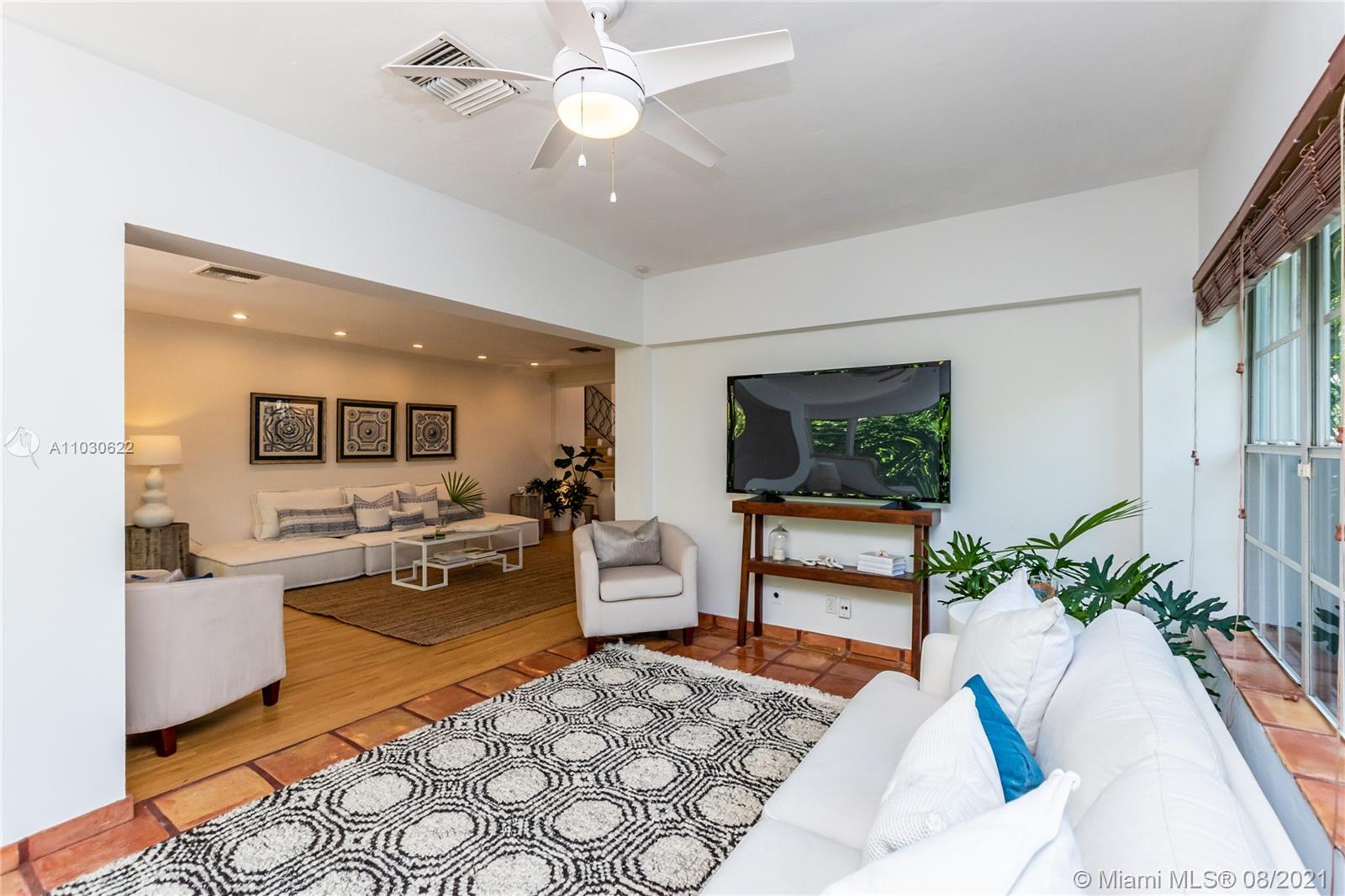 Southeast Gables Gem on Quiet, Tree-Canopied Street. This updated home has a lovely setting in a prime location, centered in a half-moon formed by South Miami, Coral Gables & Coconut Grove. The bi-level layout houses 2 bedrooms + 1 bath on the upper level, w/2 additional bedrooms & 2 baths on the lower level. The open concept creates a space that feels much larger than the floorplan suggests. Sunshine pours thru wall-to-wall & floor-to-ceiling windows. The bright, renovated kitchen w/a breakfast nook gleams w/stainless steel appliances and a crisp, white & aqua color palette. Recessed lighting, pristine light wood & creamy marble floors, a wrought-iron design stairway bannister, and terracotta patio tiles fashion warm decorative touches flowing from the interior to outdoor living spaces.