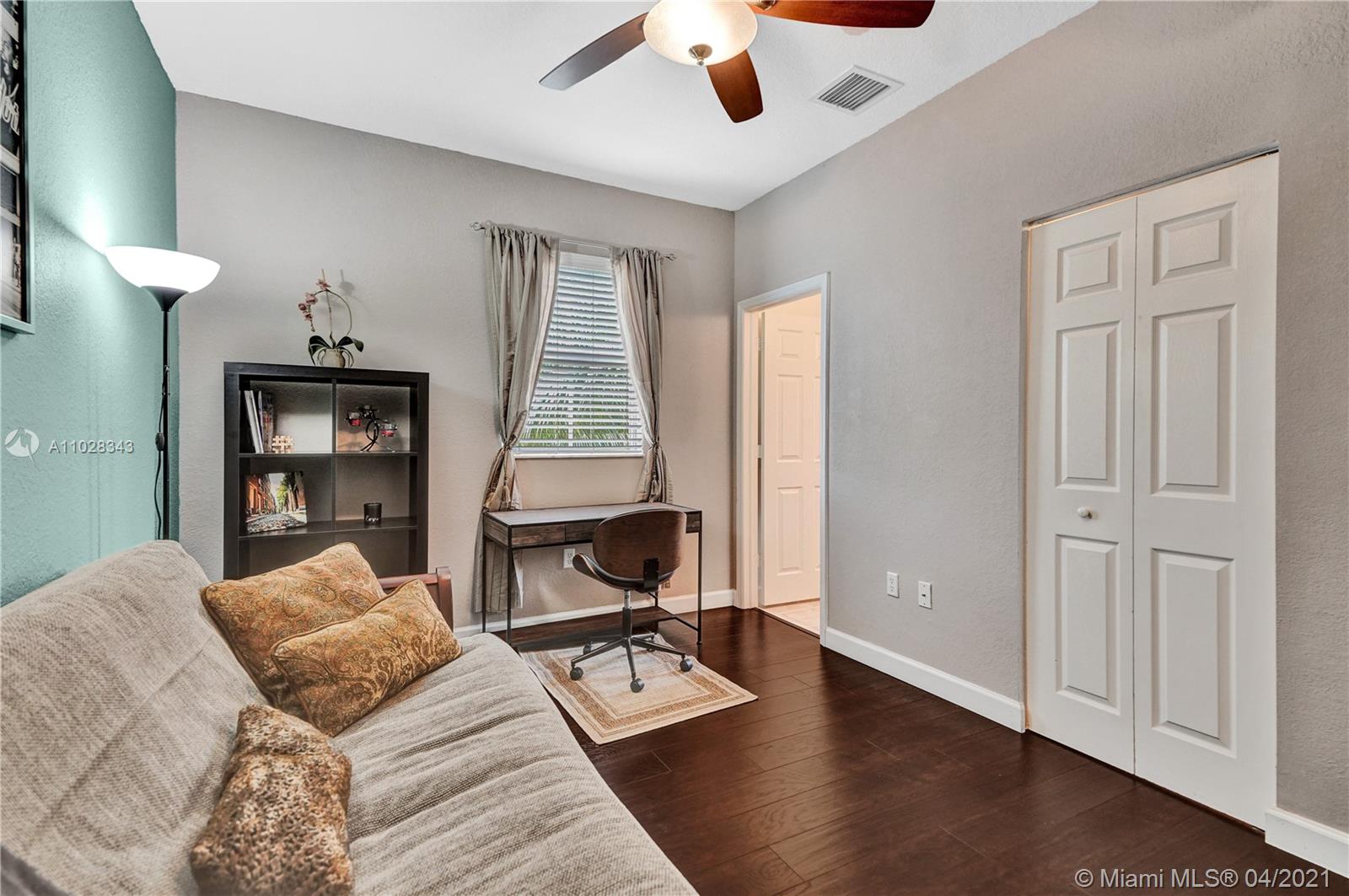 This 2 Bedroom and 2.5 baths townhouse has a 2 car garage and is located in a Gated community. Wood floors throughout both levels and immaculate condition. 2 Separate garage doors and laundry room on ground floor. Main Living area is on the second floor. Guest bath & small balcony for grilling. Master Bedroom has private balcony and substantial walk-in closet. Impact glass throughout. This Corner unit has more light and is conveniently located near pool, front entrance and guest parking. Close to the Ft. Laud Int'l Airport, Highways, Restaurants, shopping, Beaches and more. NEW Assoc. rules require 700+ CREDIT SCORE required. Rentals allowed after owning for two years with a 3 month minimum. 2 Pets allowed up to 50lbs are welcome non-vicious breeds for owners.
