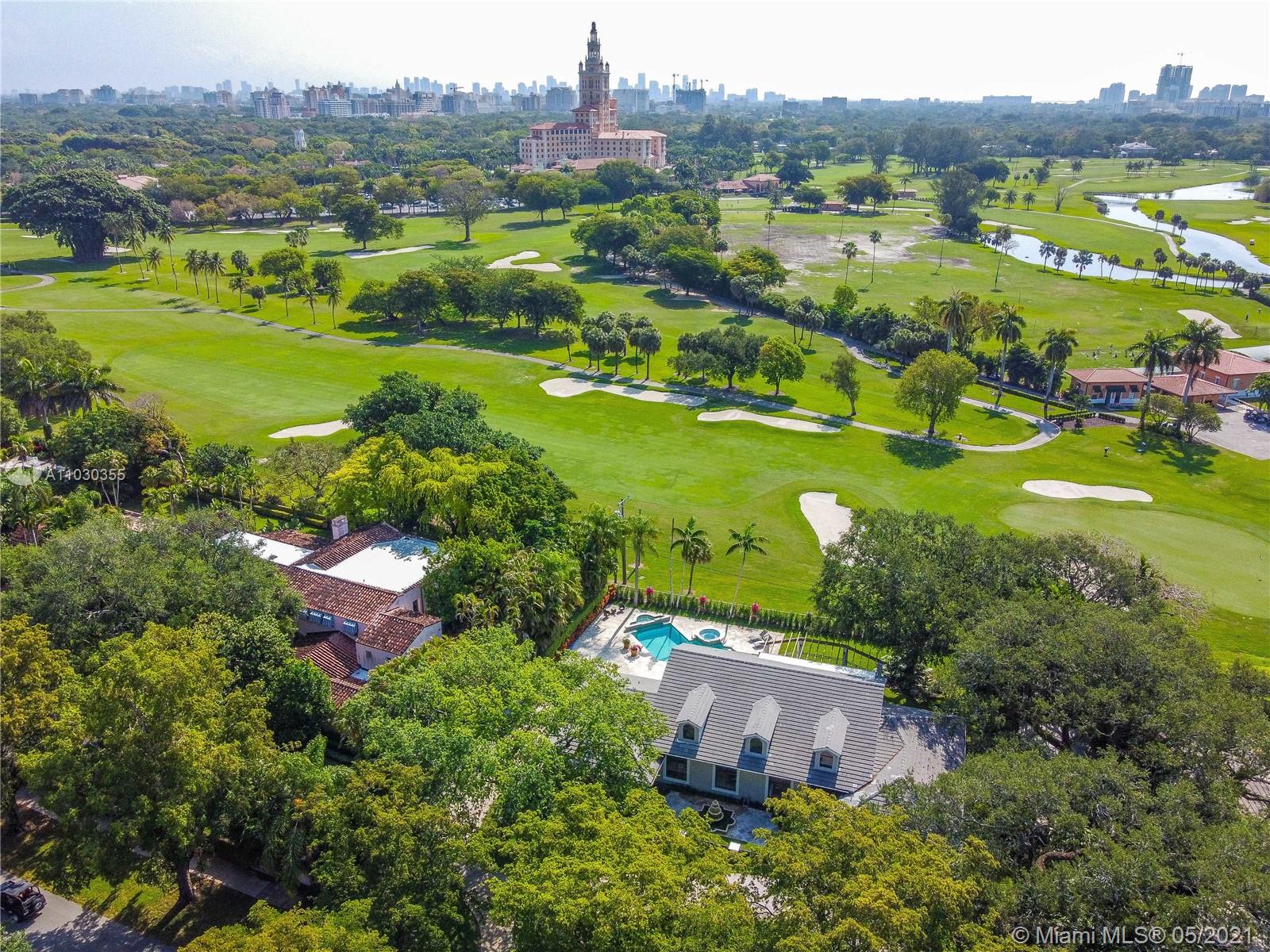 Stunning estate overlooking the historic Biltmore Golf Course & Hotel. Recent total renovation with attention to detail and top-of-the-line fixtures & finishes. Light-filled living spaces feature a white color palette and a blending of classic & modern styling. Expansive, open layout with abundant windows & views of the golf course throughout. Custom kitchen with European-style wood cabinetry, stone countertops, high-end appliances (including wine storage) & center island w/seating. Master suite offers oversized walk-in closet, private terrace w/golf course, Coconut Grove views and luxurious bath featuring soaking tub, steam & large rain shower. 20,012 SF lot. Enjoy outdoor living on the covered terrace & tranquil pool w/ jacuzzi spa. Minutes to world class shopping/dining in Coral Gables.