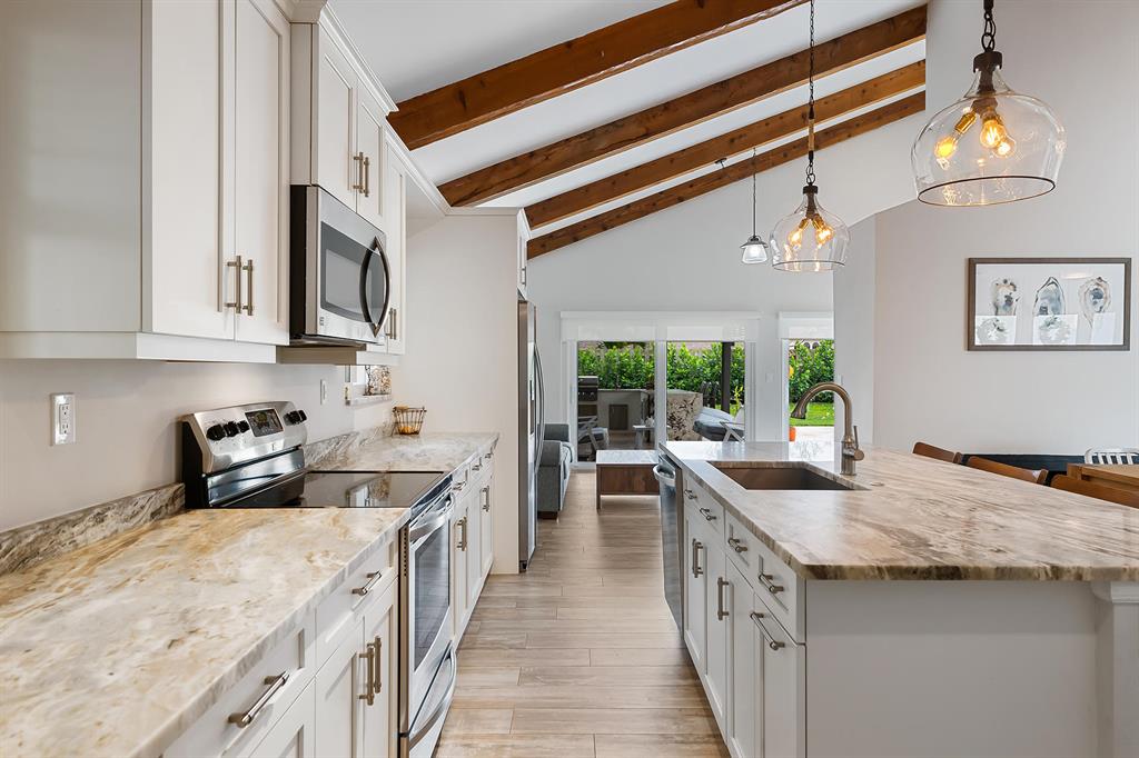 Beautifully renovated home in Palm Beach Farms! This home features an updated kitchen, dining room, two spacious living areas & bonus loft area perfect for kids. The kitchen has been recently remodeled with white cabinetry, stunning stone countertops & stainless steel appliances. The dining room provides ample room & features a stunning fireplace. The open living area & additional family room both overlook the gorgeous, oversized backyard with a full summer kitchen & private heated pool. Newer wood-look tile floors throughout. The master suite features sliders to the backyard, built-in closets & an updated bathroom. The roof was replaced in 2015. Impact windows. Palm Beach Farms is a highly sought-after neighborhood with close proximity to good schools, shopping and various restaurants