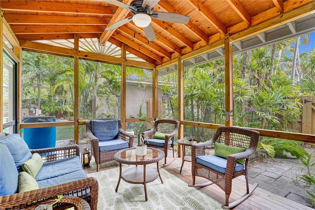 Amazing Riverside Home 2/2 plus 1/1 detached cottage. The main home has updated kitchen, Quartz countertops, custom built cabinets of solid maple, custom built closets in both bedrooms, Porcelain tile floors in main living room-kitchen-dining area, brand new AC, and new water heather. New Solar Panels installed in 2019, average electrical bills is $28 including the $10 minimum base to be attached to the grid. Also a Lovely Cottage currently rented month to month. Extra income potential with the Cottage. Prior to current tenant cottage was on Airbnb bringing in 3k per month in high season. Enjoy the exclusive backyard this house has to offer with the tropical foliage in a nice screened-in porch. Roof is 6 years old, brand new roof in 2015. The home has been well maintained.