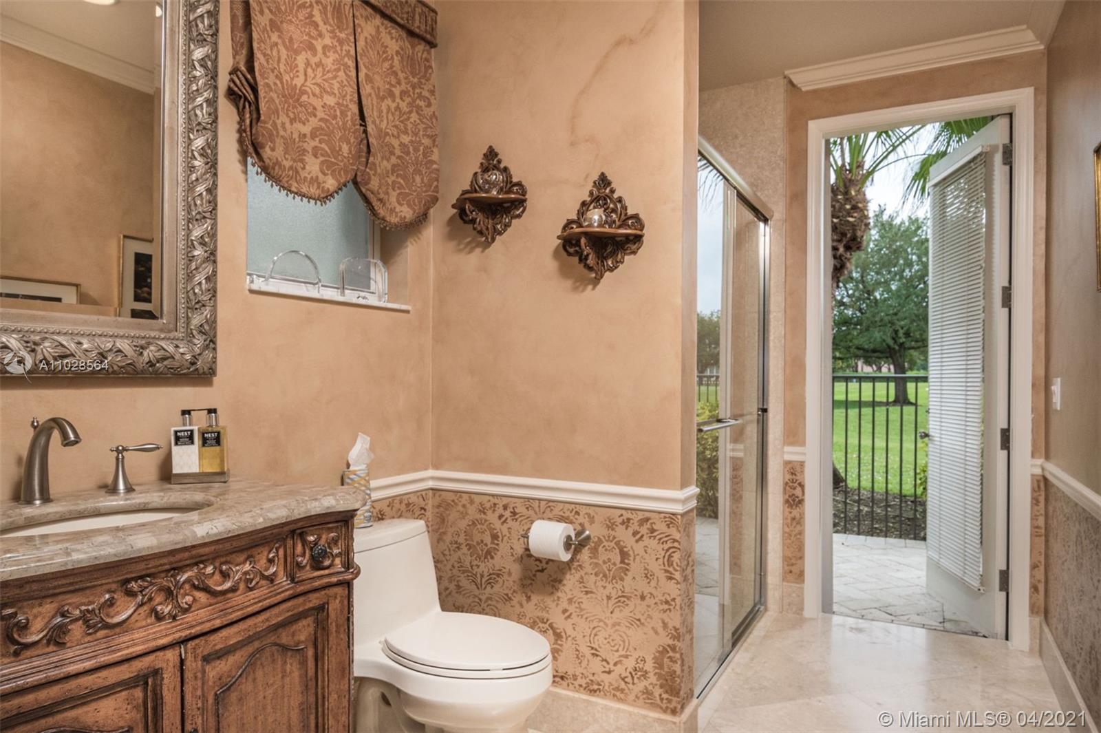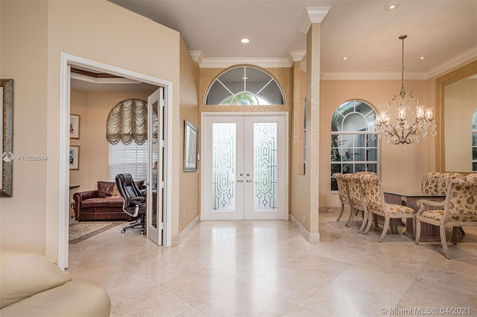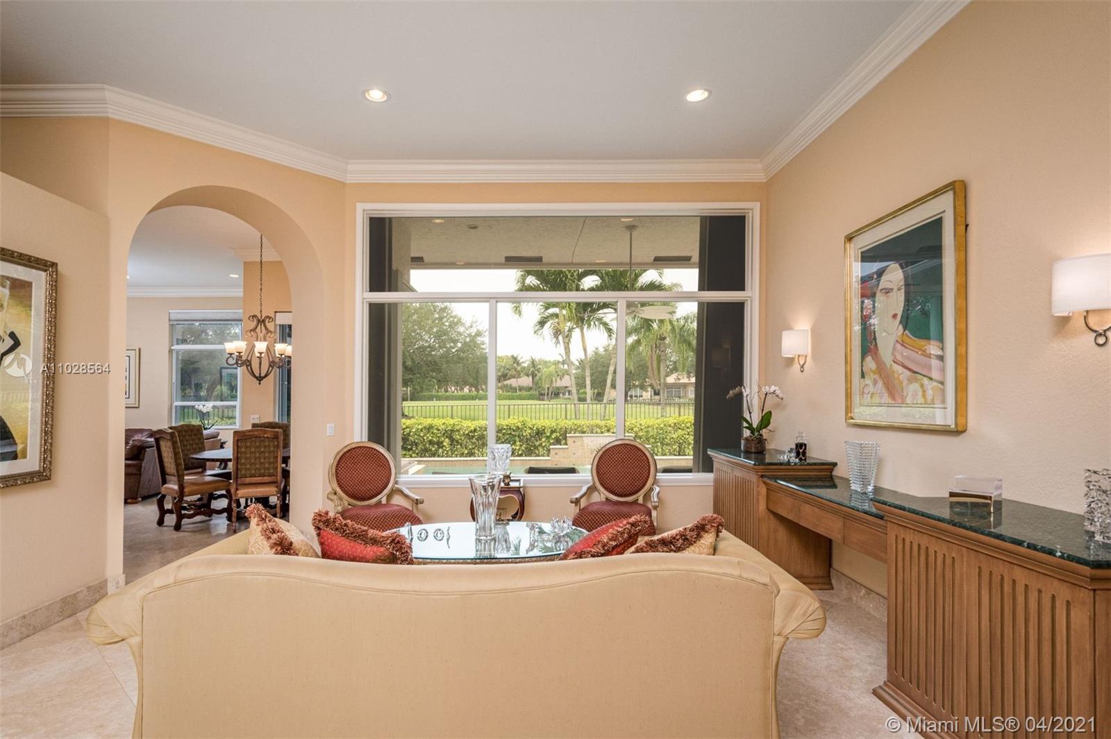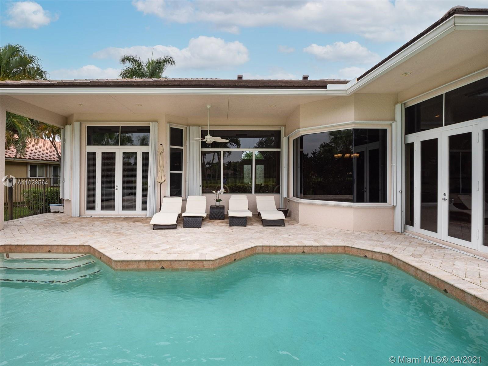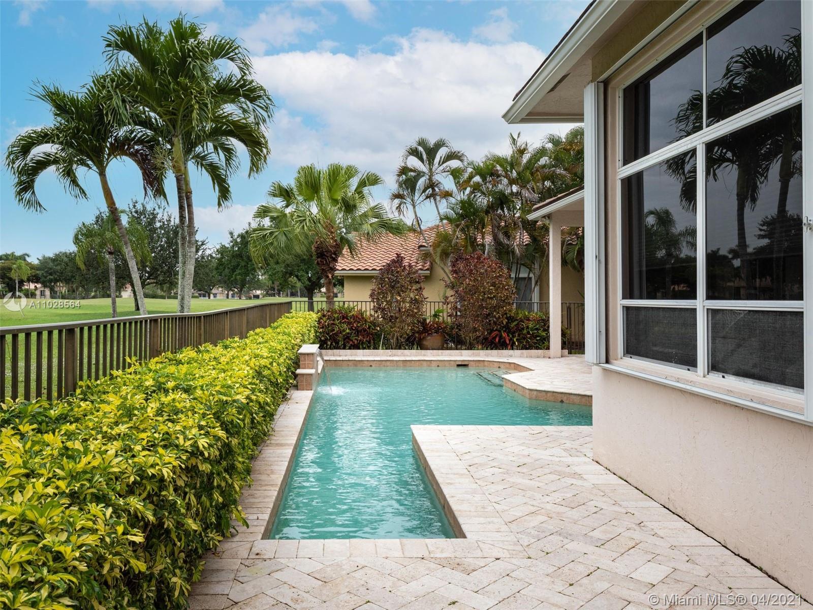 Impeccably maintained 3,000sf 4 bed/4 bath/office home in Weston Hills Country Club. Triple-split floor plan, with 12' ceilings, provides an impressive backdrop of The Players golf course. Saturnia marble and baseboards throughout the main area, wood flooring in the master & laminate/carpet in the bedrooms. Gourmet kitchen with spacious pantry, granite countertops and all the top appliances. Oversized master suite with 2 walk-in closets and large wall closet, marble bathroom with separate vanities, jacuzzi tub and walk-in shower. All bedrooms have en-suite bathrooms. Tumbled marble patio deck with pool, lap lane and waterfall. 2018 roof w/ 10 year warrantee. Newer A/C's. Accordian shutters. 3-car garage.