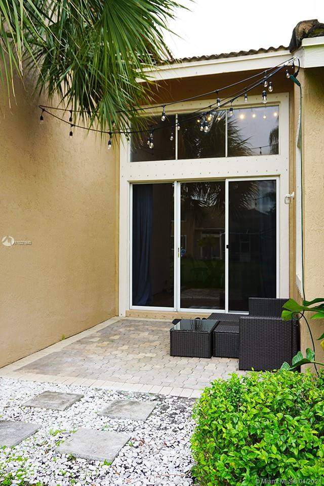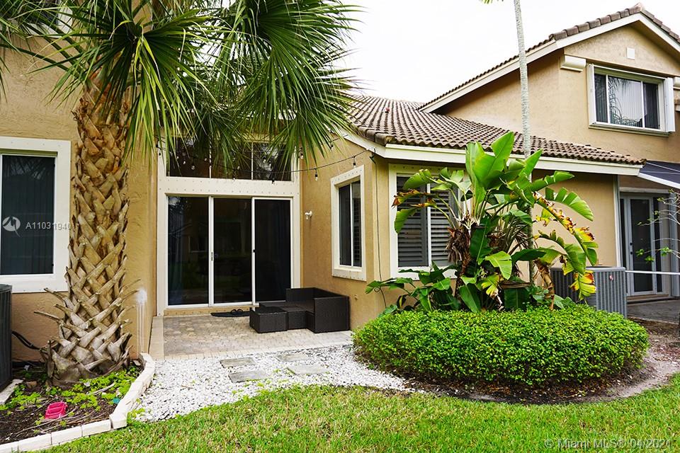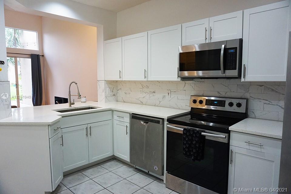 Beautiful 3 bedroom, 2 1/2 bath townhome in the Courtyards of Grand Palms in desirable Pembroke Pines. Enjoy the open design with upgrades throughout including high-end white kitchen cabinets, quartz counter tops, newer appliances, vaulted ceilings, wood and tile floors, updated bathrooms, wall in closet in master bedroom, paver driveway and 1 car garage with extended patio area outside. Great for entertaining family and friends or just enjoying the sunset outside. No expense spared in this amazing family townhome. Brand new roof being installed and ready to move in. Amenities include community pool, playground, golf course, tennis and gym. HOA includes roof repairs, exterior paint, lawn, cable, alarm and more. Must see.