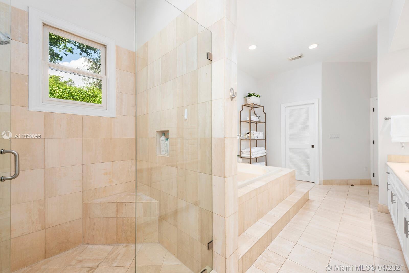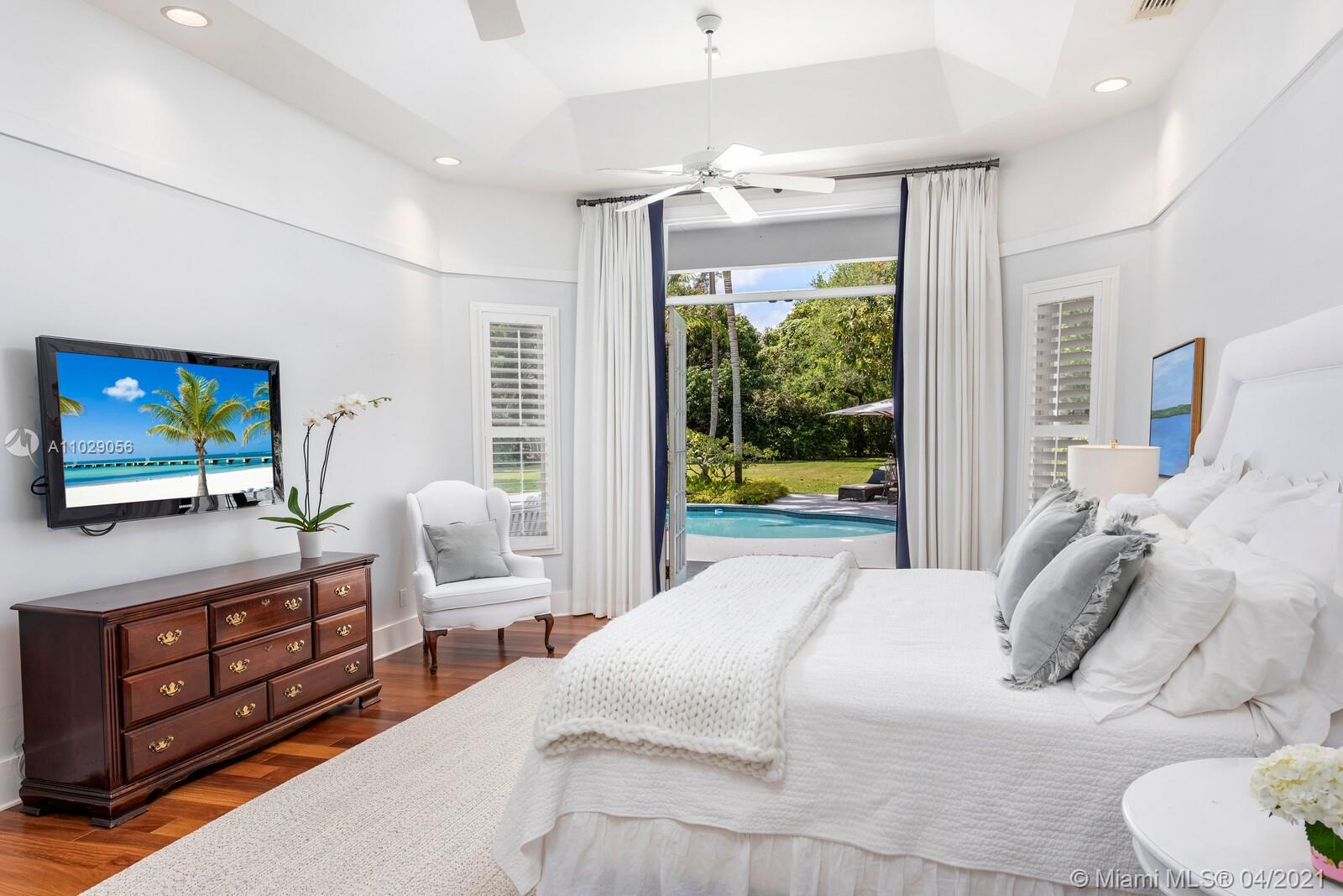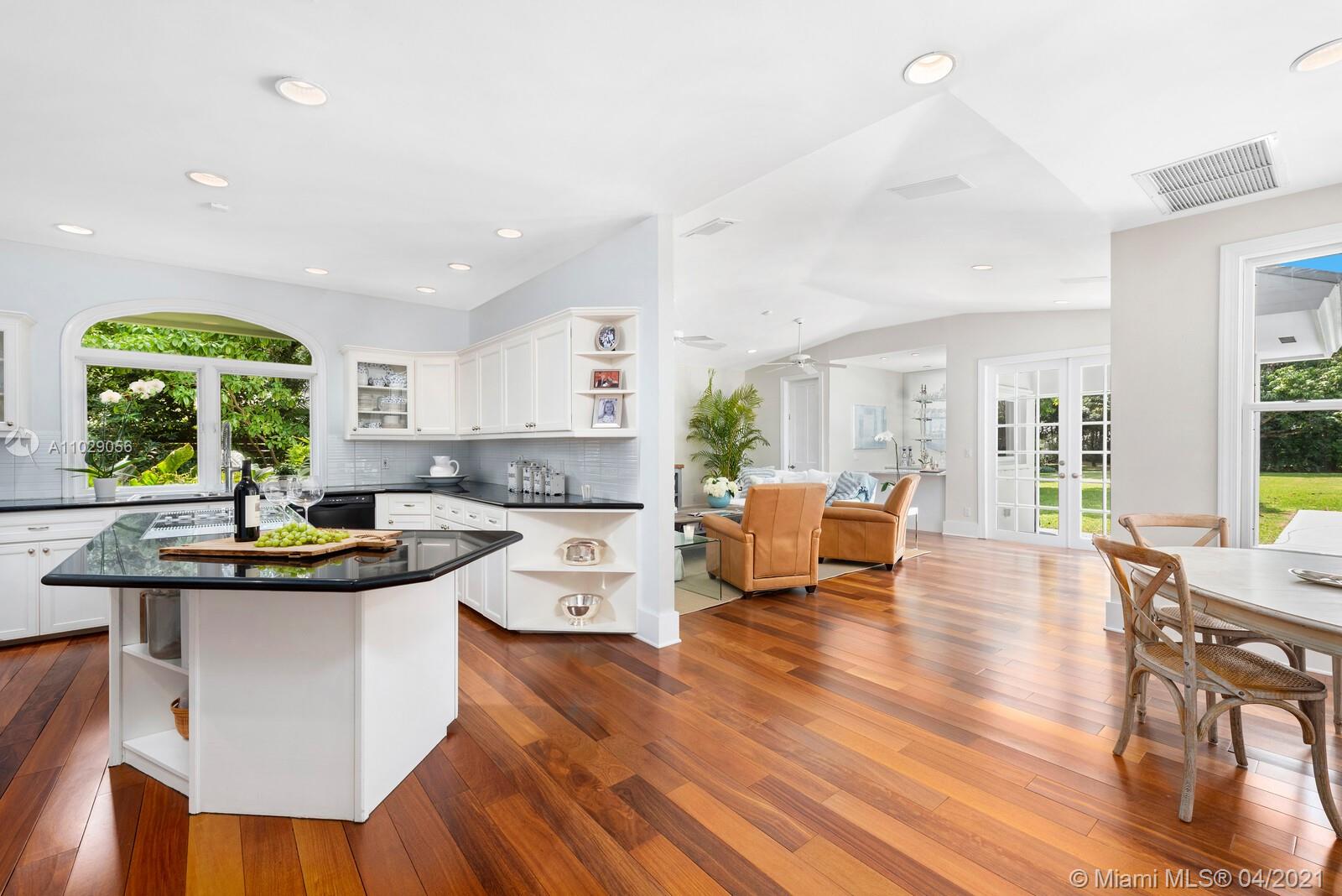 Step into happiness in North Pinecrest! This magazine quality Florida-style home is located on a private 39,000+sqft lot. High ceilings in an open split plan with natural light, rich wood floors, decorative wood paneling, and a cozy fireplace await. We love the formal dining room with its beautiful picture window that perfectly frames the mature oak tree outside. Open kitchen with eat-in breakfast, family room and built-in bar provide panoramic views of an oversized yard, pool and covered patio. Master suite is gracious with an open dressing room and spacious master bath. There are three add'l bedrooms (one en-suite and two with jack and jill). Office/den can function as en-suite bedroom complete with private bath and closet. This is it - the home you have been waiting for!