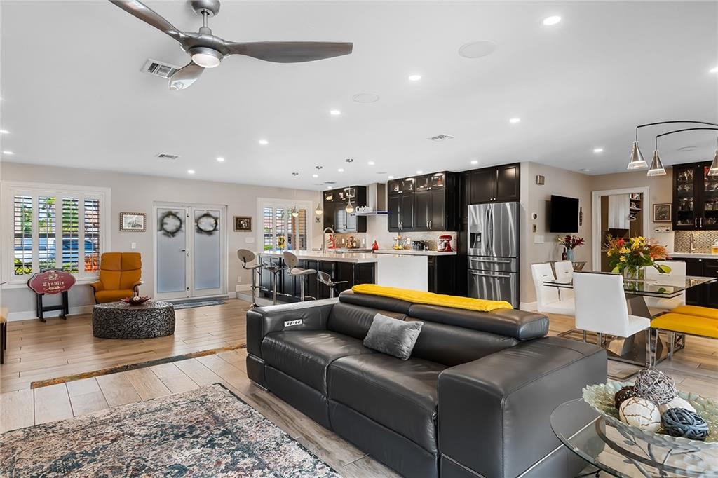 Sought after Landings waterfront community home, 85 feet of deep waterfront on wide canal, professionally remodeled with all impact windows. Great home for entertaining with an open floor plan, custom cabinetry Chef's kitchen with quartz counter tops, natural gas range and custom built bar area. Only minutes to the beach with new landscaping, oversized covered patio area with MosiquitoNix, maintenance free pool deck and built in grill. Home is wired for audio/video and has a Sonos indoor and outdoor surround sound system. Second canal in from the intracoastal.