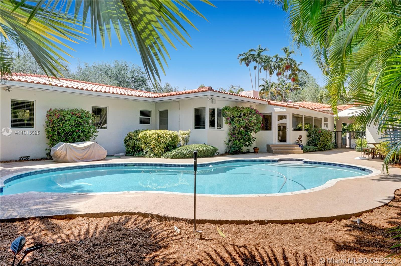 Beautiful home on an oversized corner lot very well located between Riviera Country Club and the Italian Village, near the University of Miami. This residence offers an open concept floor plan and Mahogany floors from Brazil. Living room features original fireplace. Residence has 3 bedrooms, including a luxe master suite, office and a separate 4th bedroom perfect for a guest/staff with bathroom connected by a covered carport. Backyard with a relaxing pool and space to entertain. 1-car garage and 1-covered carport. Quiet place and abundant natural light make this house a pleasant place to live!