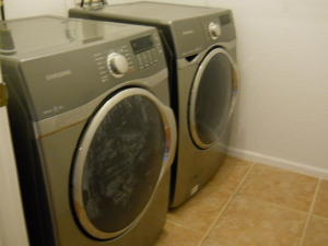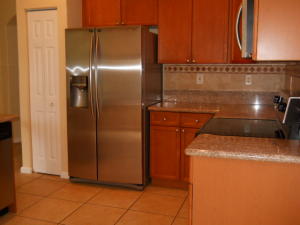 Move in ready, quick close possible, wood laminate flooring from staircase to 4 bedrooms all upstairs & living room/dining; family room & kitchen tiledFamily sized w/dryer on 2nd level. Granite counter tops & breakfast bar, micro/stove/ref. stainless steel. Wood deck in back yard w/mature tropical landscaping, 5 fans, hurricane panels, 50 gal. hot water heater, Comm. pool & tennis
