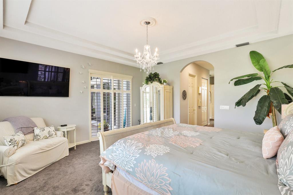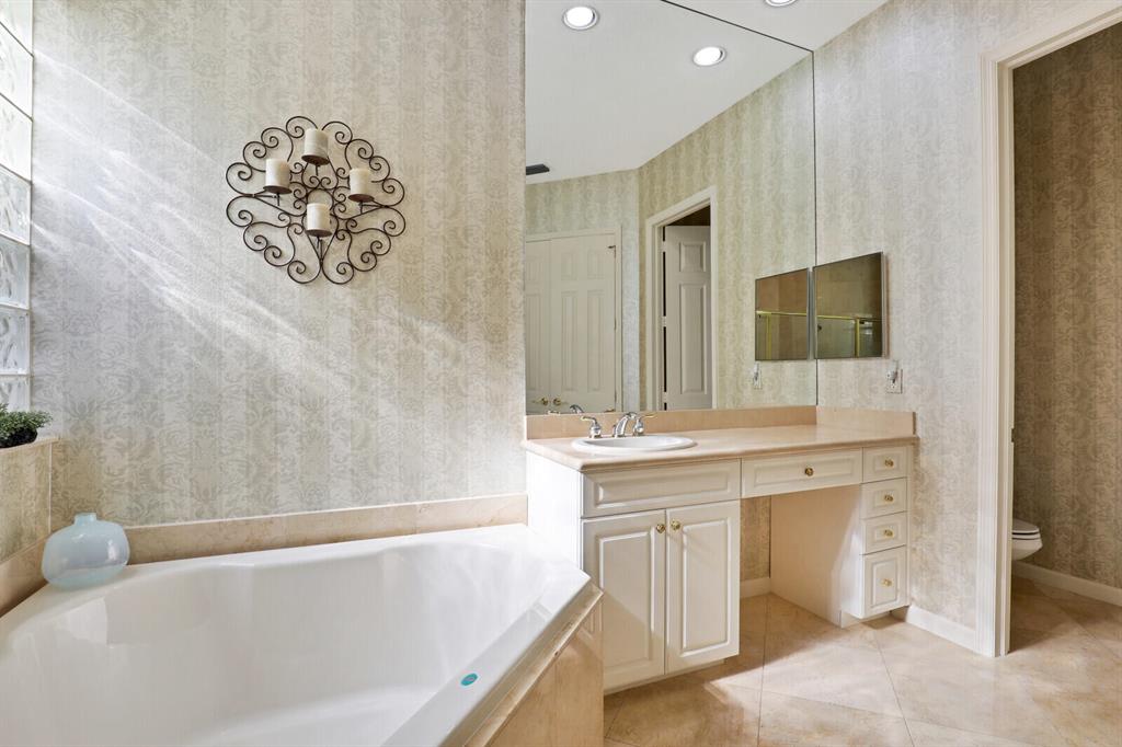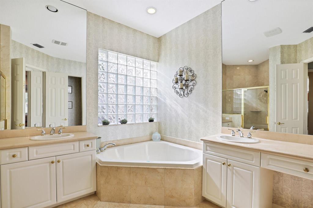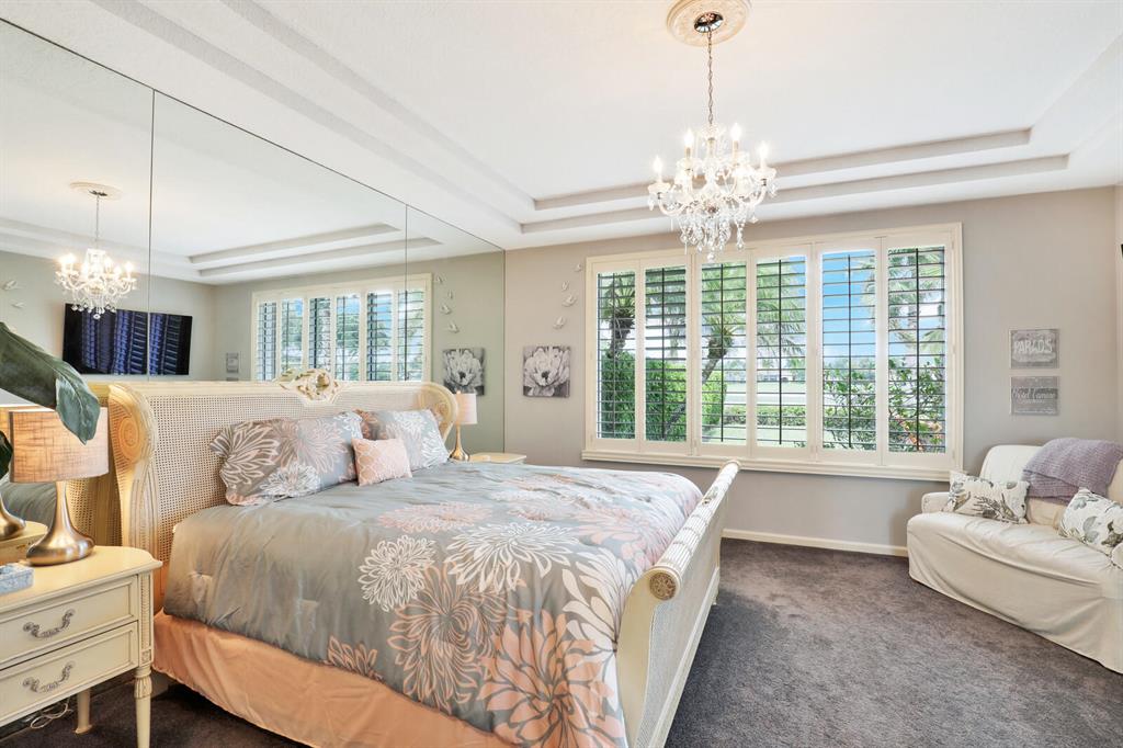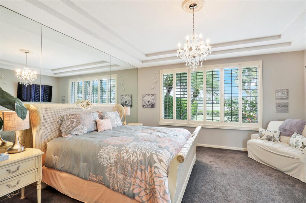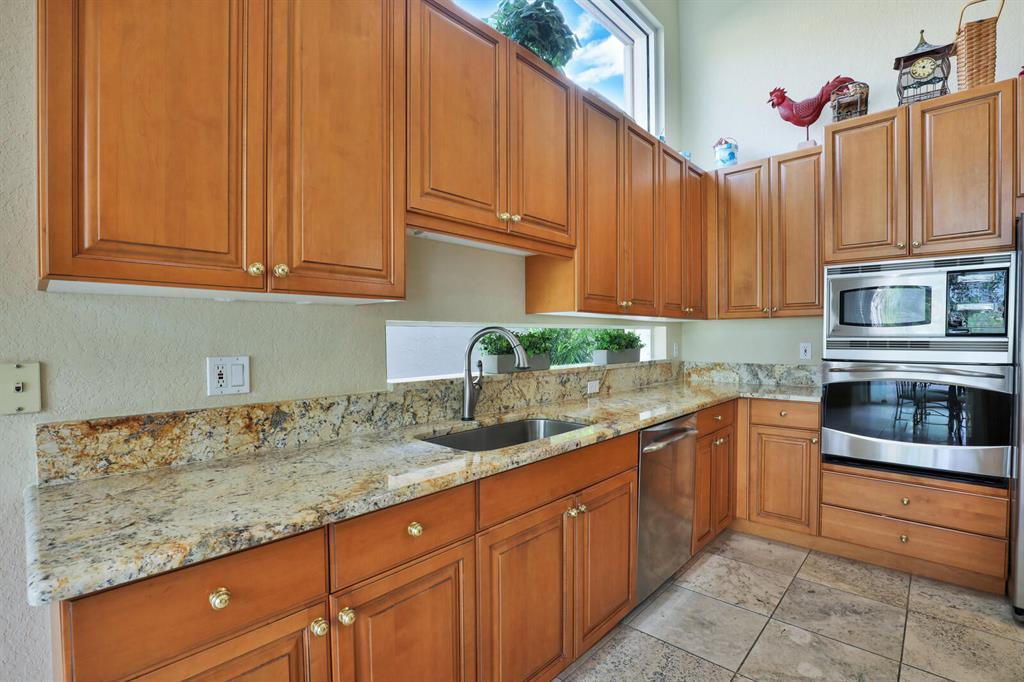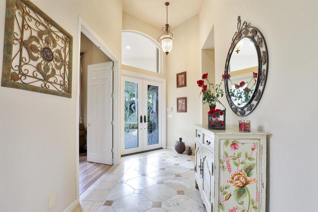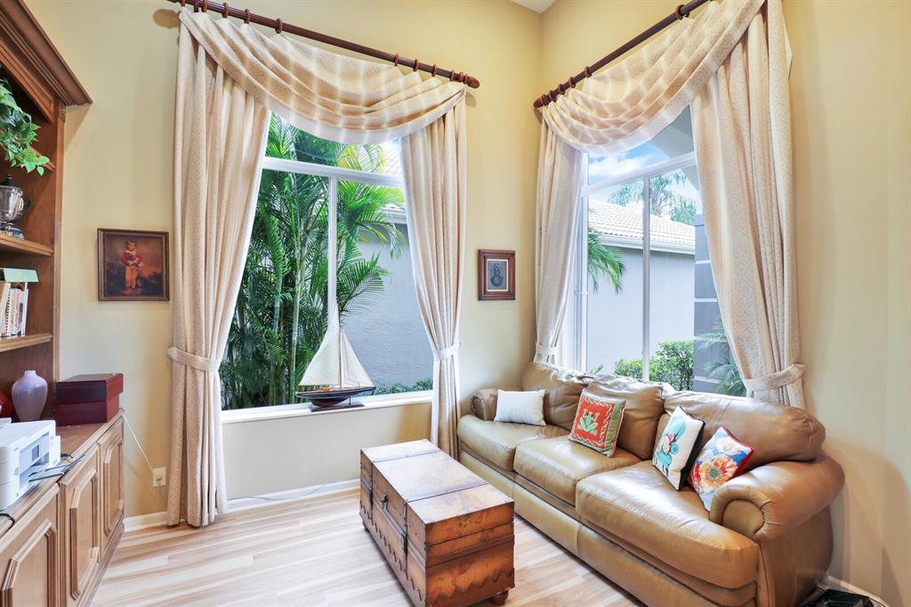 This former builder's model is located on a premium golf and water lot with dramatic views of the Legend #17. The large back yard has a resort-like feel with a large and dramatic pool and spa, and plenty of room for relaxation, with the picturesque water and golf views in the background. There is also a side yard, perfect for the pet owner. This 3BR/3BA+Den, 2.5-car garage features lovely upgrades including: Accordian hurricane shutters, marble floors with elegant inlays in the entry, granite counters tops in the kitchen and marble counter tops in baths, solid 8-foot doors, office built-in, and more. The Cambridge floor plan offers soaring ceilings, and a versatile floor plan with a great room off the open kitchen, formal living and dining spaces and a gracious foyer.