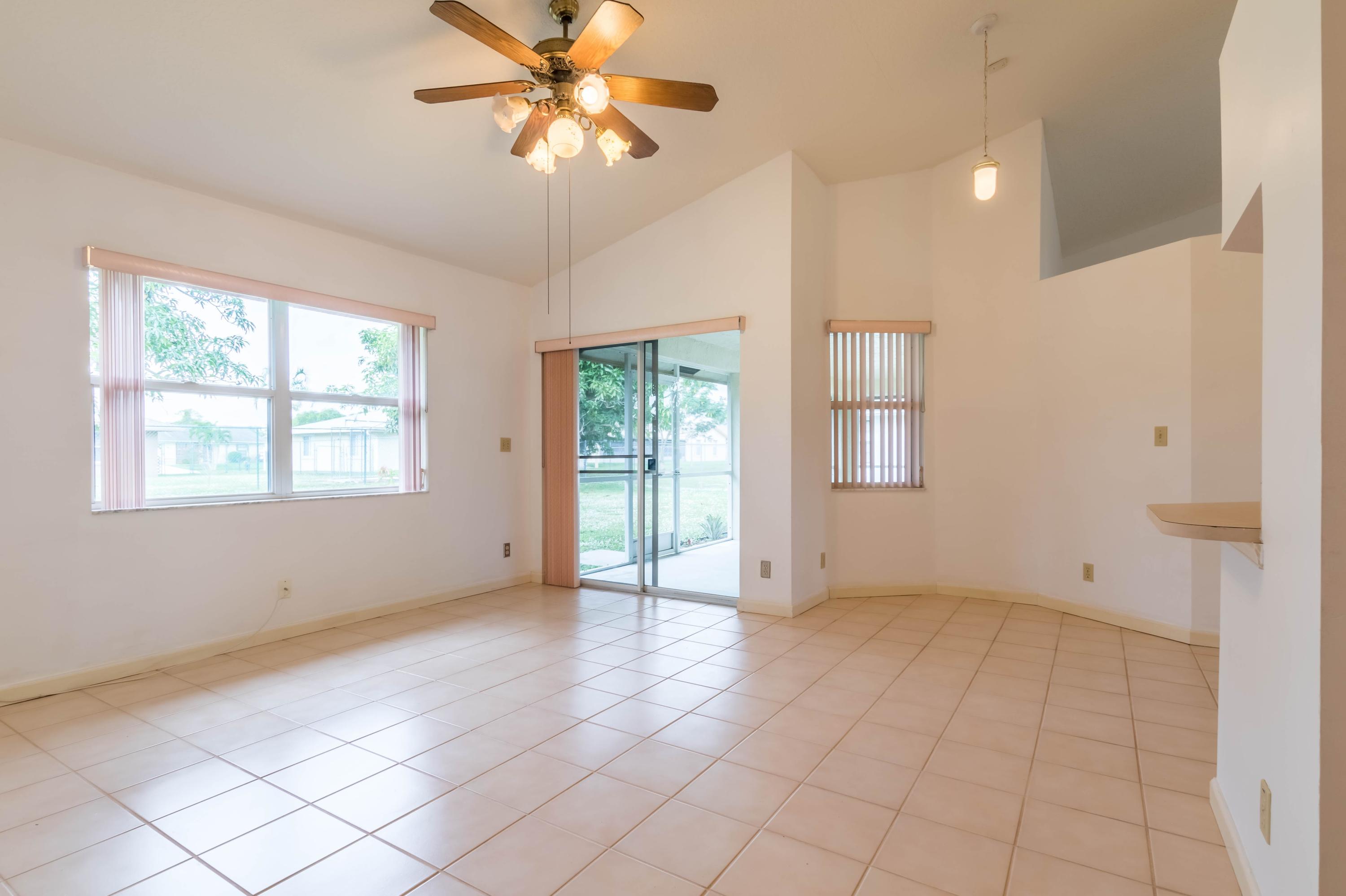 Spacious 3 bedroom, 2 bathroom, and 2 car garage home on a large .30 acre corner lot in La Mancha. Cathedral ceilings thru-out the livings area and tile flooring. Large screen and covered patio area overlooking the backyard. Full hurricane protection with Accordion shutters for all the windows. Split bedroom floor-plan. Great Royal Palm Beach neighborhood with no HOA fees and excellent Palm Beach County schools.
