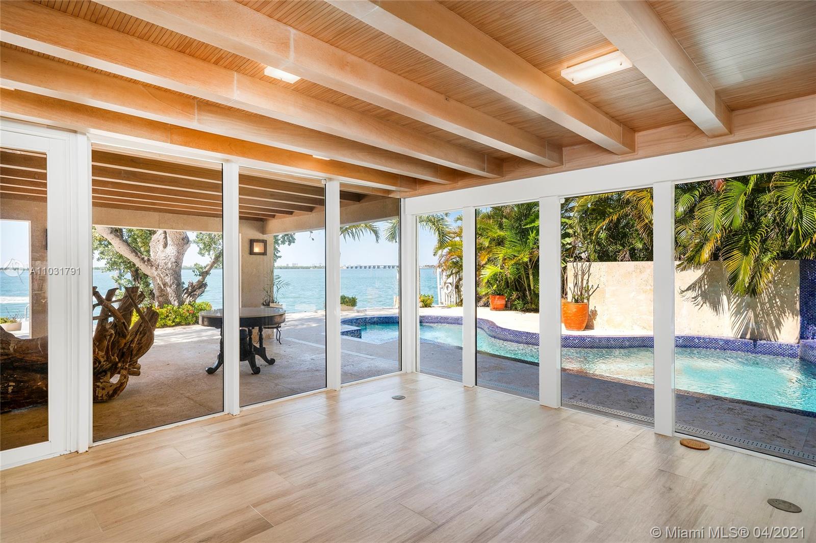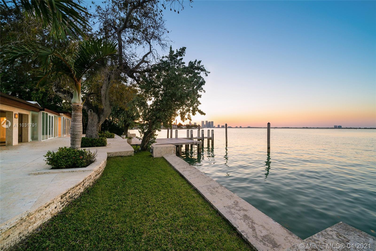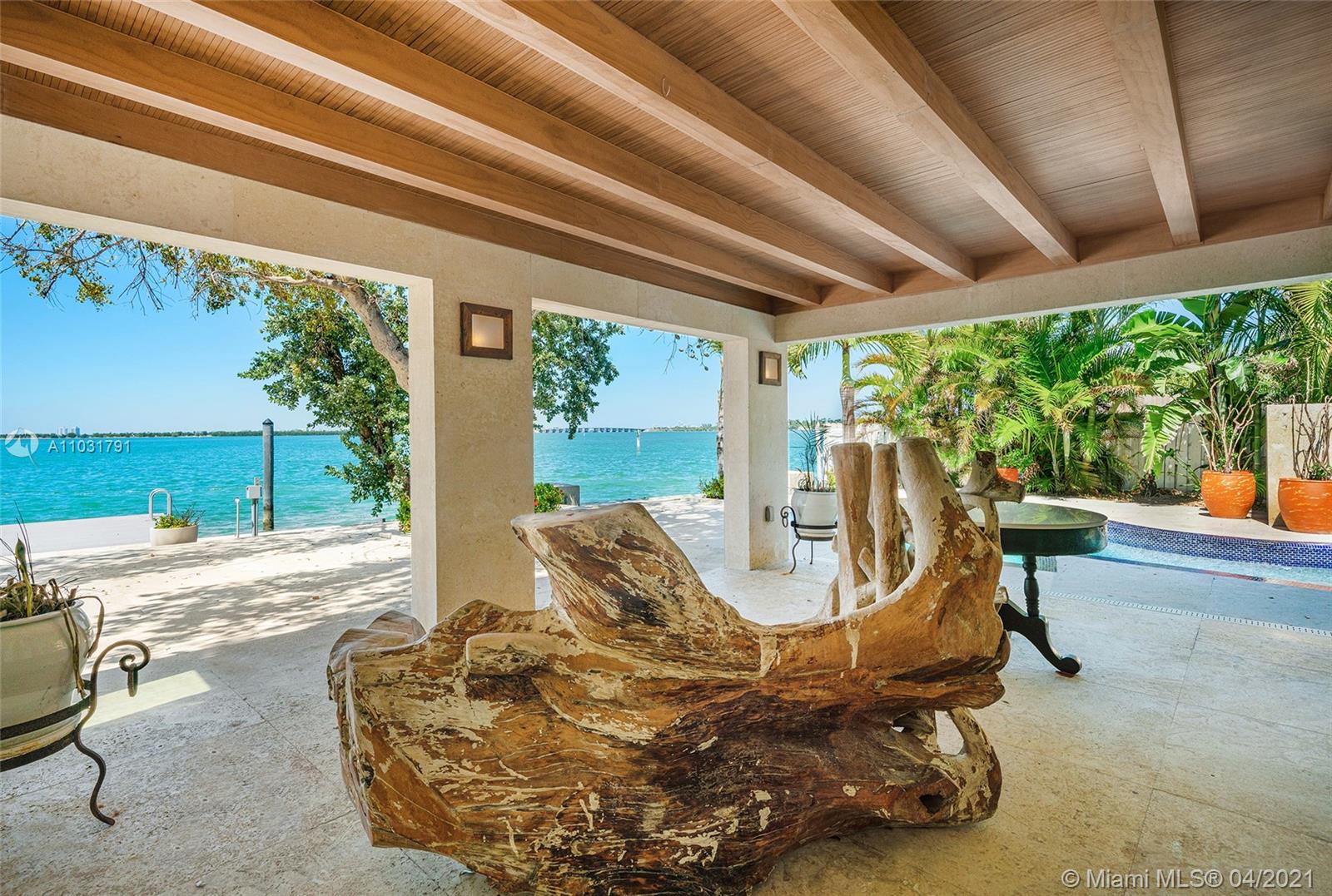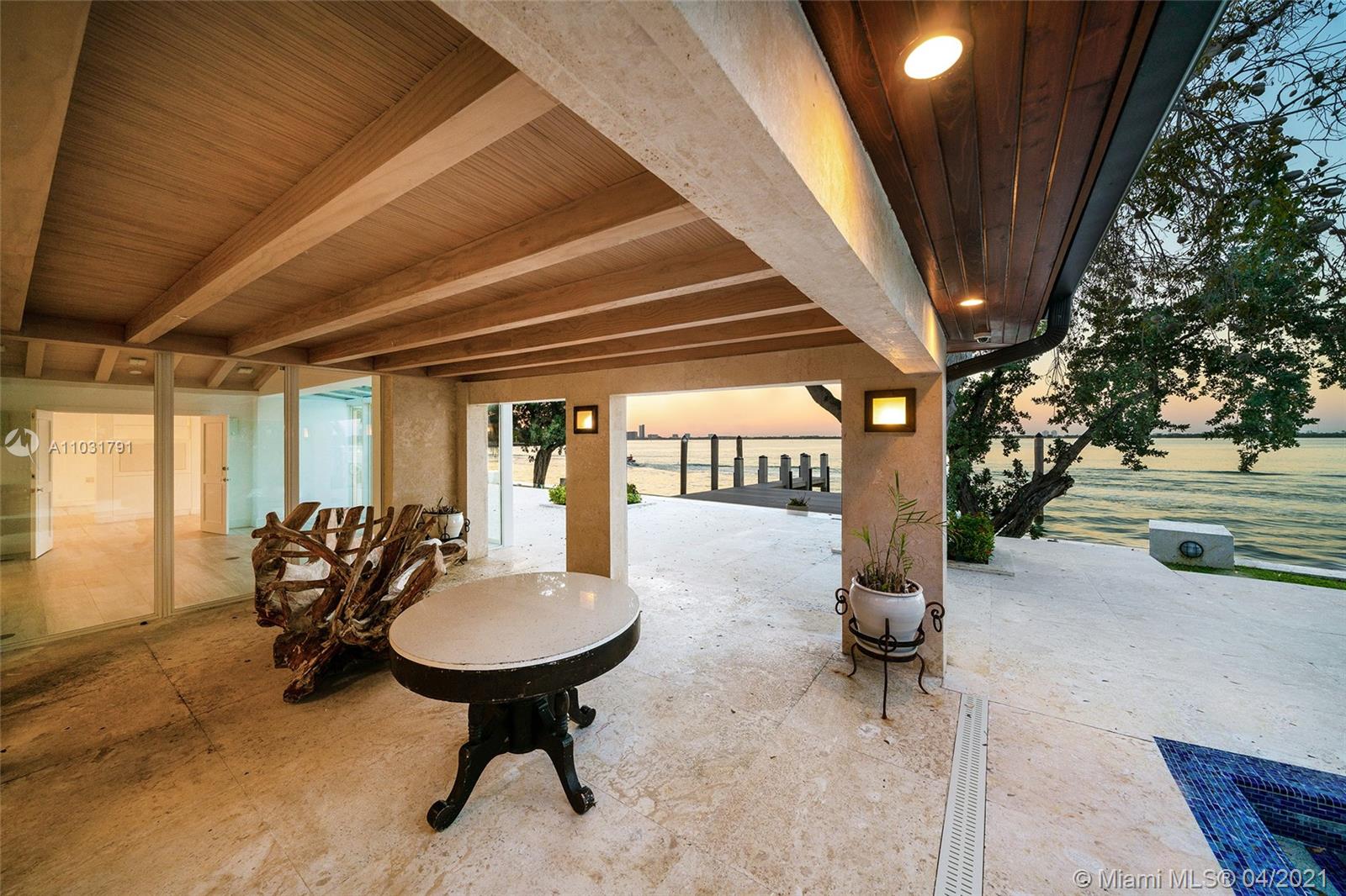 This Bayfront home is perfectly located on the coveted tip of the Venetian Islands. The 5BR/5BA home sits on a 13,382 SF lot w/open Biscayne Bay & stunning sunset views. Over 4,800 interior SF, wide plank tan oak & custom Cuban tile floors, high wood-beamed ceilings, sky lights & an interior courtyard. Spacious living room w/fireplace & wet bar, family room w/full BA, & dining room all w/large windows & water views. Gourmet kitchen sports top-of-the-line Wolf & Samsung appliances, granite center island, eat-in seating & adjacent family area to relax. Bay facing principal suite offers direct terrace access, voluminous walk-in closet & elegant principal bathroom w/walk-in glass shower & pedestal soaking tub. Large pool, deck w/covered seating area, large dock, direct bay & Ocean access.