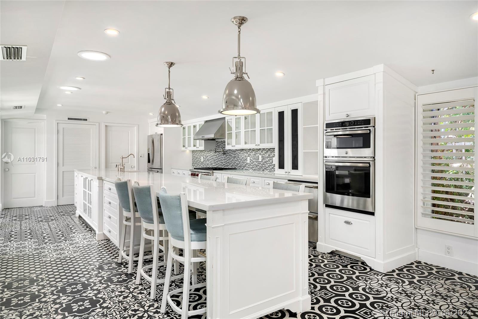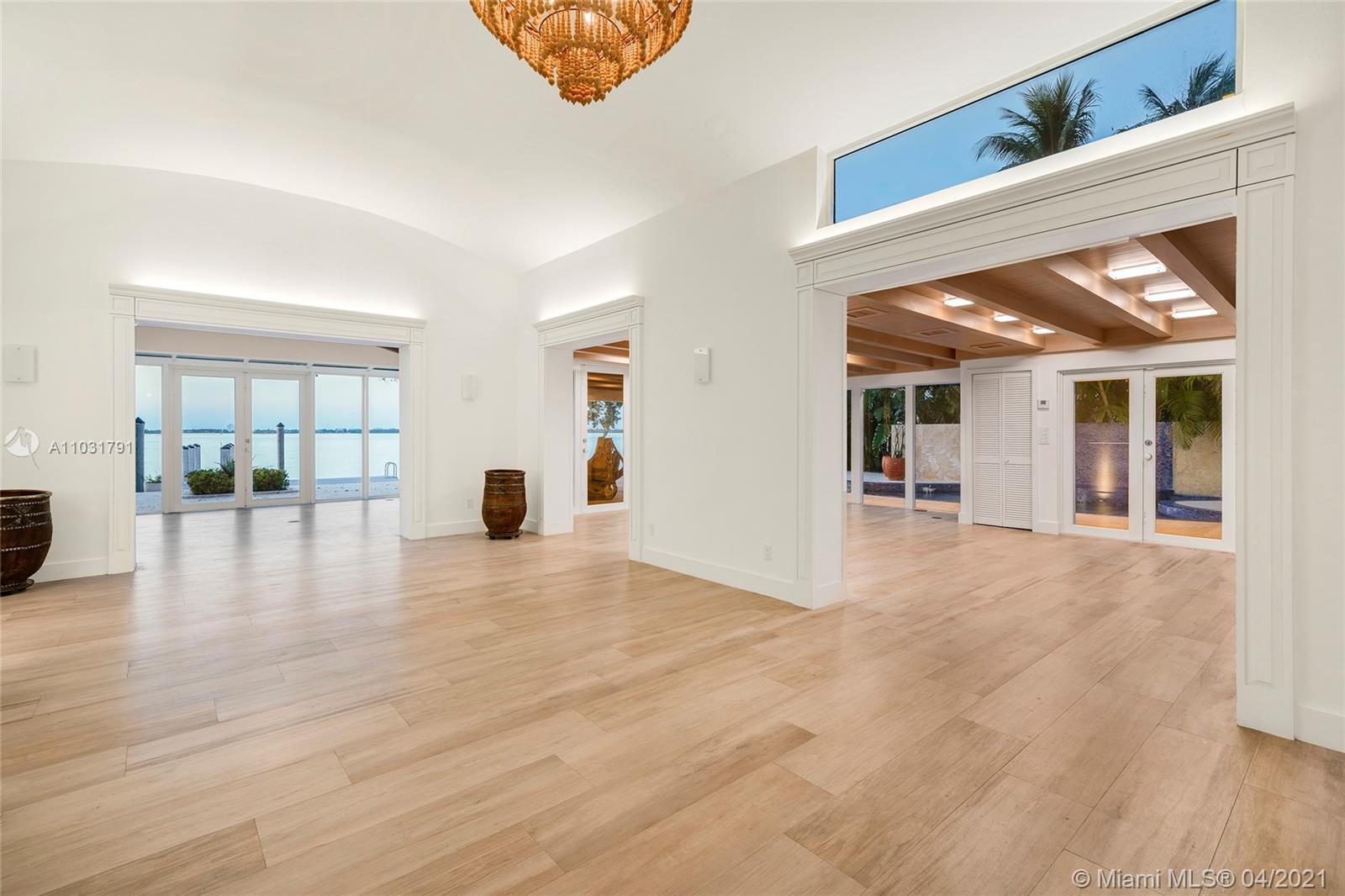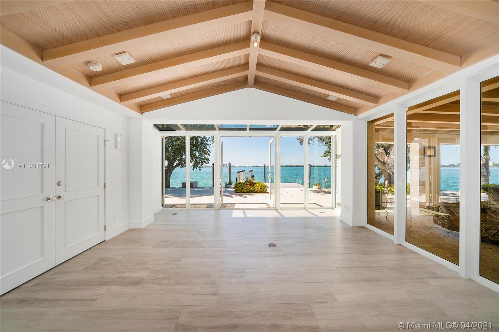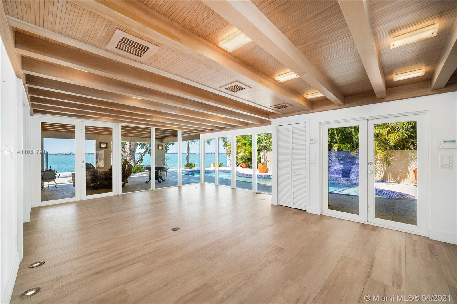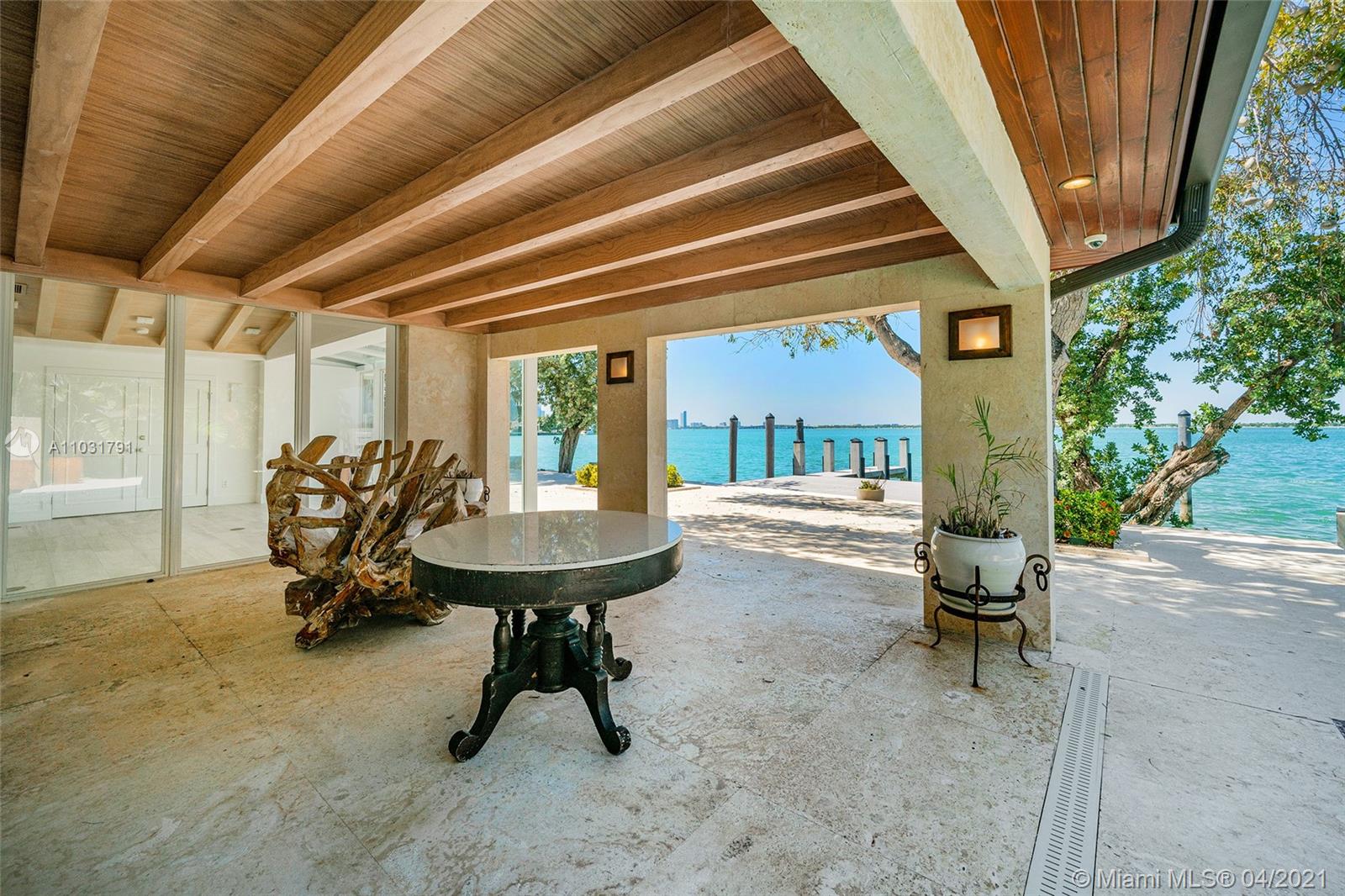 This Bayfront home is perfectly located on the coveted tip of the Venetian Islands. The 5BR/5BA home sits on a 13,382 SF lot w/open Biscayne Bay & stunning sunset views. Over 4,800 interior SF, wide plank tan oak & custom Cuban tile floors, high wood-beamed ceilings, sky lights & an interior courtyard. Spacious living room w/fireplace & wet bar, family room w/full BA, & dining room all w/large windows & water views. Gourmet kitchen sports top-of-the-line Wolf & Samsung appliances, granite center island, eat-in seating & adjacent family area to relax. Bay facing principal suite offers direct terrace access, voluminous walk-in closet & elegant principal bathroom w/walk-in glass shower & pedestal soaking tub. Large pool, deck w/covered seating area, large dock, direct bay & Ocean access.