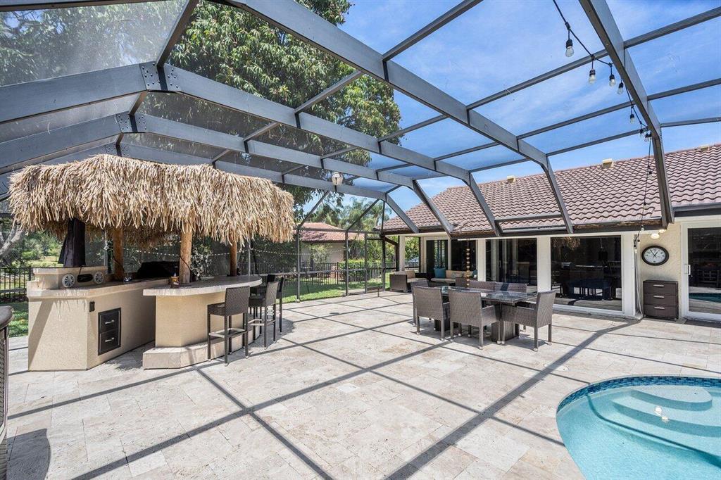 Fantastic remodeled home in Timbercreek! Rarely available, open floor plan with Vaulted Ceilings, extremely light, bright, open and airy. Abundant features throughout including 3 bedrooms, 2 bathrooms, all HURRICANE Impact Windows and Sliders, smooth ceilings throughout, both Bathrooms remodeled, huge screened pool and patio area with a $30k Tiki hut includes refrigerator, TV, and bbq grill, Tiki Hut has underground electric and water drain line. HURRICANE rated garage door (2018), garage has a split AC unit adding over 400 sg ft of under air space, S-tile roof (2002), HVAC (2010), Tankless hot water heater (2018), huge 12,812sf lot, pool and patio recently resurfaced, newer salt water pool filter system, newer sprinkler system, large storage shed, 2 large side yards have plenty of room