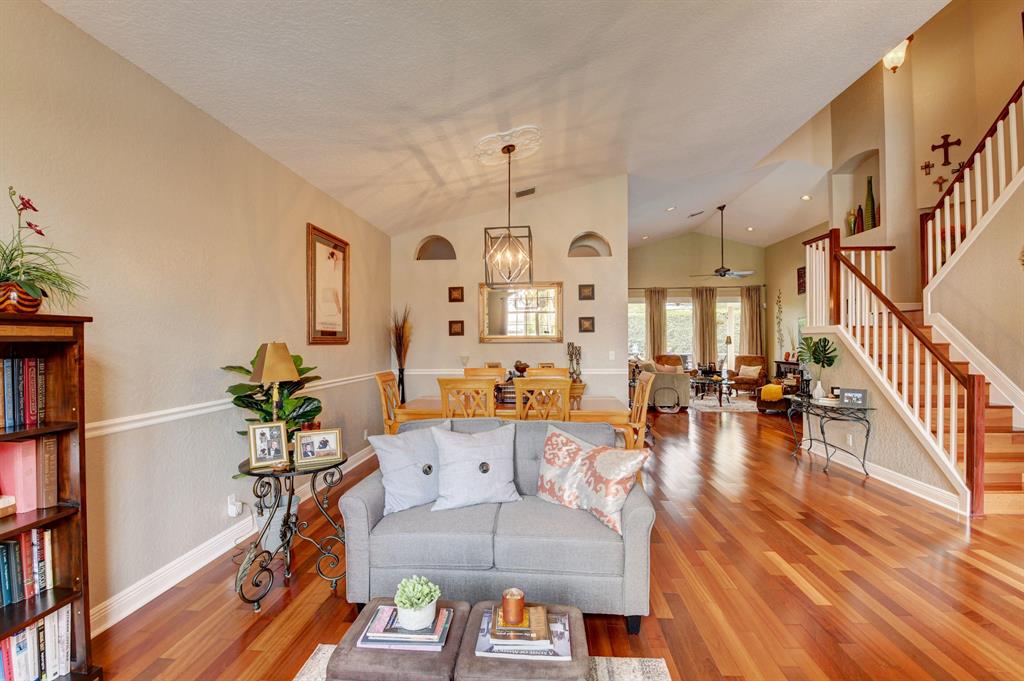 This is the one!!!!! Brand new roof just finished in 2021!!!This beautiful home sits on a large pie shape lot!As you enter this home, you will notice the Brazilian Cherry wood floors through out, both downstairs and upstairs!The kitchen has a very open feel with wood cabinetry, stainless steel appliances and granite counter tops. Perfect for entertaining. Master suite is conveniently located on the ground floor, overlooking the salt treatment pool. The master bath is beautifully appointed with travertine and a frameless shower.All other bedrooms upstairs, allowing you for a great floorplan when it comes to privacy.The pool area is extremely inviting, with a polished Mexican tile deck, large pool and seating area and plenty of land/yard for pets, fruit trees or simply to pla