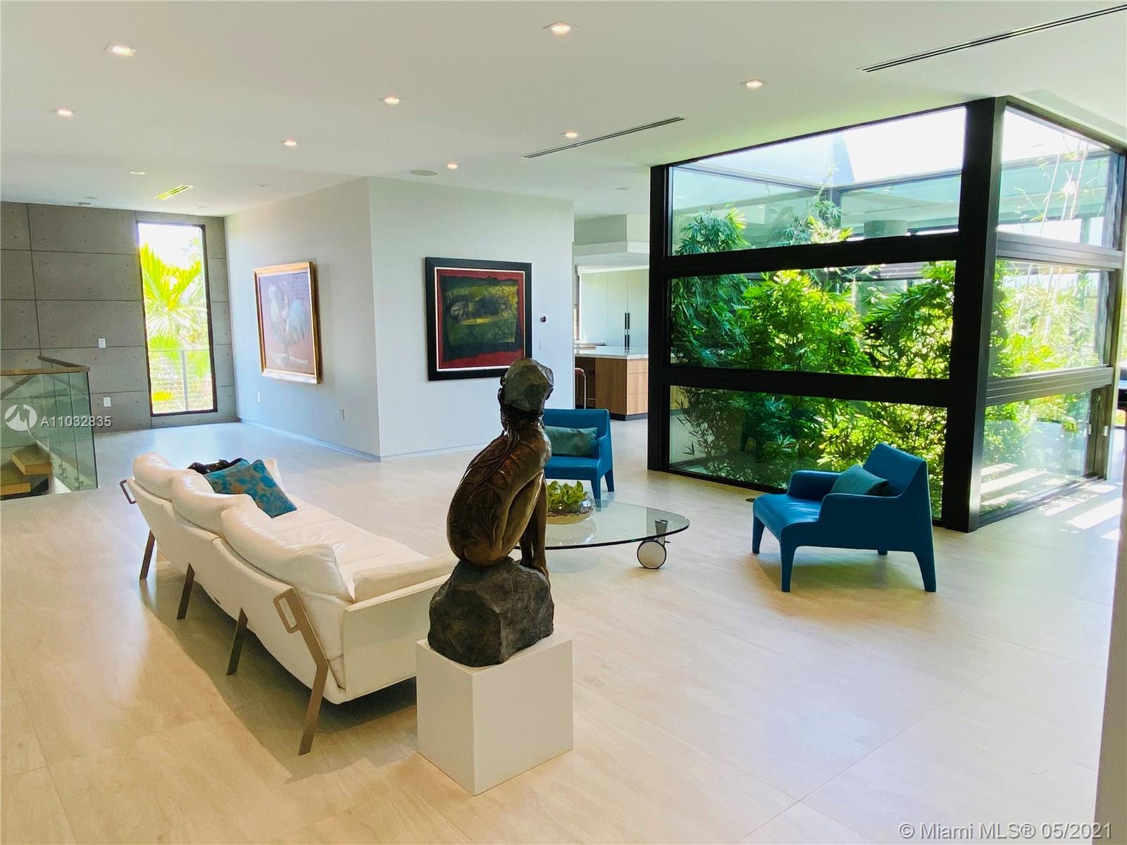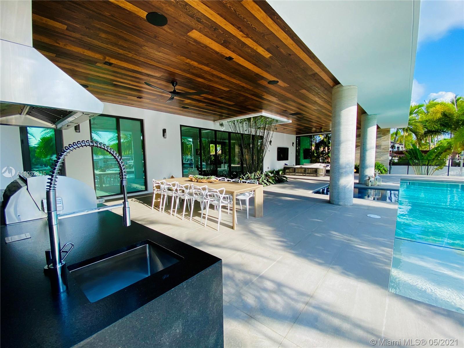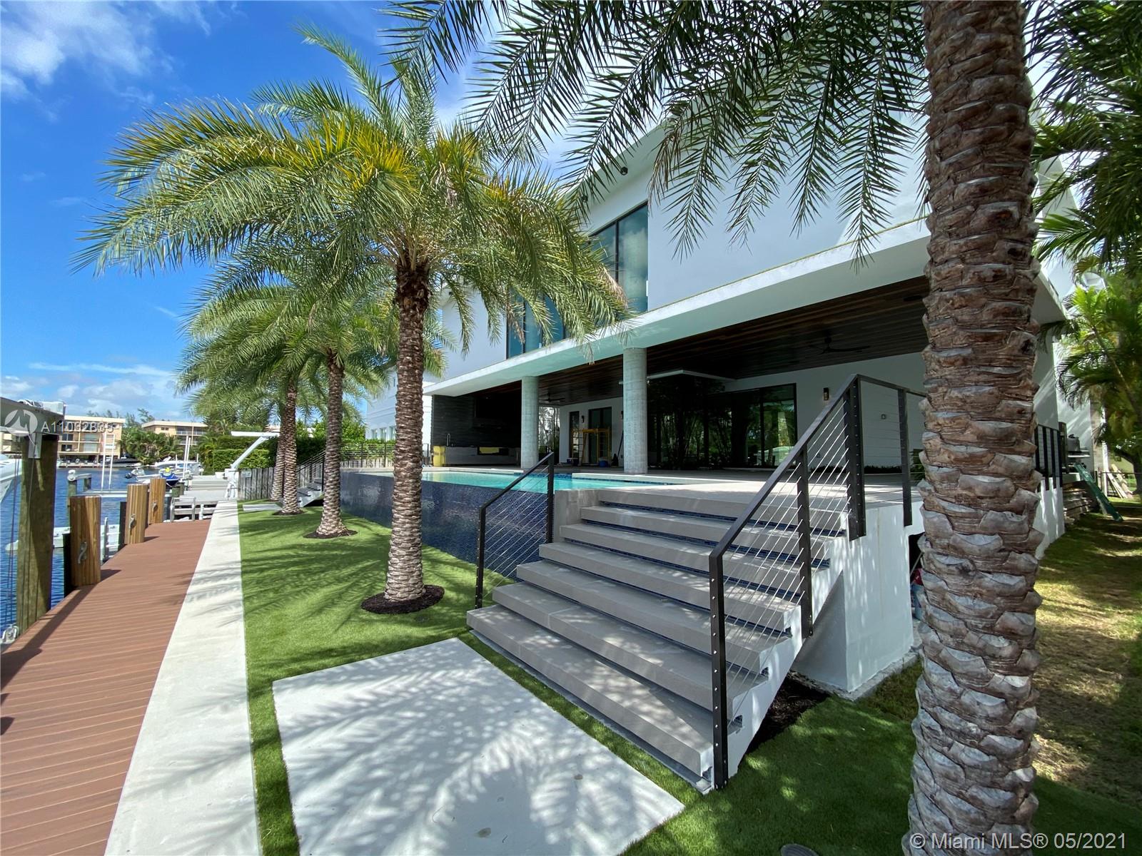 *UNIQUE*Keystone Island Contemporary Masterpiece of Architecture and Design is perfectly situated in a gated community , 24 hrs security | 5 min to high-end restaurants and Bal Harbour Shops | 78 ft waterfront and deep water dock-age |30k pounds boat lift just 3 min to bay |6bed/5bath | 8692 total sf | pool,spa,waterfall and fountain | 4 car garage | 24' high ceilings | 1st floor, 2nd floor and roof solid slab concrete | natural gas | Impact and solar advantages protection windows and doors | natural walnuts Italian doors | Italian Kitchen w/ top Wolf and Sub-Zero appliances | Glass interior patio | 1600 sf outdoor living space with summer kitchen.