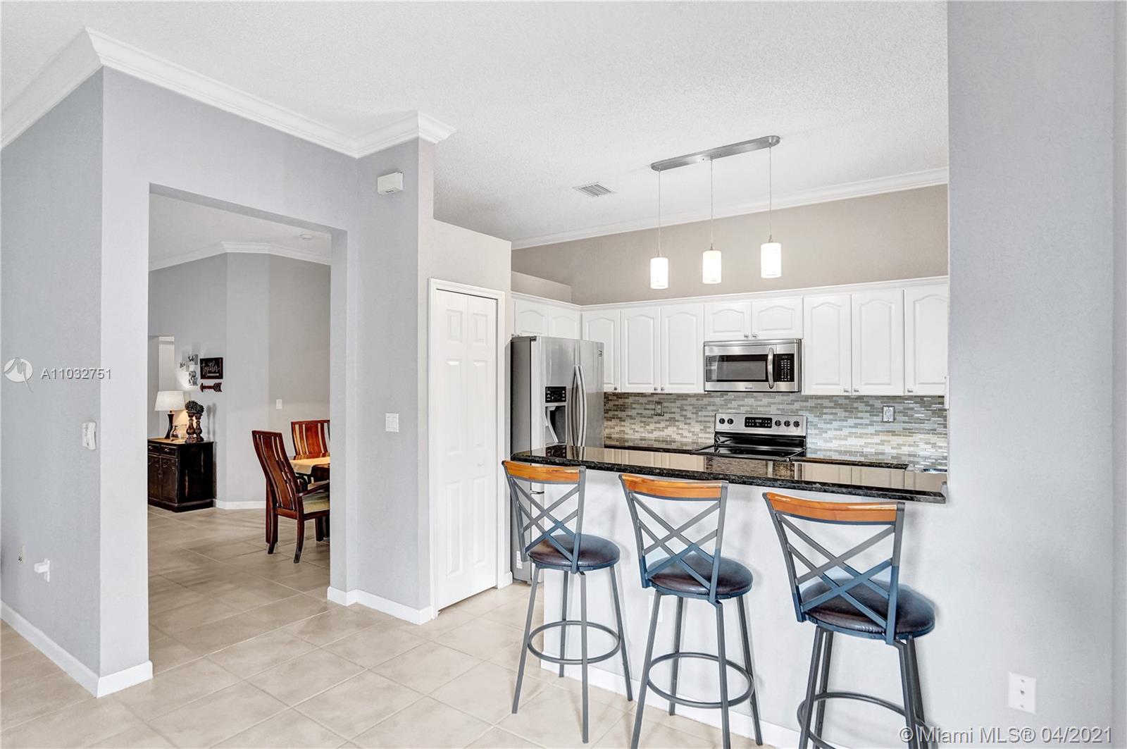 Don't miss out. Only needs a new owner, that's about it. Home in very good condition, it's been loved and it shows. Beautiful foyer welcomes guests. Large living room and family rooms. Kitchen is well maintained with tile backsplash, granite tops and stainless appliances. All baths vanities have been recently updated and tastefully done with tile accents. Lovely low maintenance floors. Split bedrooms with 2 and 1 half baths. 2 car garage. Lots of closets for storage. Appliances are newer and in great condition. Patio recently painted. Accordian shutters for hurricane protection. Hurricane impact front door. Washer and Dryer are excluded. Association cuts lawns in community. NO ADDITIONAL SHOWINGS ARE PERMITTED AT THIS TIME. WE ARE COMPLETELY FULL. THANK YOU.