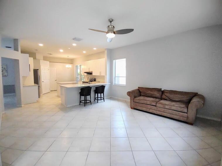 SINGLE STORY, LARGE CORNER PRIVATE LOT, & MOVE-IN READY Bridgeport Model in the Exclusive, Gated, Resort Style Community of PEMBROKE FALLS. This home is the LARGEST 3-bedrooms/ 2.5 baths model available with a BONUS ROOM! Home features plenty of Natural Light, New Kitchen (2019), Updated Baths (2020 & 2021), New Laminate Floors (2020), New 5-Ton A/C (2020), New Fixtures (2020) NO CARPET, Extra Large Master Bedroom, Custom Closets in all Bedrooms, Garage Storage, Large Screened-In Paved Patio, Sun Setter w New Fabric, Gas Hookup for BBQ, Accordian Shutters, Large Playground in Backyard, and so much more!!! A+ Schools. Enjoy the beautiful lakeview from the front of your home and a private tropical oasis in your backyard, featuring a large wooden playground for the kids! ROOM FOR A POOL!