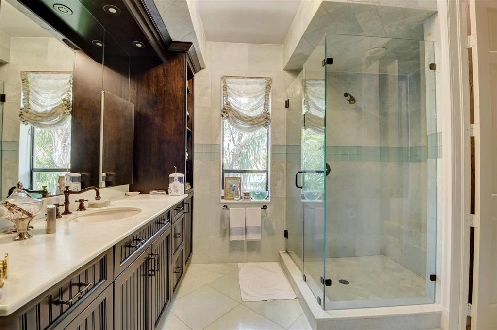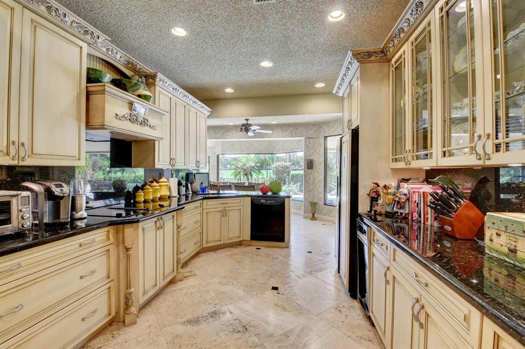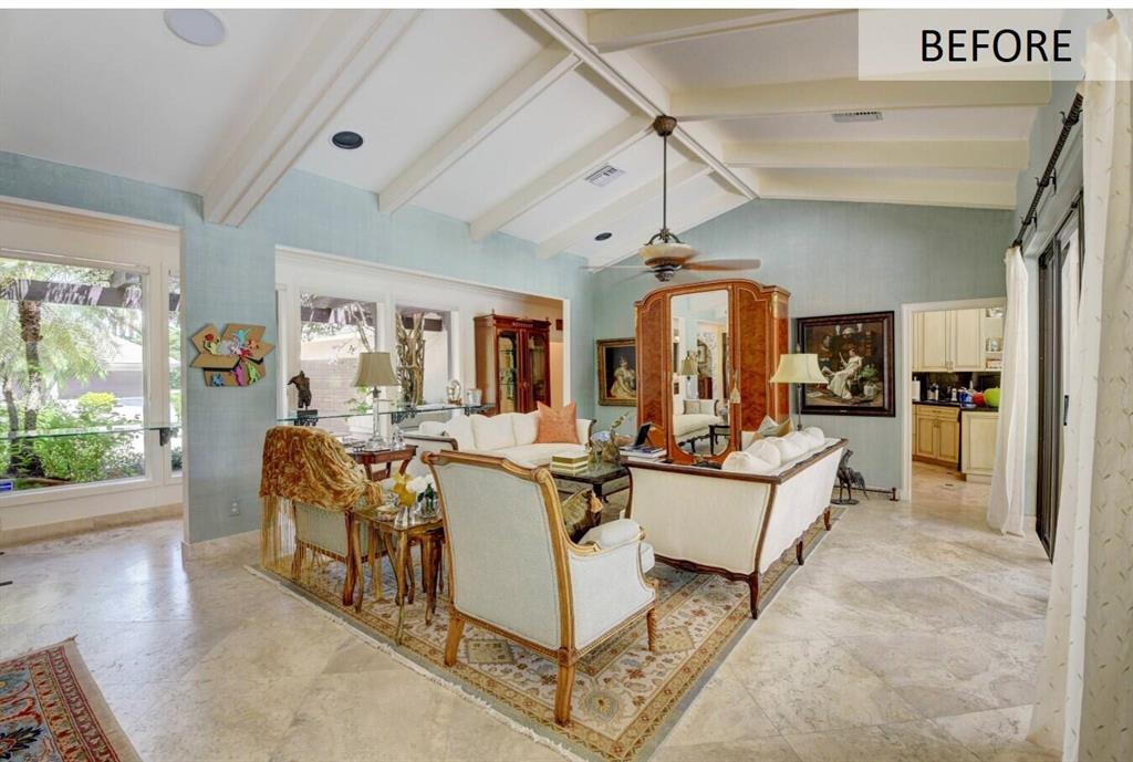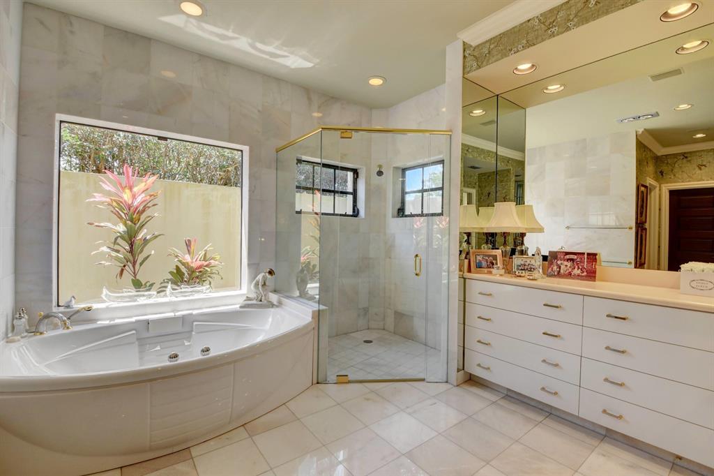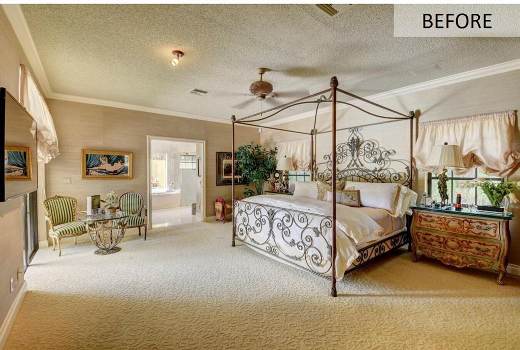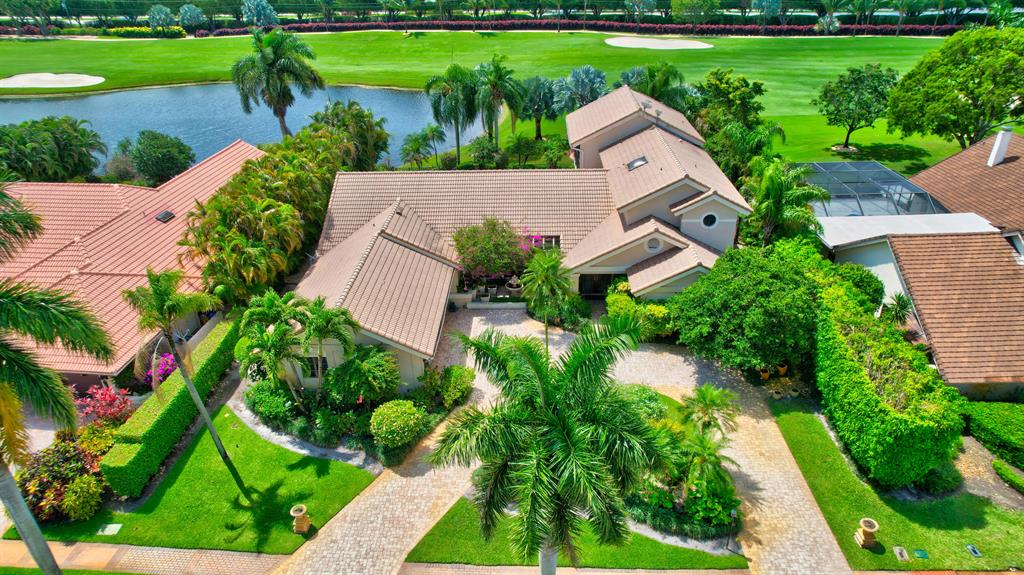 Lovely 3-bedroom + den/office home with panoramic lake & golf course views in St. Andrews Country Club. The home features 2 master suites, a full-house generator, and elevator. There are 2 bedrooms downstairs (including one master) plus a den/office. NO STEPS on the 1st floor. A second master suite is upstairs, with French doors leading out to a covered balcony. Both master suites are very spacious with separate sitting areas and custom walk-in closets. All bedrooms are en suite. Gourmet kitchen with double ovens and lots of storage. Desirable southern exposure out back, pool with spa, open & covered patio areas with marble pavers, and expansive lake & fairway views. Note: The ''After'' photos have been digitally modified to show the possibilities for the property.