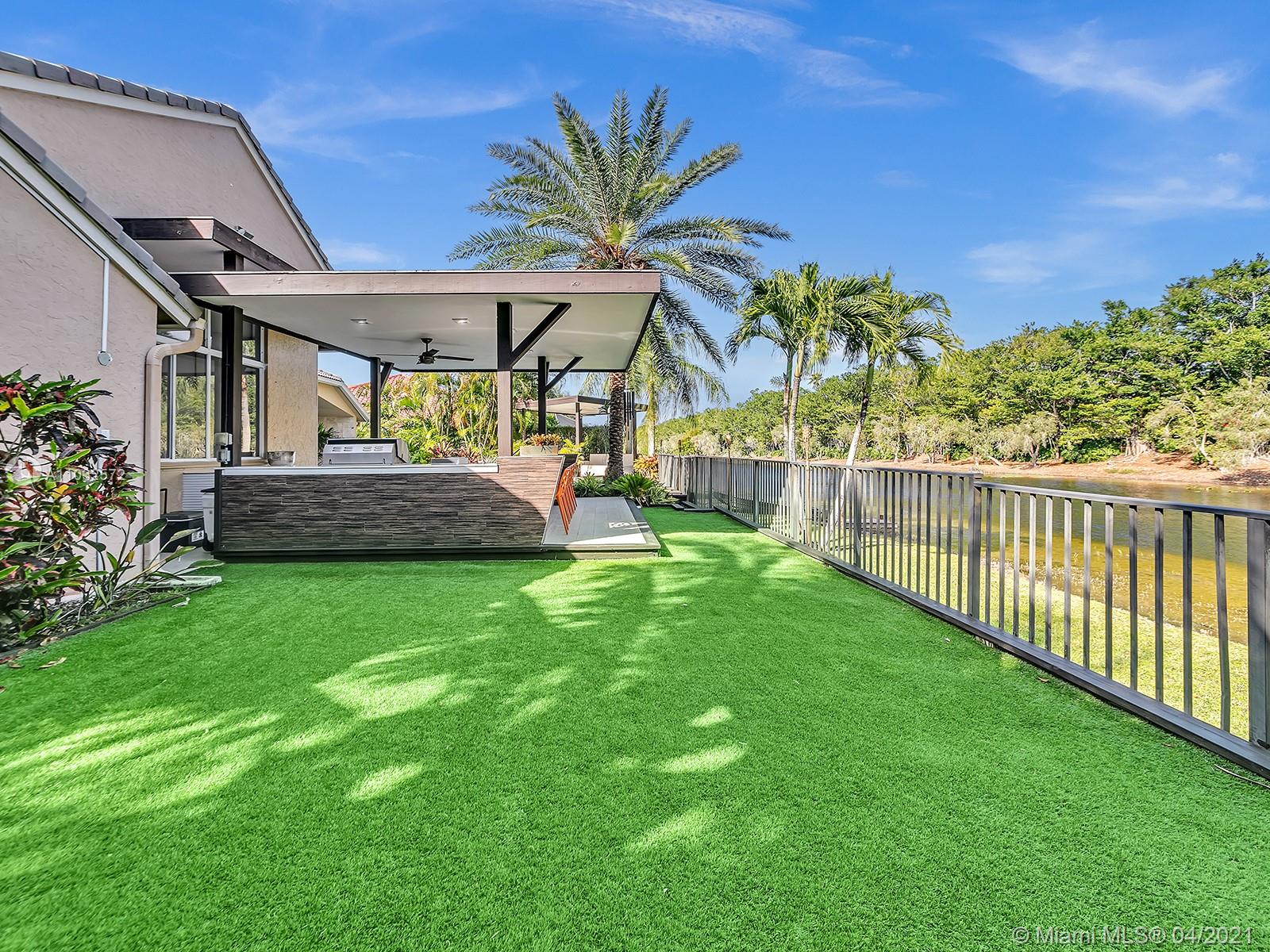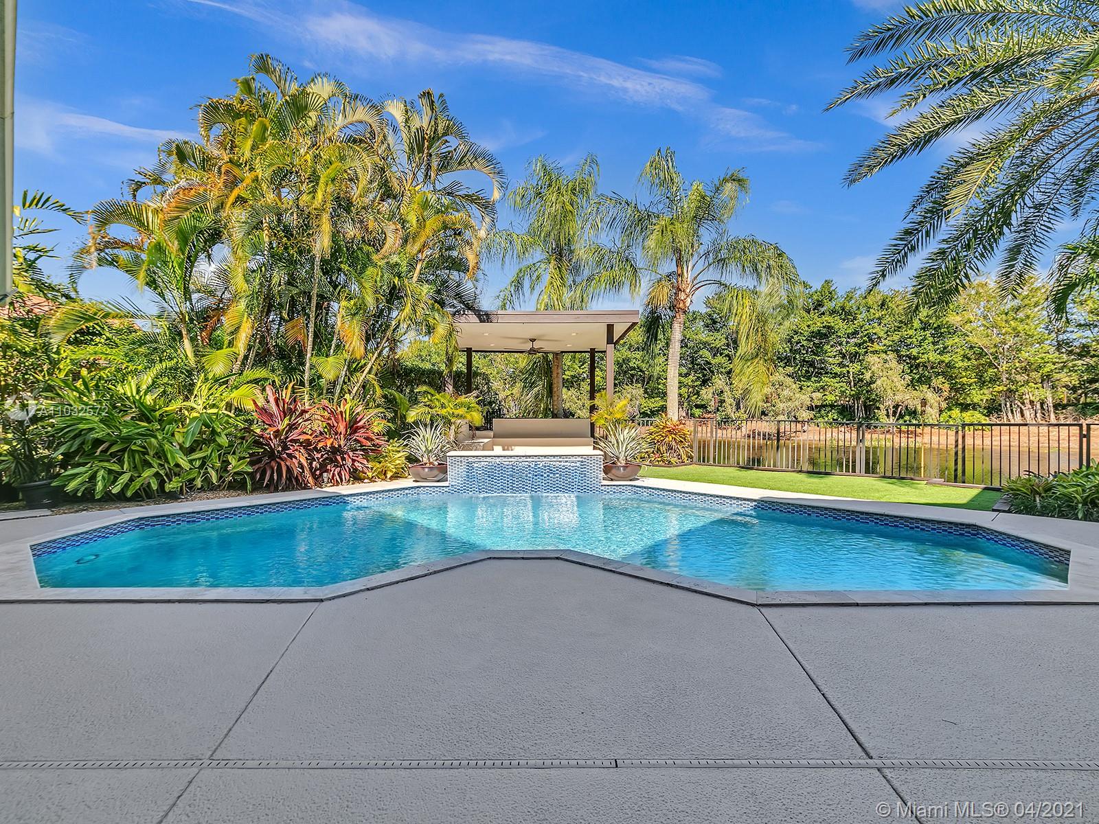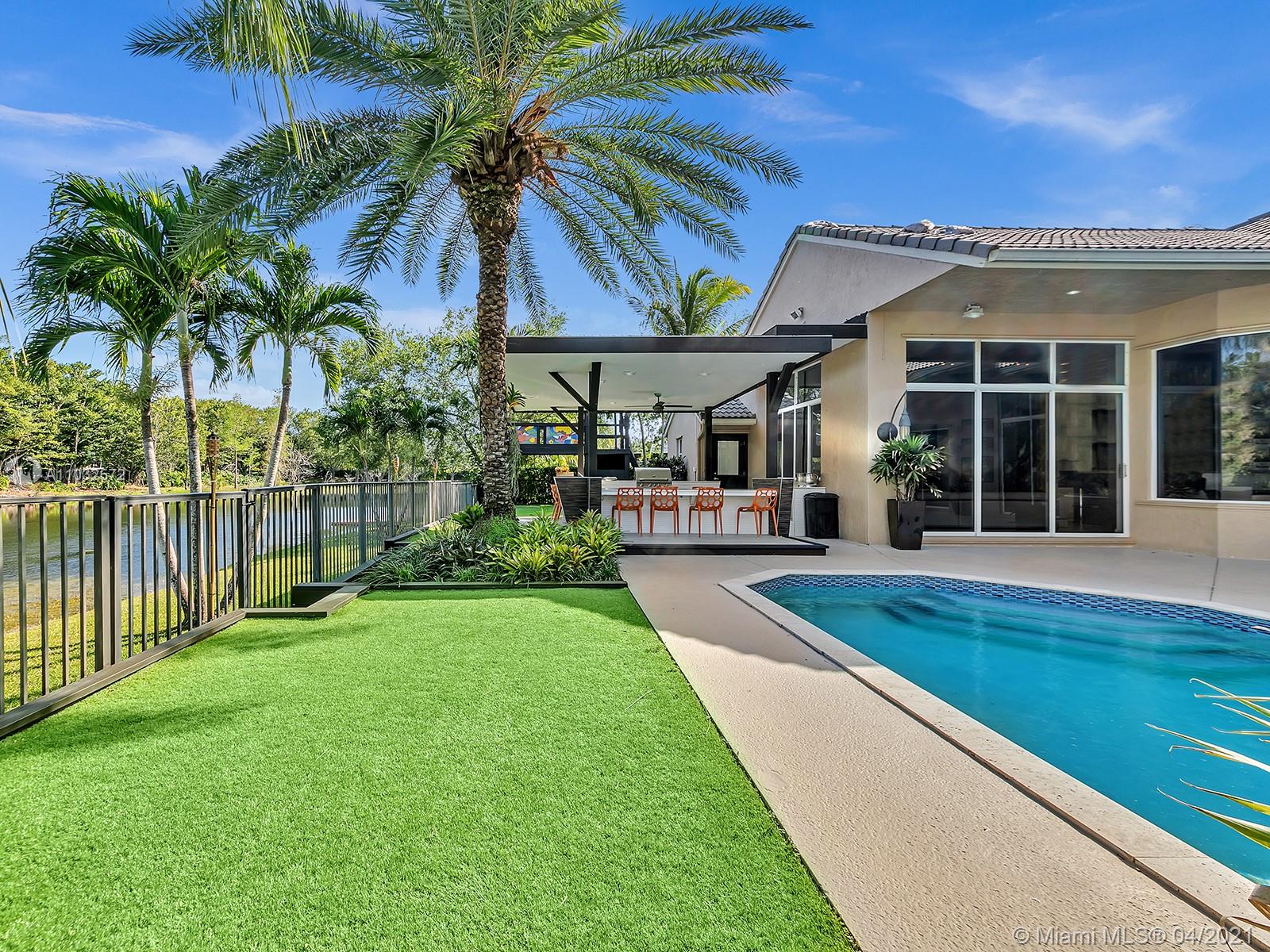 Contemporary & Impeccably Maintained 5 bedroom 4 bath waterfront home located in sought after Weston Hills Country Club. Home features open floor plan, sun-filled great room with volume ceiling, formal dining room, family room and gourmet kitchen with marble counters. Master bedroom features a large walk-in closet. Master bath with dual sinks and separate Jacuzzi tub and walk-in shower. Large fenced lot (12,784 sf). Amenities include spacious and private backyard with heated pool, multiple outdoor lounging and dining areas, outdoor kitchen, professional landscaping, outdoor lighting, and 3-Car Garage. 24hr Guard Gated Community. Original roof. "A" rated Weston schools