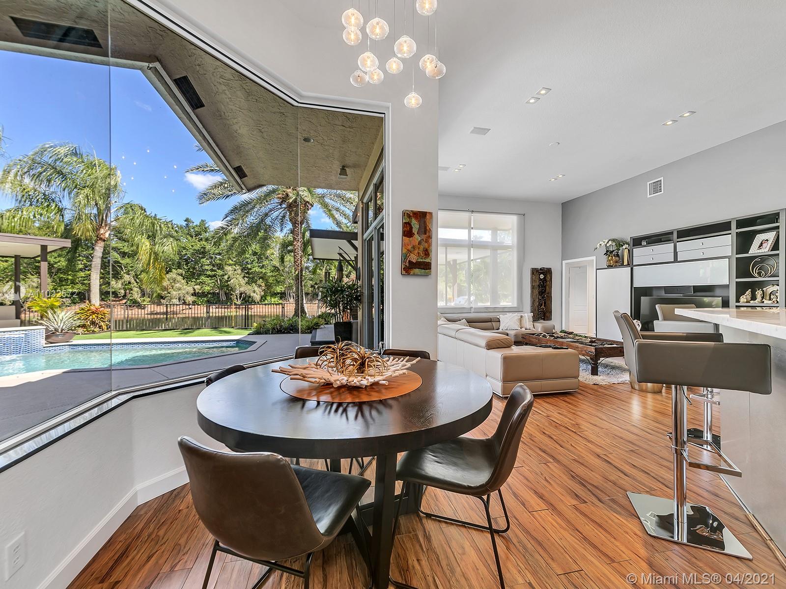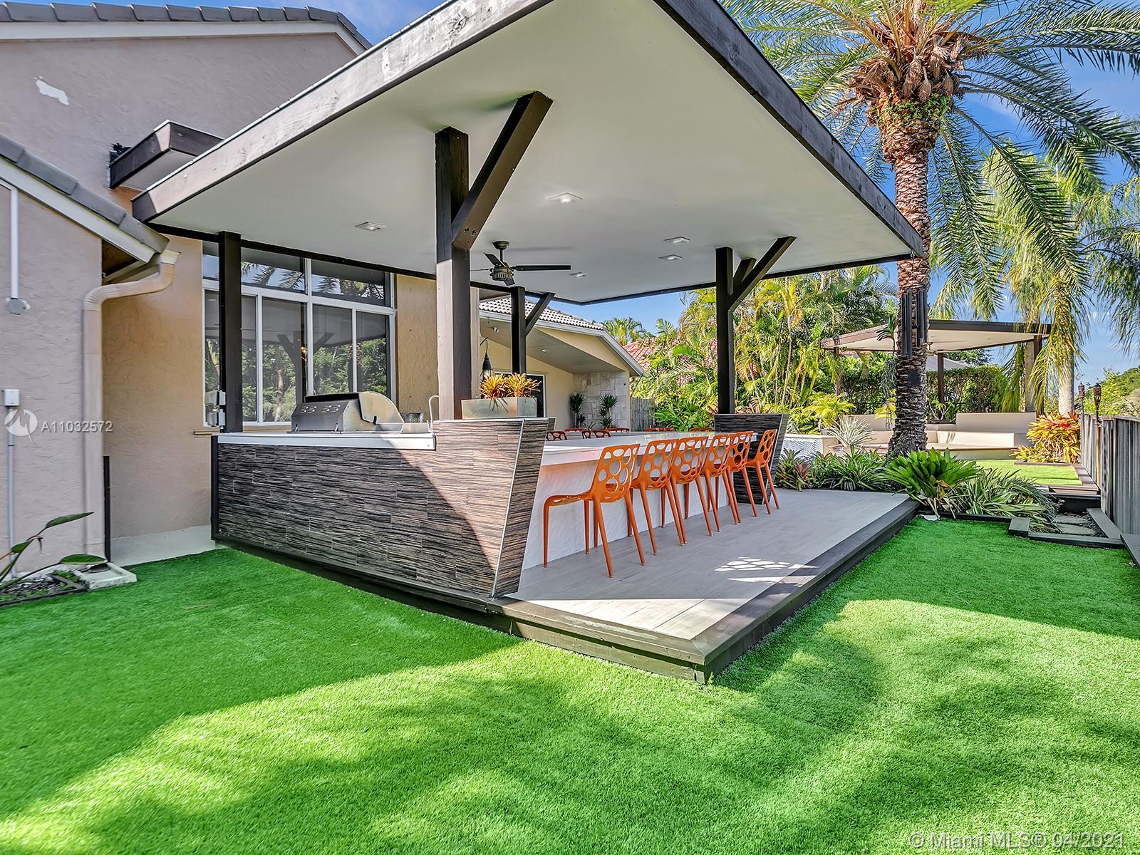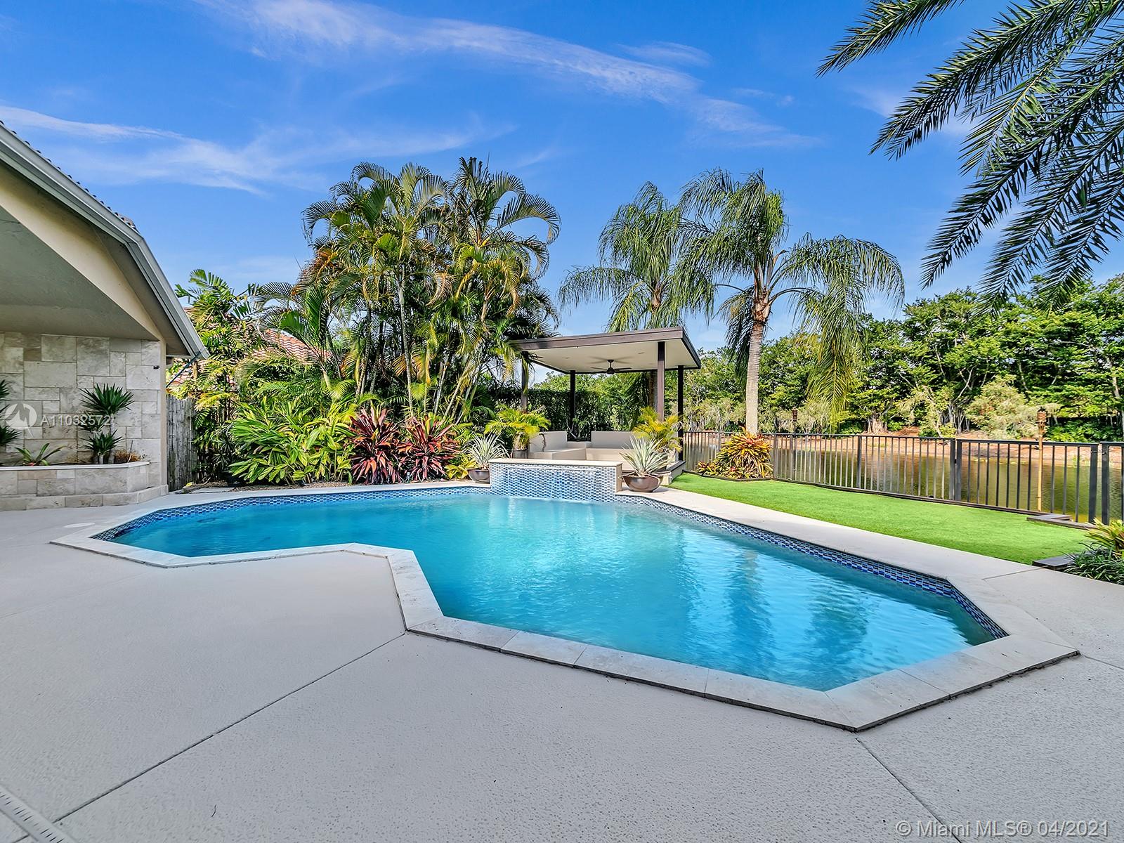 Contemporary & Impeccably Maintained 5 bedroom 4 bath waterfront home located in sought after Weston Hills Country Club. Home features open floor plan, sun-filled great room with volume ceiling, formal dining room, family room and gourmet kitchen with marble counters. Master bedroom features a large walk-in closet. Master bath with dual sinks and separate Jacuzzi tub and walk-in shower. Large fenced lot (12,784 sf). Amenities include spacious and private backyard with heated pool, multiple outdoor lounging and dining areas, outdoor kitchen, professional landscaping, outdoor lighting, and 3-Car Garage. 24hr Guard Gated Community. Original roof. "A" rated Weston schools