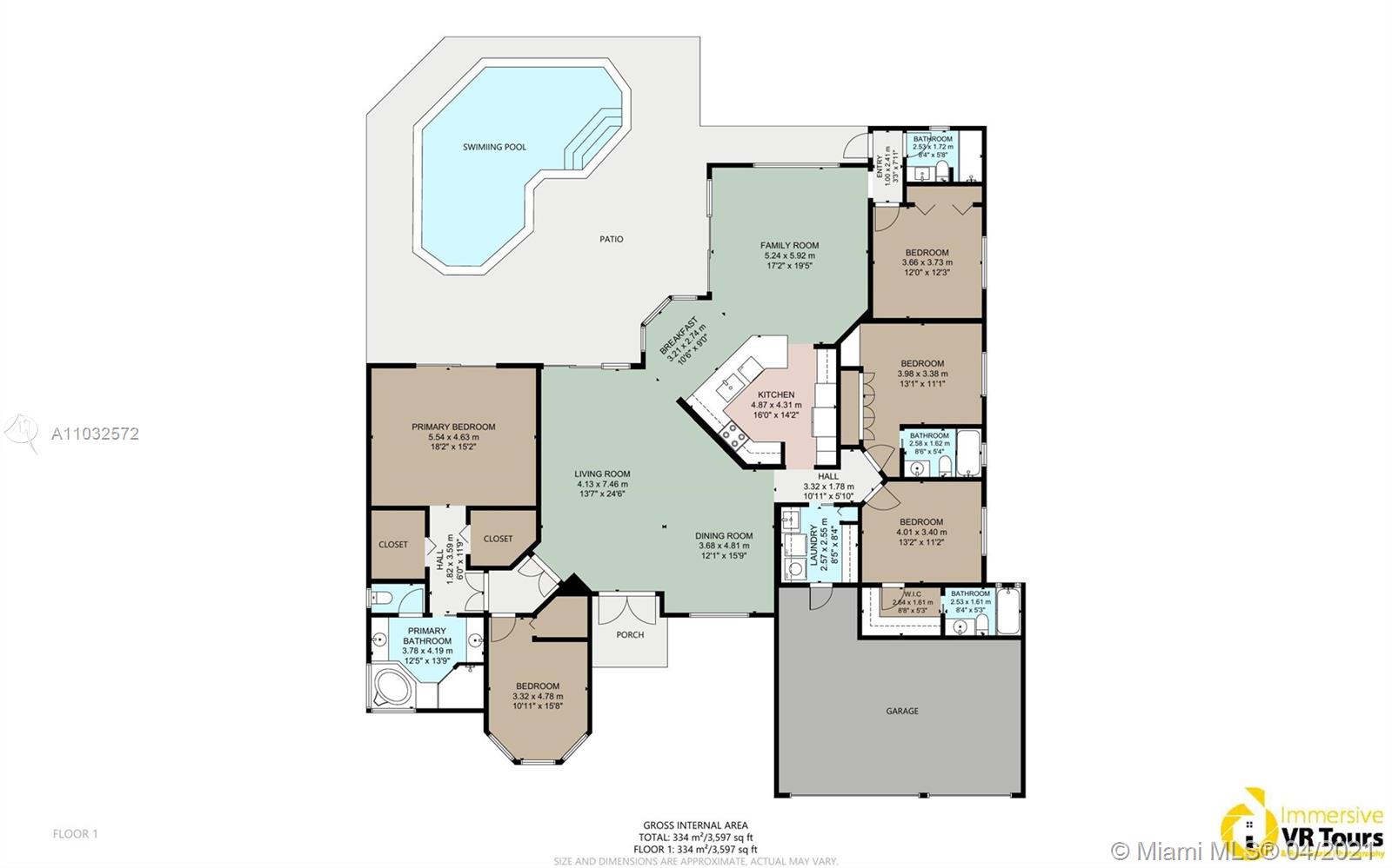 • Tamaño: 3597 pie² / 334 m²