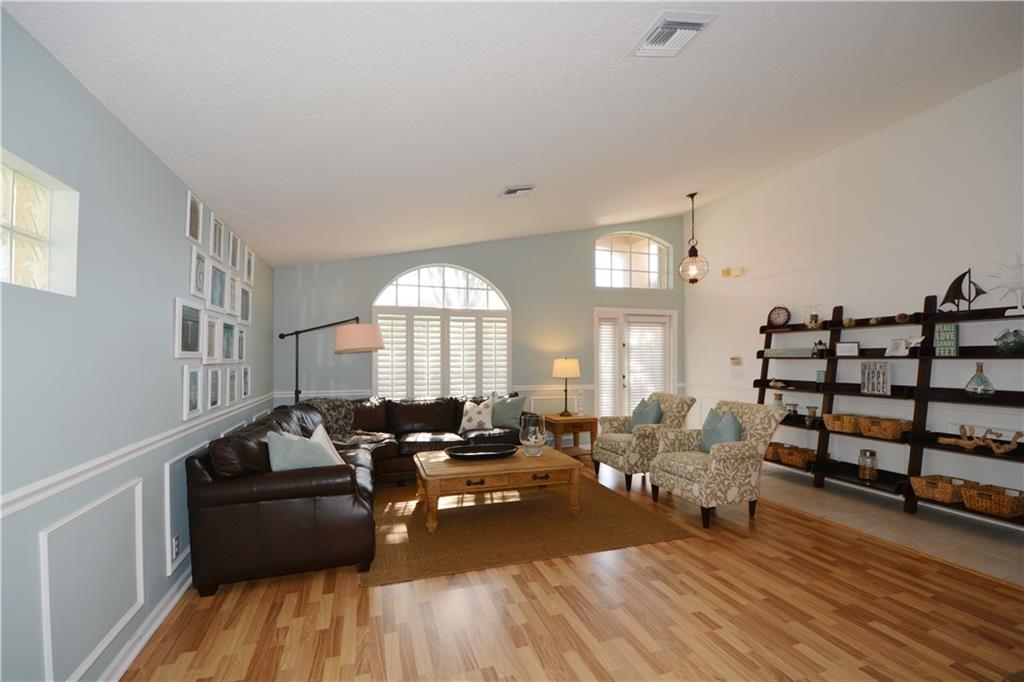 Beautiful home in the gated community of the Sanctuary at Kensington. This 4 bedroom/2 bath/2 car garage/pool home, features a screened in patio and private fenced in yard, making this a tranquil area that is also great for entertaining. Laminate floors are in all bedrooms, walk in closet in master, vaulted ceilings, new A/C 2013, water heater and washer/dryer 2016 and new appliances 2019. Updated kitchen with granite countertops and added desk area perfect for an in-home office. Entire house protected with accordion storm shutters and full alarm system. Call today for an appointment and make this your forever home!