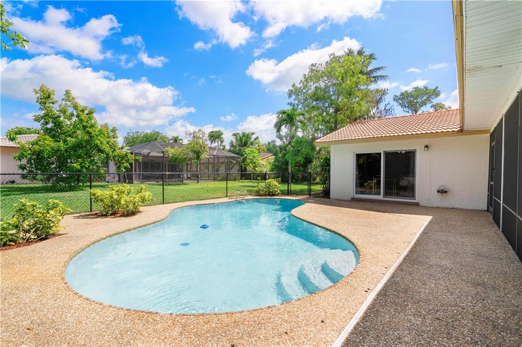 ** No Homeowner Association** Impact windows & sliders throughout this warm and inviting home. Sit in your kitchen or on the screened-in Lanai, while sipping your favorite libation and gaze at your lovely pool and fenced in backyard. Wood beam ceiling and skylights adorn the cozy family room. Eat-in kitchen with Island & cabinets to ceiling. Separate living room and dining room with Herring bone wood look tile flooring. All bedrooms wood look tile flooring. Rheem AC - 2018', hot water heater - 2016. Grand Bathroom with quartz counter-top - 2019'. GE Washer - 2017', Amana Dryer - 2021'. Kenmore refrigerator w/freezer on bottom - 2013', LG Stove w/convection and warmer - 2018', Bose Dishwasher - 2018', LG Microwave 2021'. View and Enjoy!