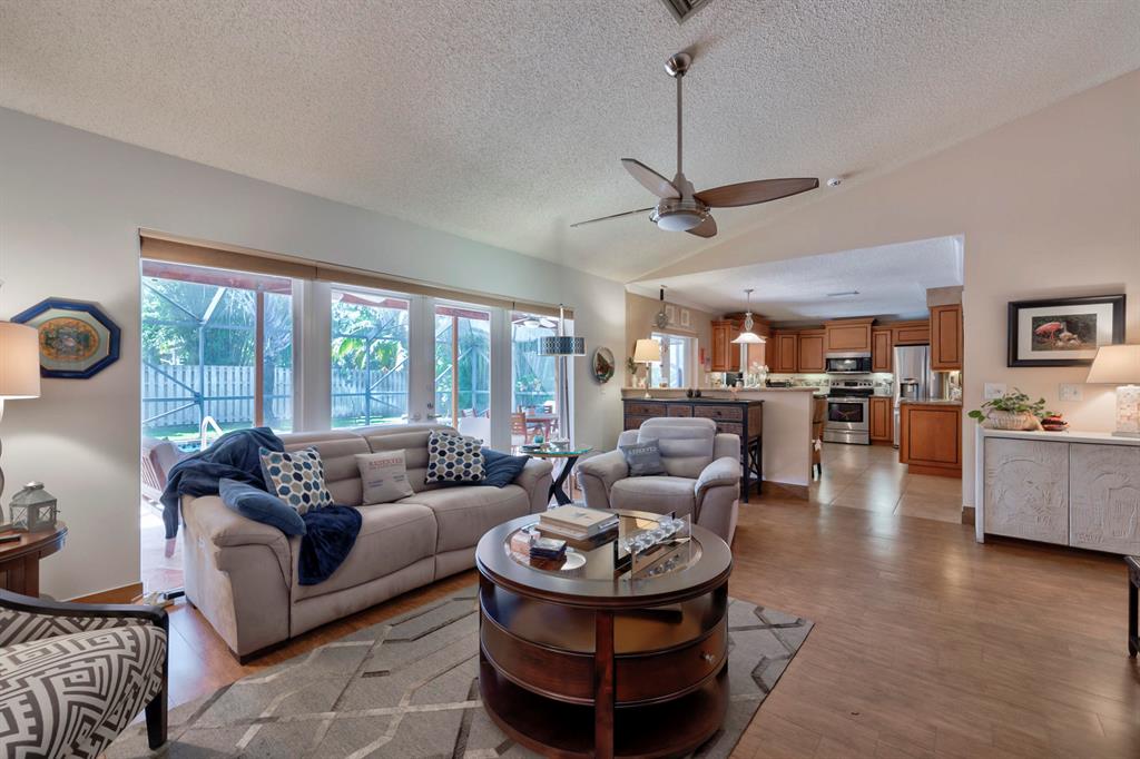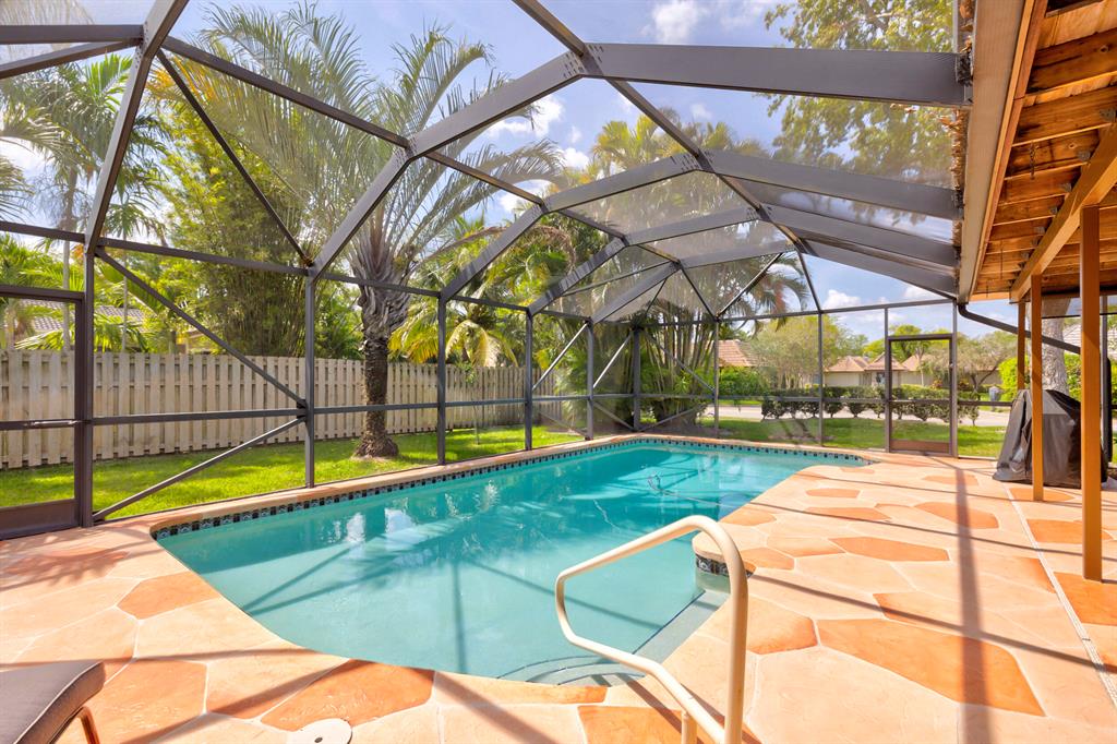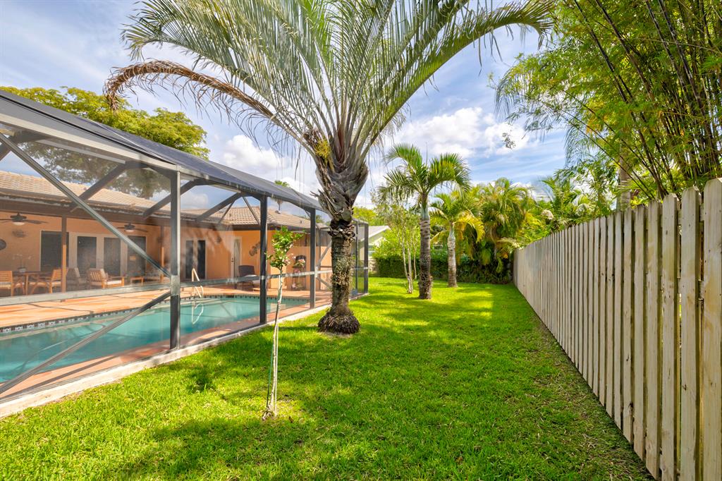 Lovingly maintained and tastefully updated 4 bedroom ranch home with pool on a corner lot. Impact windows, A/C 2019, newer appliances including brand new dishwasher. Top quality Thomasville cabinets in kitchen and second bathroom. Four large bedrooms, living room, family room, dining room and eat-in kitchen. Laundry room with cabinets and real sink. Extended screened-in lanai with room for outdoor shower. Beautiful mature neighborhood with NO HOA FEES, walking distance to Ramblewood Elementary School and dozens of shops and restaurants.