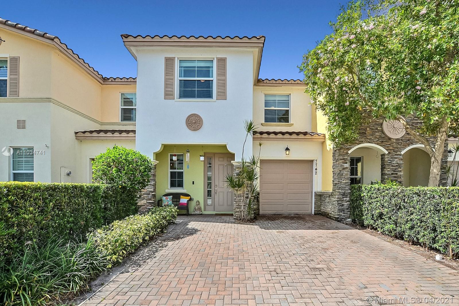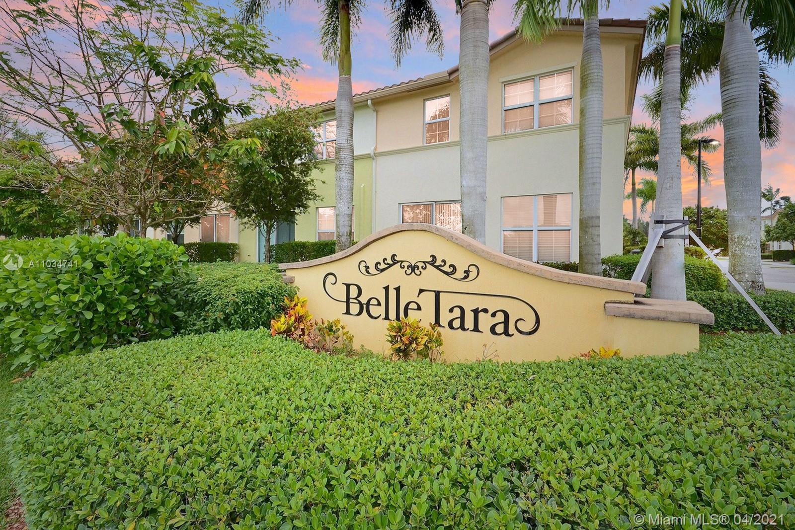 GORGEOUS 3 BEDROOM 2.5 BATHROOM TOWNHOME WITH AN ATTACHED GARAGE IN THE ABSOLUTELY CHARMING DAVIE COMMUNITY OF BELLE TARA. FROM THE STACKED STONE AND BRILLIANT PAINT ON THE EXTERIOR FACADE TO THE PAVER DRIVEWAY LINED BY MANICURED HEDGES, THIS LOVELY TOWNHOME RADIATES CURB APPEAL. BUYERS WILL LOVE THE HURRICANE IMPACT WINDOWS, SPACIOUS OPEN FLOOR PLAN WITH VAULTED CEILINGS AND NATURAL LIGHT THAT FILLS THE HOME. OPEN CONCEPT KITCHEN WITH GRANITE COUNTERS & ISLAND HAS SIGHT LINES TO SOCIAL AREAS & TO THE PATIO. SPACIOUS PRIMARY SUITE HAS A HUGE WALK-IN CLOSET. ENSUITE BATH OFFERS DOUBLE VANITIES, SEPARATE TUB & SHOWER. PRIVATE PATIO IS PERFECT FOR HOSTING A BBQ. COMMUNITY FEATURES A RESORT STYLE POOL AND GUEST PARKING. ENJOY A FABULOUS LOCATION MINUTES FROM THE 595 AND THE TURNPIKE.