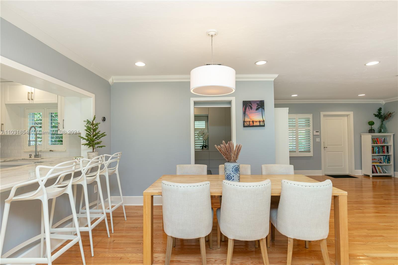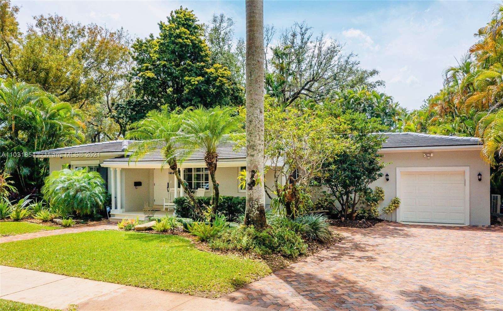 Drenched in natural sunlight, this impeccably renovated 1,671 sf 3 bedroom, 2 bath home in the North Gables is on an oversized, professionally landscaped, 10,500 sf, corner lot. Every detail has been addressed complete with elegant wood floors & Italian tiles. Also has hurricane impact windows, recessed lighting, new electrical wiring & panel, new PVC plumbing, tankless water heater, CCTV, w/gorgeous built in closets, plantation shutters & window treatments. Tastefully done doors, baseboards, and molding. As bonus the garage has newly installed door & is insulated with new flooring and air conditioned with Mitsubishi split AC. Given the double lot the home can be expanded to 4,300 sf with room for an ample pool. Property totally fenced in as well. Look no further if you are ready to buy!