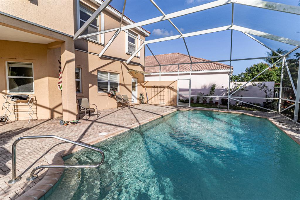 You just found your pool home with 5 bedrooms/4 bathrooms! Light tile floors on ground level. Carpet upstairs. Granite kitchen with white cabinets and stainless Fridge! Cabana bath and shower for your pool guests. Tray ceiling in master bedroom and new tile and shower in master bath. A/C is 5 yrs old. Fruit trees - Lychee, Mango, Soursop, Longan, and more. Roof is 18 yrs young. In the Catalina section so extra gate for security. Low HOA for you to enjoy all the amenities and entertain in your pool home!