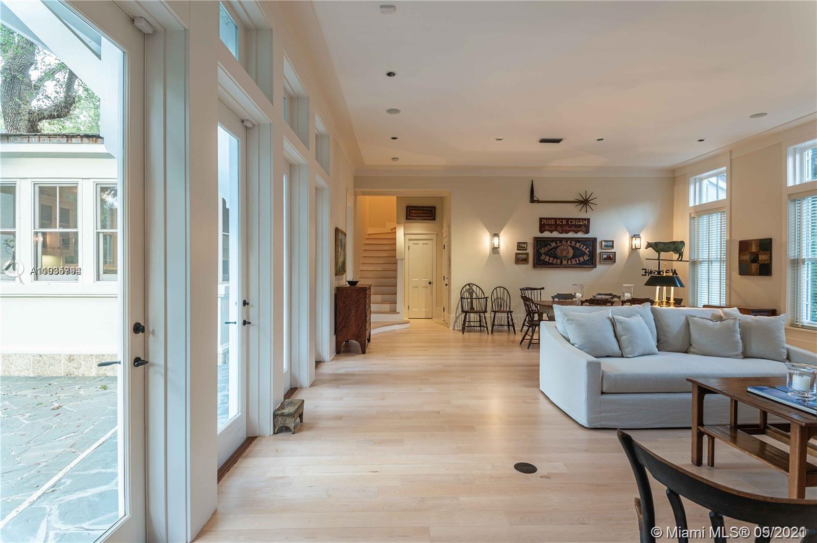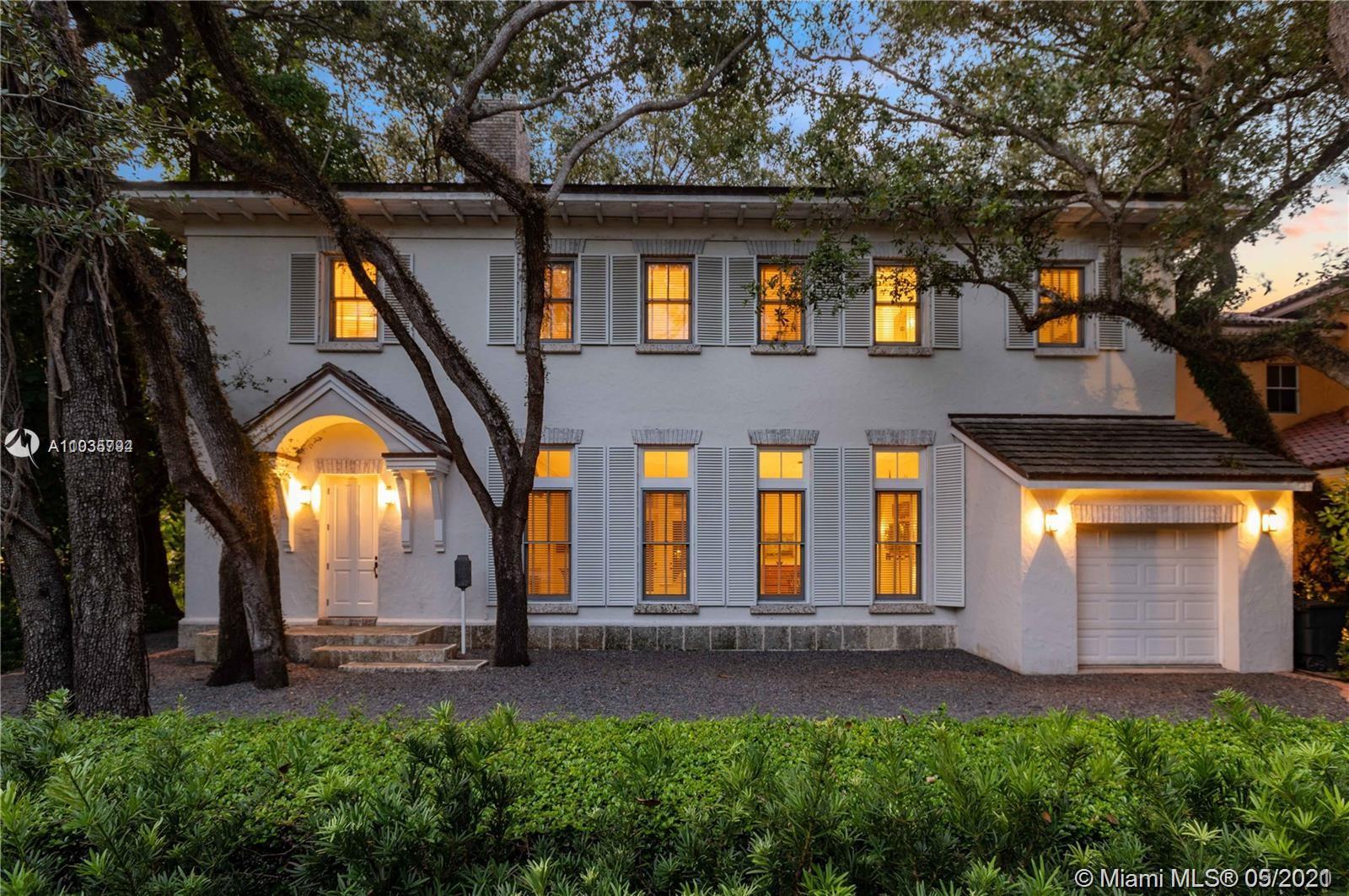 An architectural masterpiece adjacent to Coral Gables' "Pioneer Village". The open "Great" room invites you in w/ 13-foot ceilings in a bright cheerful space. A diagonal composition of the plan guides movement throughout the house. Interior details include two brick fireplaces, custom light-fixtures, mouldings, & maple-wood flooring throughout. Kitchen features cabinetry w/ hand-blown glass, soapstone counter-tops, & Viking/Sub-Zero appliances. 3-BR on the second level feature en-suite bathrooms w/ Waterworks fixtures & tilework. Downstairs room may serve as an office/study or guest room. The interiors communicate freely w/ the enchanting outdoor space. A series of french doors open out to a slate patio & turfed garden. Located steps away from the prestigious Riviera Country Club.