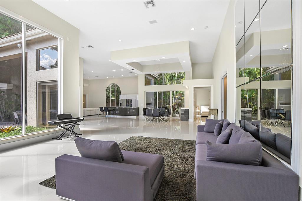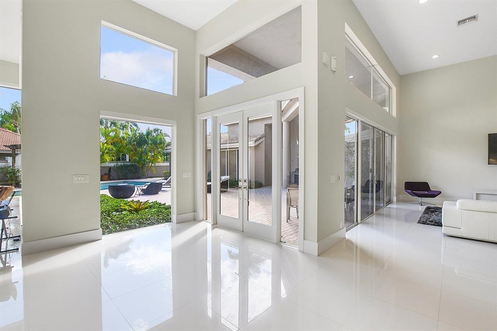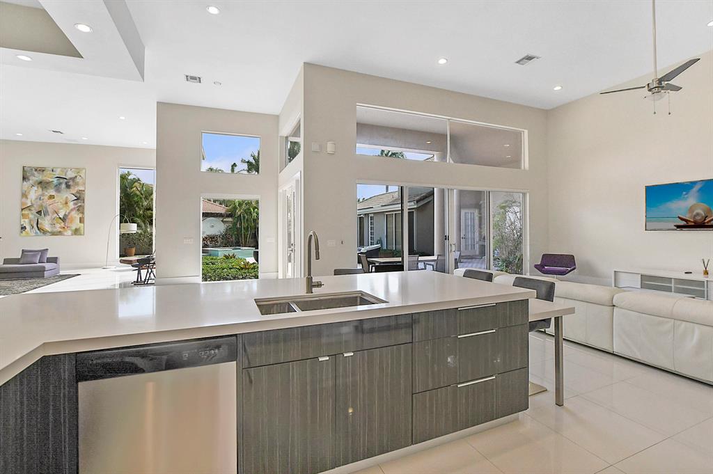 This 1 story fully renovated contemporary home is located in Grand Oaks. This estate sits on an oversized lot in the most sought after subdivision in the award winning country club at Broken Sound. Highlights of the home include volume ceilings, a bright open floor plan, neutral colors throughout, quartz countertops, stainless steel appliances and porcelain tile floors. The main house has 4 bedrooms, an office plus 4 full baths. There is a guest house with 2 bedrooms, 1 full bath and a kitchenette. The large courtyard with oversized pool & spa, makes this home feel like your own private resort. The tremendously sized backyard with grass is perfect for children and pets. Best of all there is room to add a tennis court! Do not miss out on this fabulous estate home!