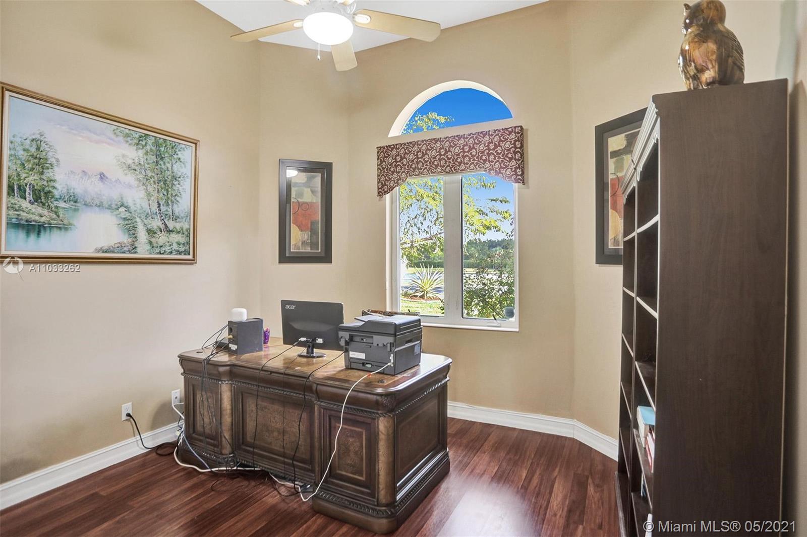 Luxurious estate home with all the upgrades one is looking for. Newly painted. Extended driveway, Impact glass windows, Pool, 5 bedrooms + Office, 4 bathrooms with a second kitchen! Back Patio, Garage & driveway are extended from the standard builder's design. House comes with brand new kitchen appliances, water heater, AC and new eloquent wood floors in the bedrooms. The house is in a gated community with very few homes and In and around Million$$ homes. The new construction across the street is over 1.3 million for 2000 SQFT less than this house and less than half an acre of this home! The whole house has reverse Osmosis Softwater filter system. The backyard has all the tropical fruits one is looking for with well water sprinkler system! Won't last long. So be the first one to see it.