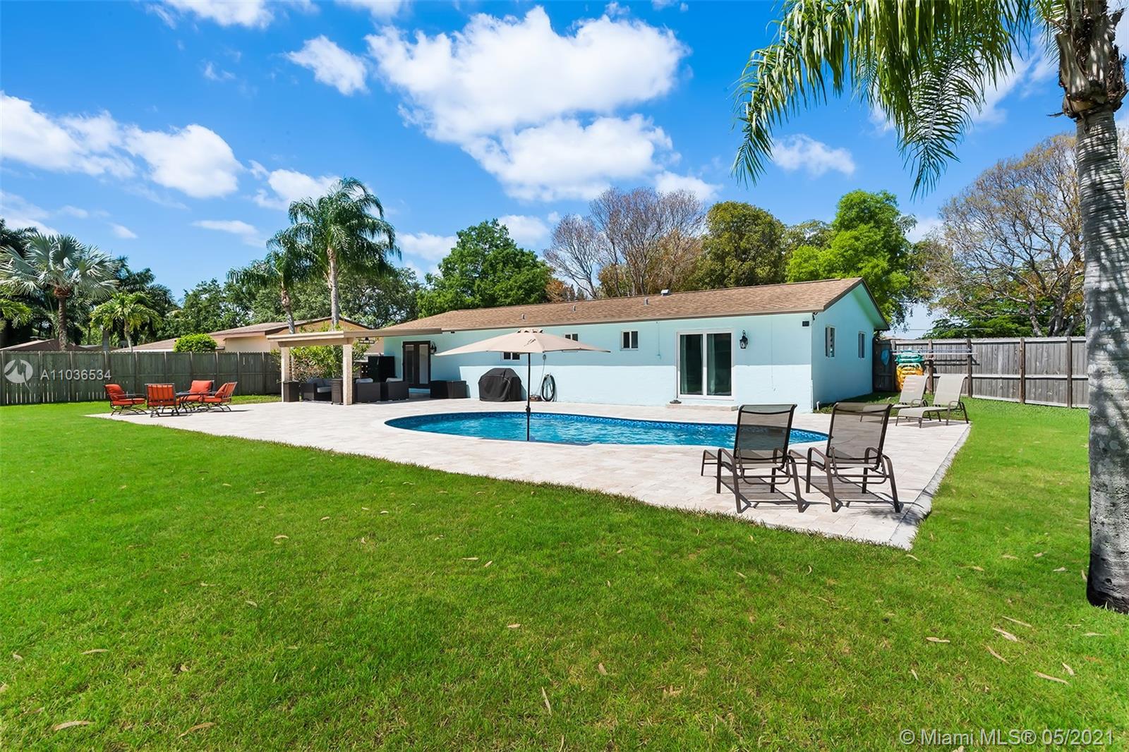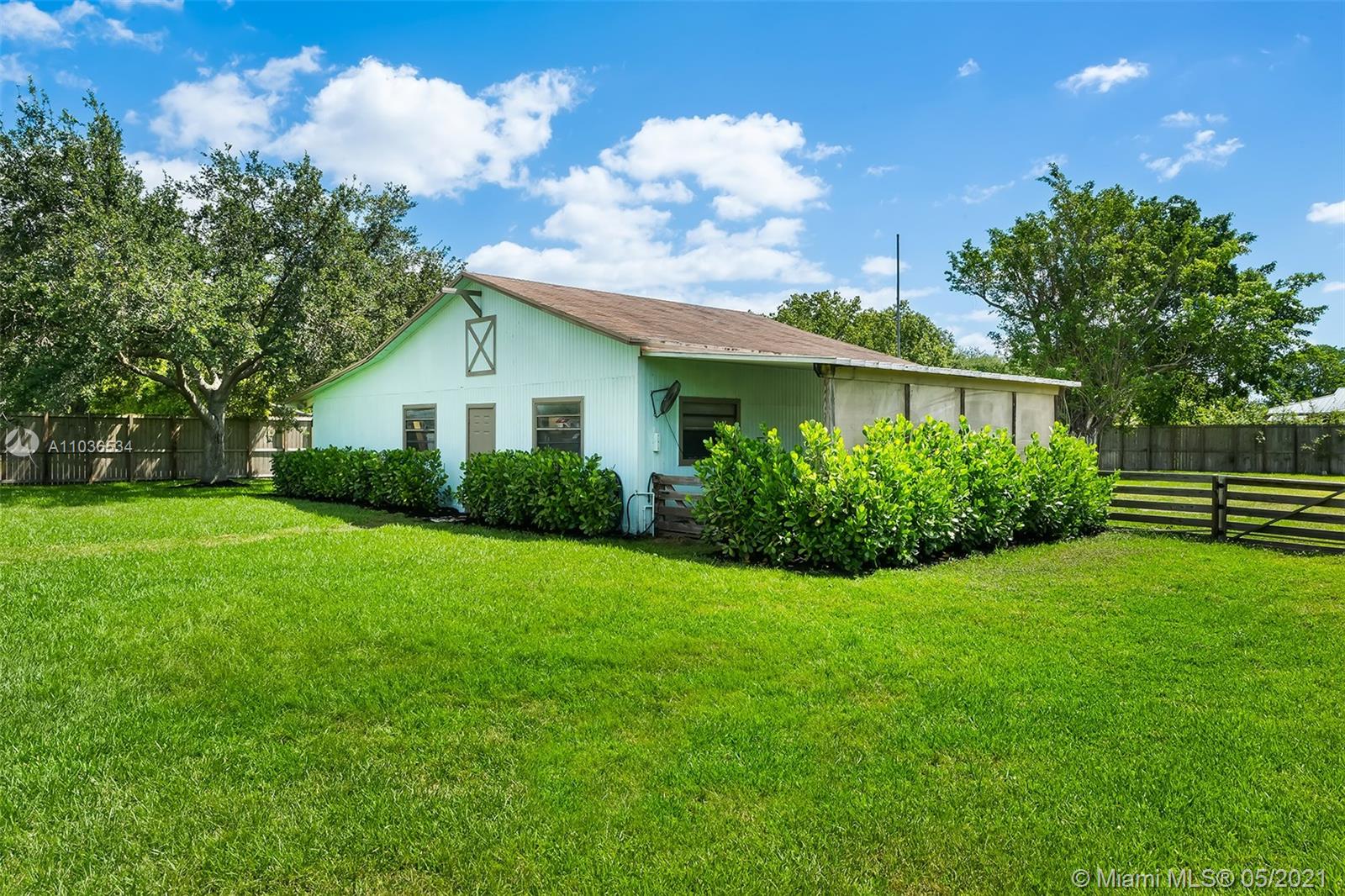 Welcome home to this spectacular country charmer in Southwest Ranches! This turn key home sits on over an acre corner lot and has been FULLY updated within the last 4 years, leaving no expense to spare. This 3 bedroom 2 bath + bonus room home offers an open layout, spacious updated kitchen with stainless steel appliances, granite countertops and 42" cabinets. Porcelain floors throughout, impact windows, newer roof and A/C, new tankless water heater, 50 amp generator hookup, new travertine driveway & patio with new heated salt water pool. Home offers a detached over 1000sqf barn with 240v power & water, with RV hookup. Deep well system with Dual jet pump. 8' panel fence surrounding the whole property No HOA!! Bring your horses, pigs or whatever your animal of choice is!!