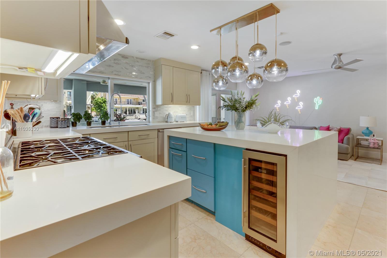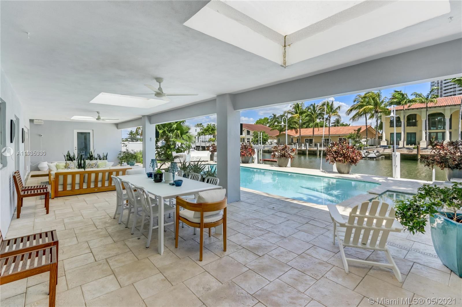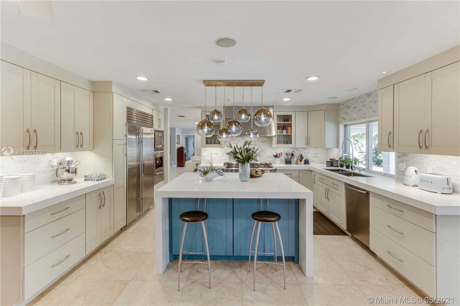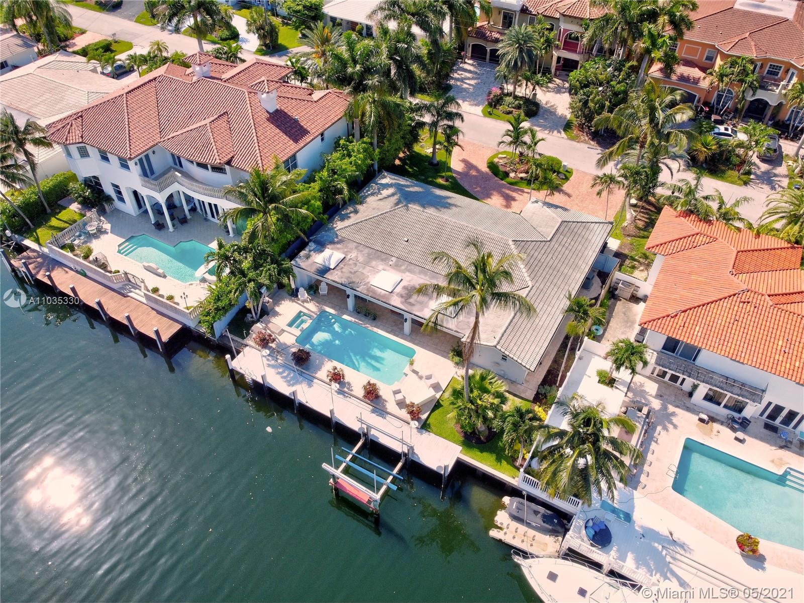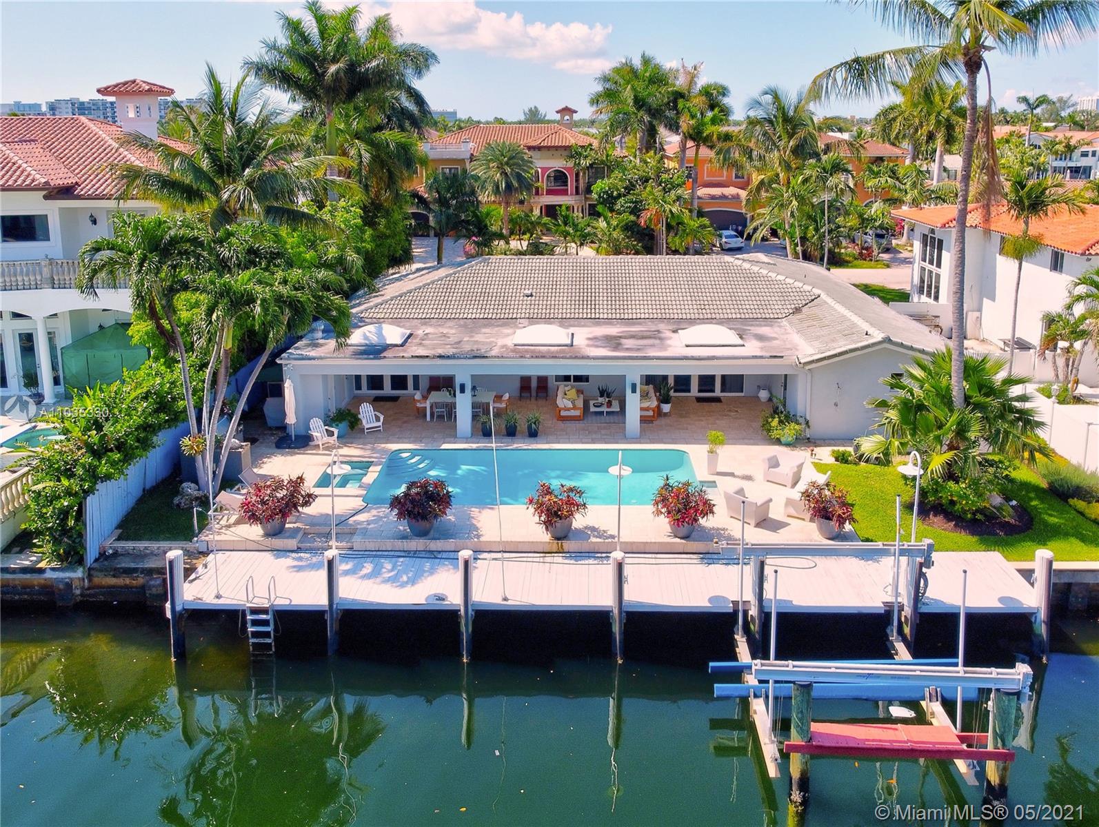 Beautiful waterfront pool home in guard-gated Eastern Shores. This fully renovated open floor plan is perfect for entertaining! Gourmet eat-in kitchen with top of the line appliances. Large living room / dining room open out to a huge covered patio, swimming pool, jacuzzi, outdoor kitchen and 85' along the canal. Main suite bathroom also opens out to patio. Porcelain tile and wood floors throughout. Close to Sunny Isles Beach, Aventura, Bal Harbor, Oleta Park, shopping and dining. Full house generator, impact windows, Rainbird sprinkler system, outdoor lighting. No fixed bridges to ocean access at Haulover Inlet! Adjusted square footage is 3,191.