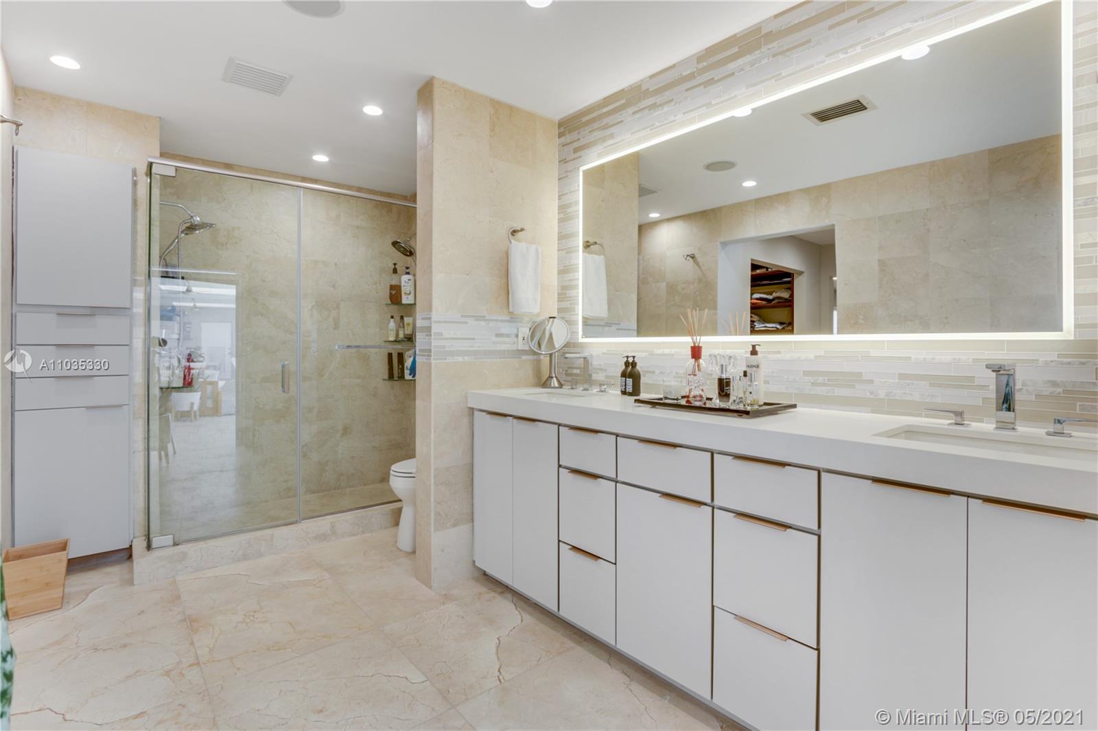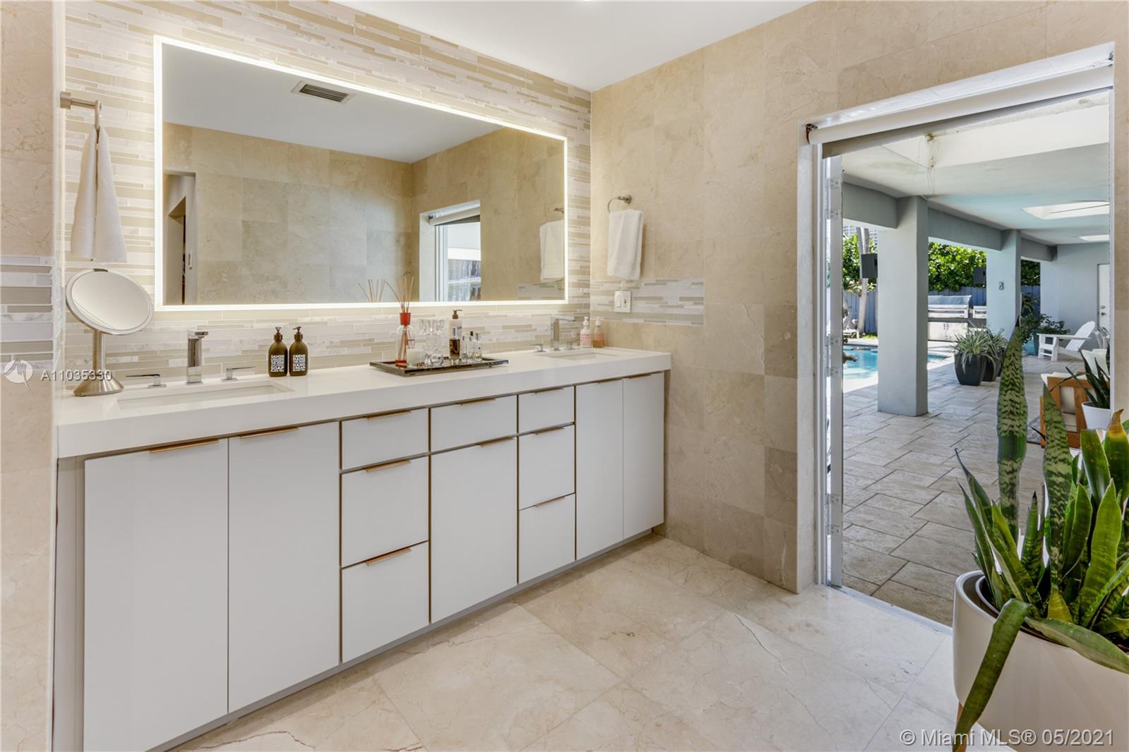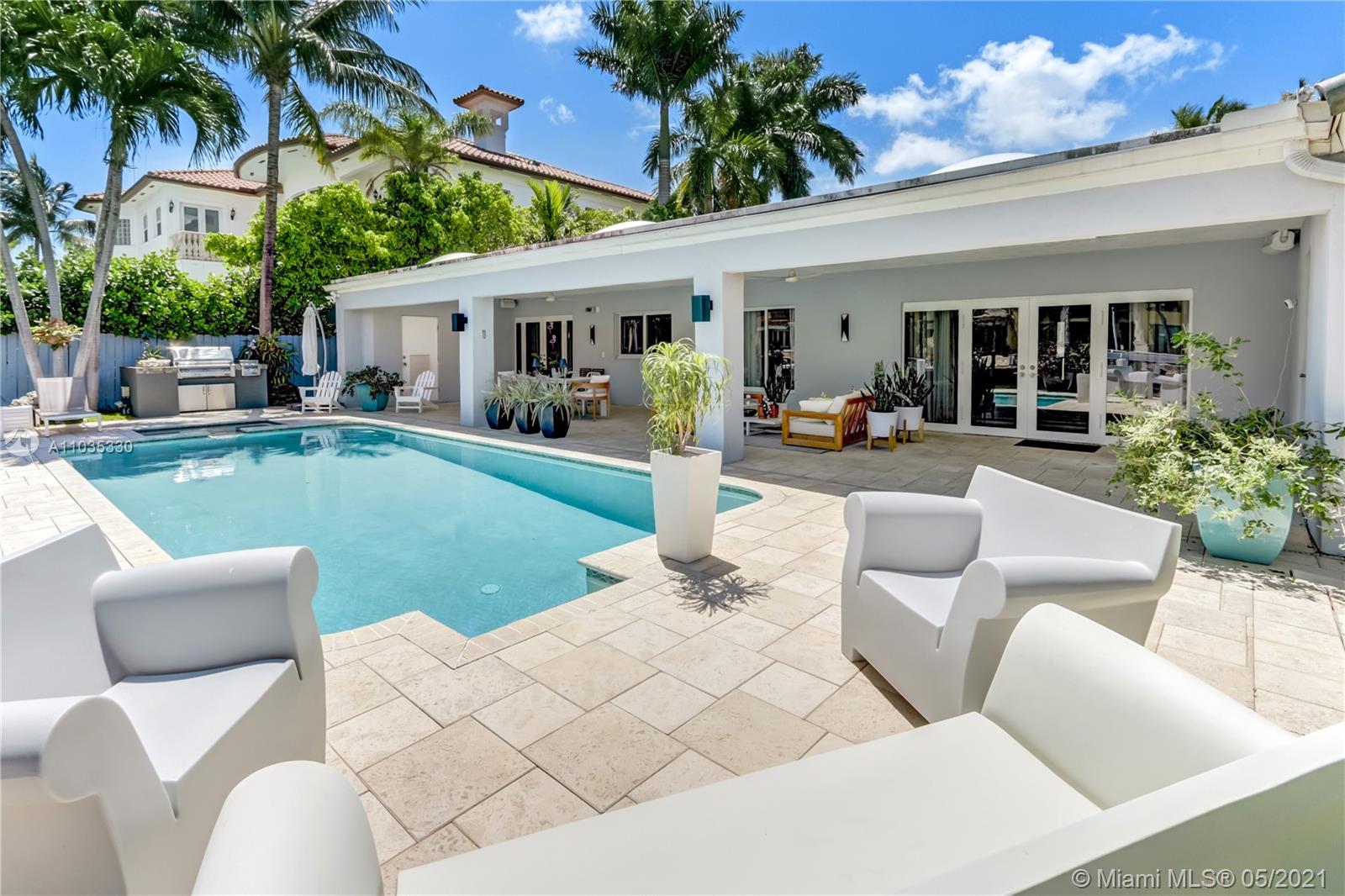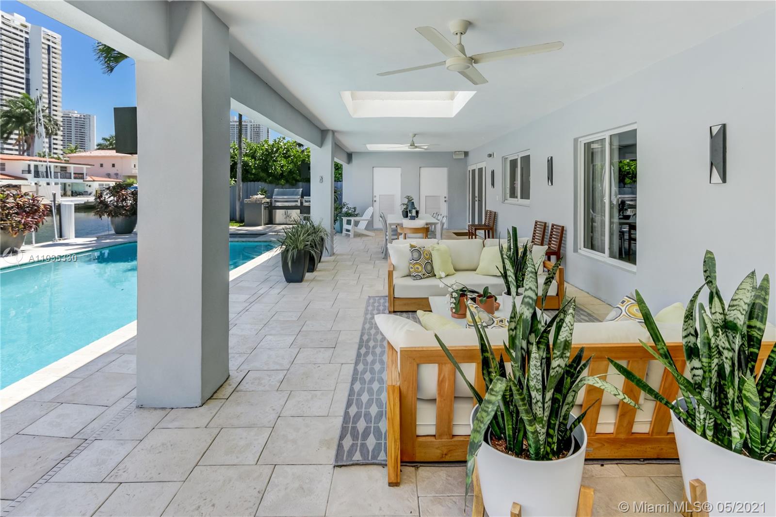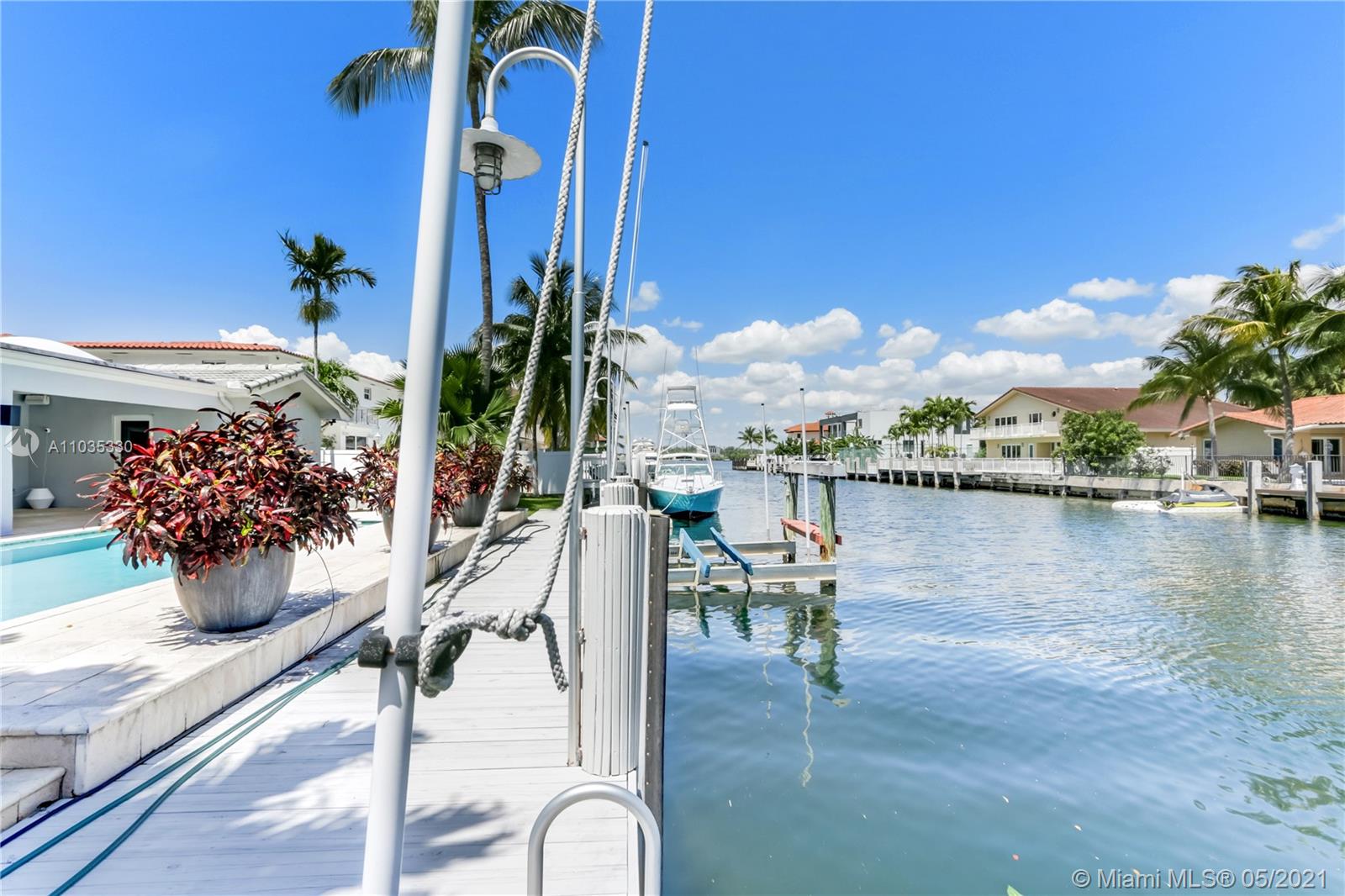 Beautiful waterfront pool home in guard-gated Eastern Shores. This fully renovated open floor plan is perfect for entertaining! Gourmet eat-in kitchen with top of the line appliances. Large living room / dining room open out to a huge covered patio, swimming pool, jacuzzi, outdoor kitchen and 85' along the canal. Main suite bathroom also opens out to patio. Porcelain tile and wood floors throughout. Close to Sunny Isles Beach, Aventura, Bal Harbor, Oleta Park, shopping and dining. Full house generator, impact windows, Rainbird sprinkler system, outdoor lighting. No fixed bridges to ocean access at Haulover Inlet! Adjusted square footage is 3,191.