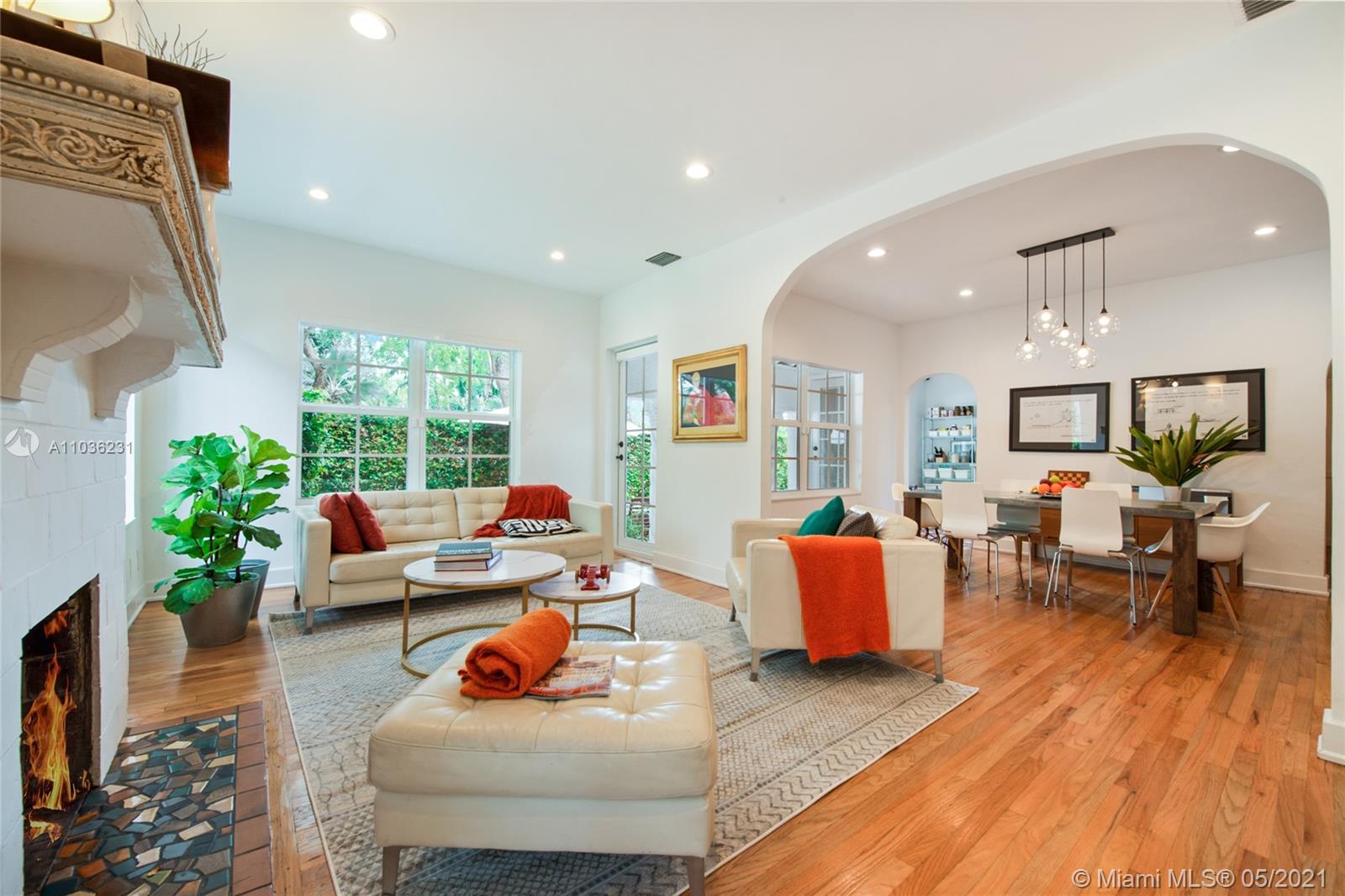 This storybook Old Spanish renovated home is located on a corner lot on a beautiful canopied Coral Gables Street. Home boasts charming outdoor spaces with a front porch overlooking the fenced in yard and a private outdoor terrace outside of the kitchen. Main house is a 3 bedroom 2 bath & the garage was converted to a 1/1 cottage with a bonus storage area. Open living spaces with wood & tile floors throughout, impact windows & doors, new 2021 roof, newer appliances & a wood burning fireplace! Located east of Granada & blocks from Downtown Coral Gables. Coral Gables Preparatory school district.