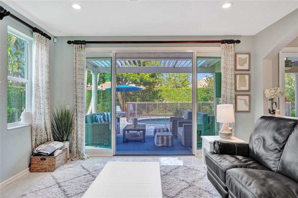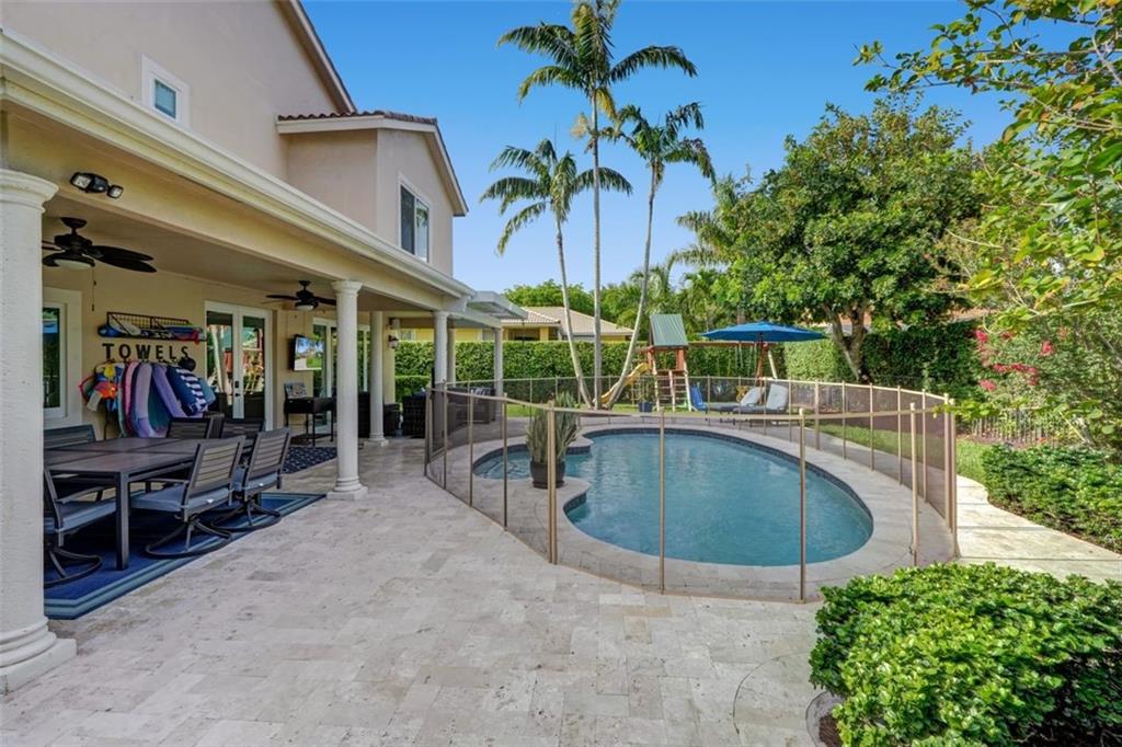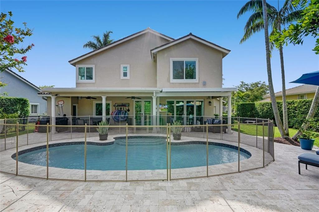 Stunning, move in ready home in the perfect family friendly- Eagle Trace! This tastefully updated, energy efficient home w no expense spared! A completely remodeled beautiful white kitchen unique quartz countertops,KitchenAid appliances.3 car garage w brand new doors/motors/new added storage! Immediate peace of mind w all new impact windows/doors & wired for standby generator. 2 sets of extra tall French doors lead you out to a quiet, private, hedge lined backyard oasis perfect for hosting/just enjoying with your family whether that’s in the pool or relaxing under the new motorized louvered roof for those beautiful afternoons and evenings! Move in without worry as this home just had a full inspection with every item resolved/upgraded only 15 short months ago. Roof has been replaced.