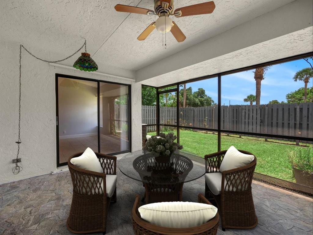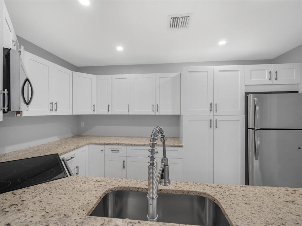 This impeccable 2 bedroom, 2 baths, 1 car garage villa has been TOTALLY renovated for the buyer searching for an immediate move-in ready townhome.A list of some of the new luxury amenities include but not limited to : * New roof currently being installed on 5/18/2021 * Polybutylene plumbing has been replaced with new pex piping * New kitchen counters * New kitchen cabinets * New & complete Stainless Steel appliances * Kitchen soffit has been removed and it now offers more volume and bright lights * New water heater * New knock-down textured ceiling * New closet doors & built-in shelves * New bathrooms displaying New counters, New vanities (double sinks in master bath) ** New tile in 2nd bath, New baseboards, New garage ceiling * New flooring coating in garage * New tile on patio *
