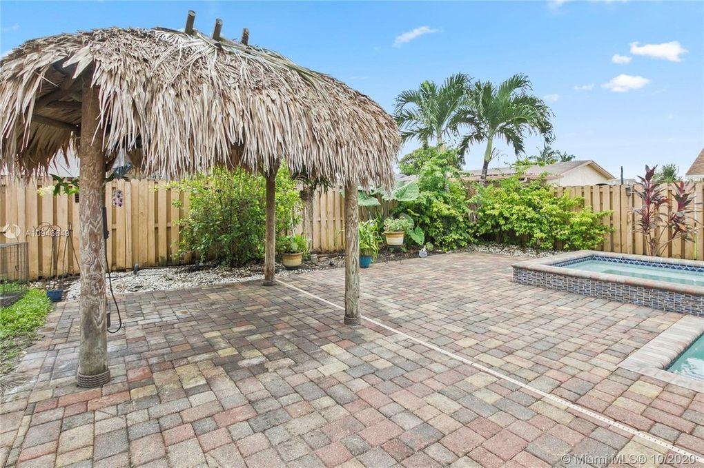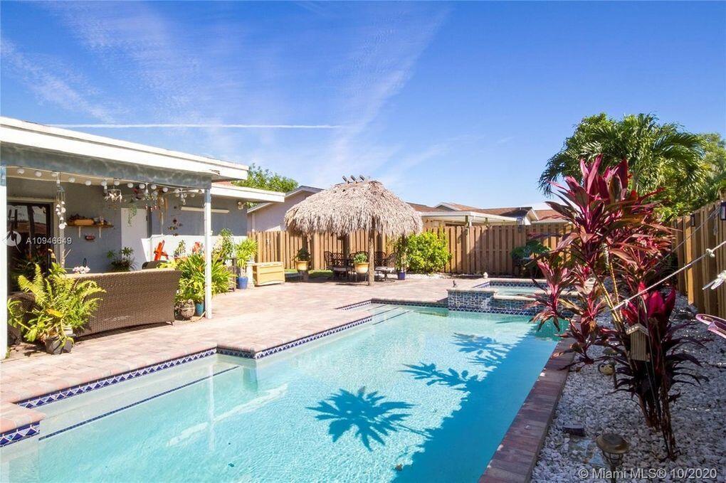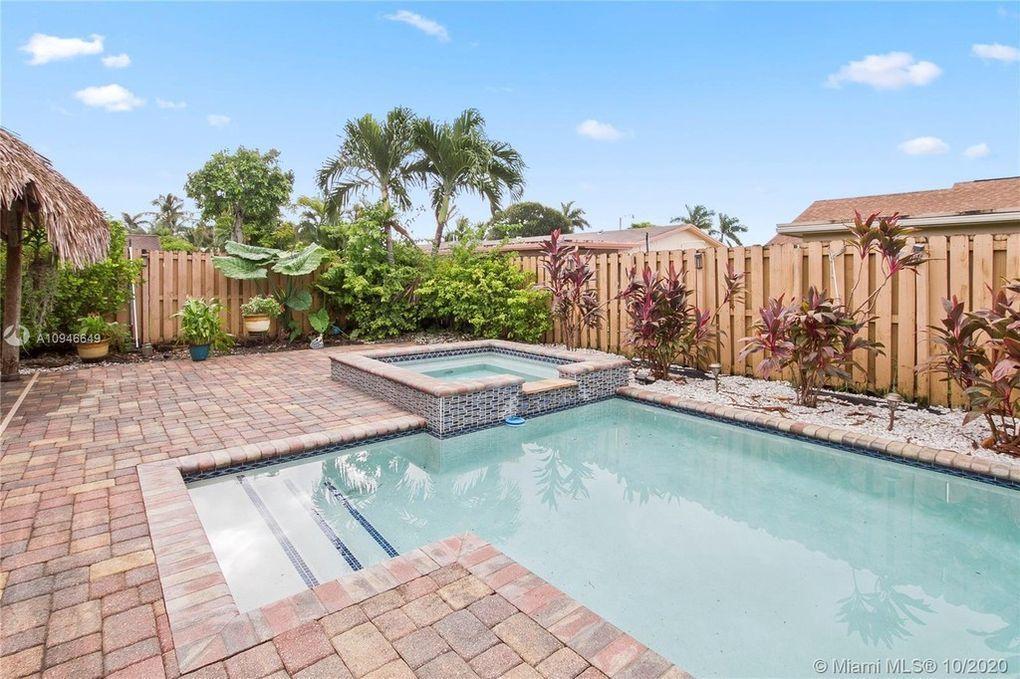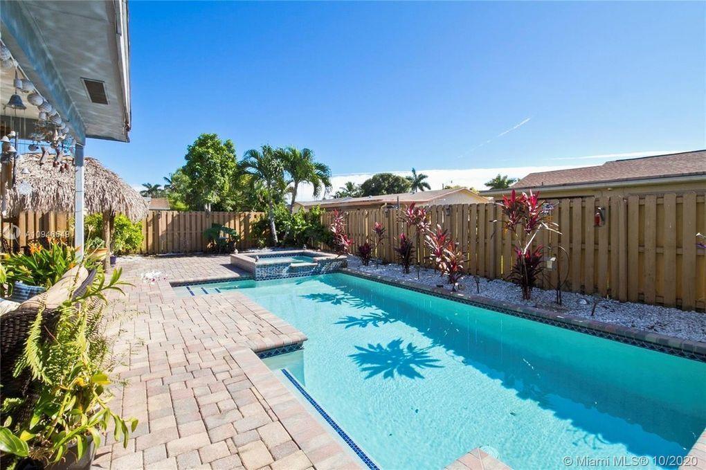 Find more to love in this stylish pool home featuring extraordinary outdoor spaces and located in the desirable Sunrise Golf Village. Expansive (7500 sq ft) lot with privacy fenced backyard featuring heated pool with waterfall and hot tub, paved basketball platform, stone terrace with grilling station and charming Tiki-style pergola. Updates and upgrades include Rheem HVAC, tankless hot water heater, and whole-house accordion shutters for added peace of mind. Gorgeous eat-in chef's kitchen features a gas stove, stainless steel appliances, and granite countertops. Owner's retreat features terrace access, plenty of closet space, and en suite bath with step-in shower. Garage conversion to flex living space (easy to return to garage space). Exceptional location near Sawgrass Expy and Mall.